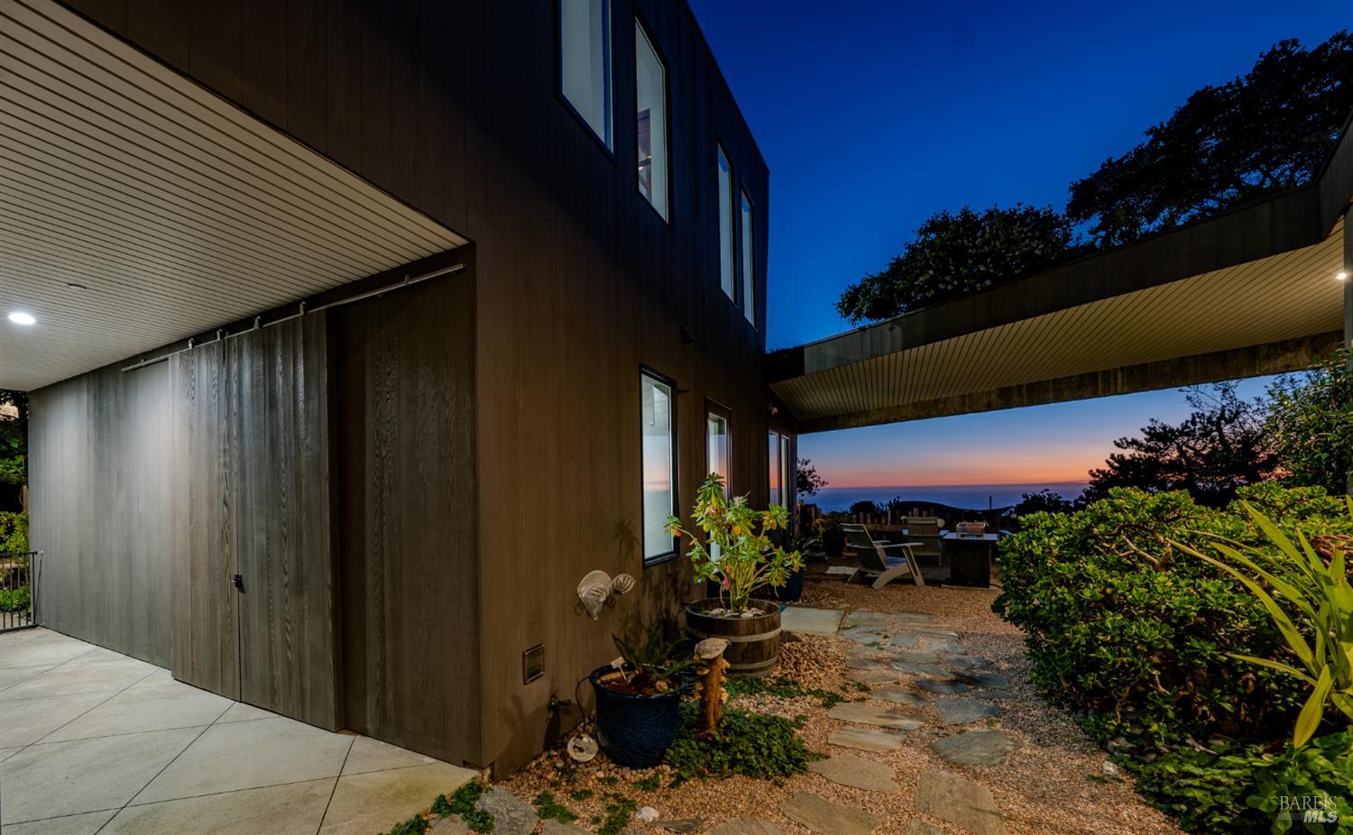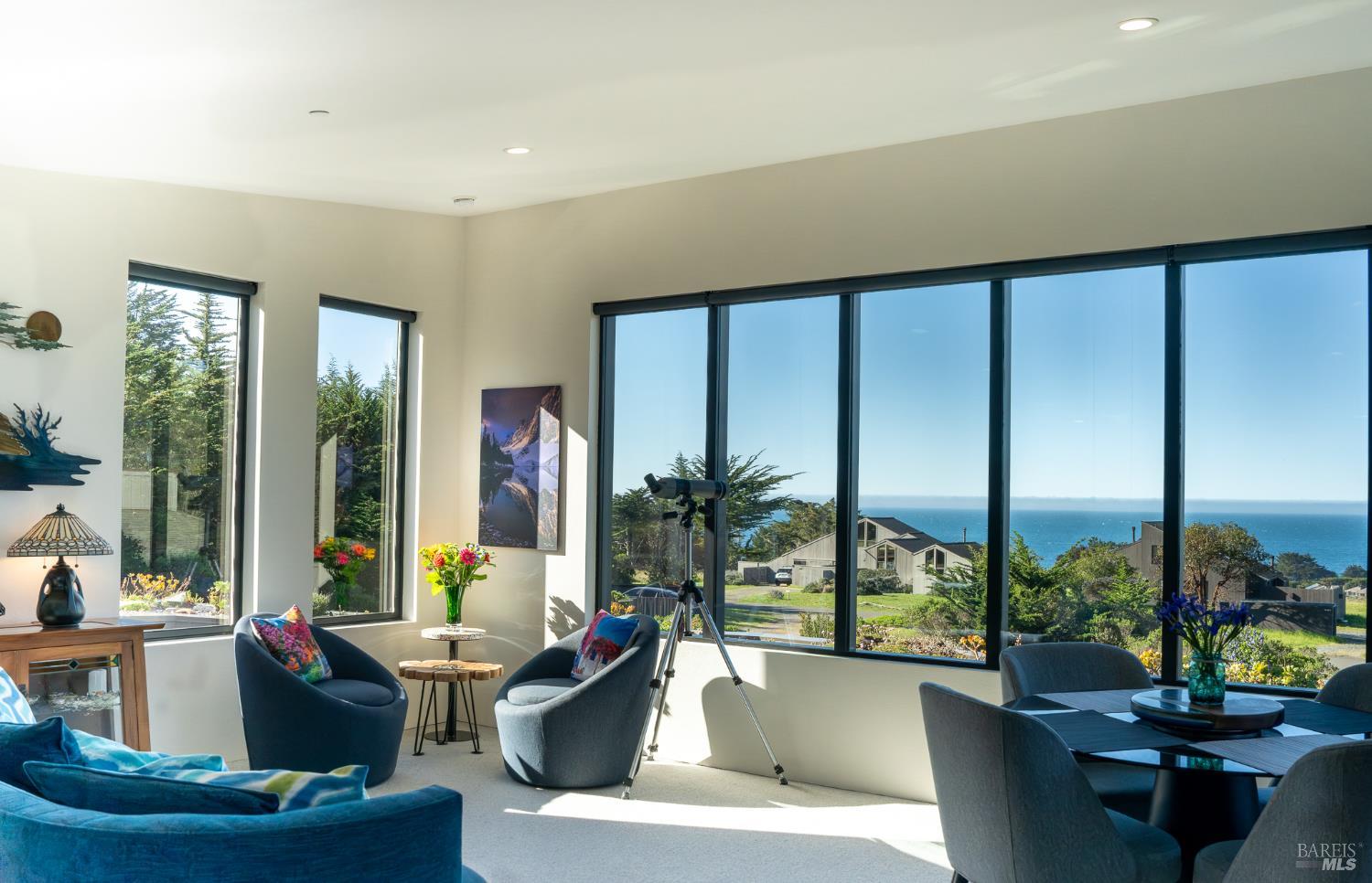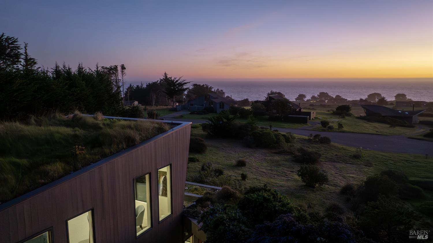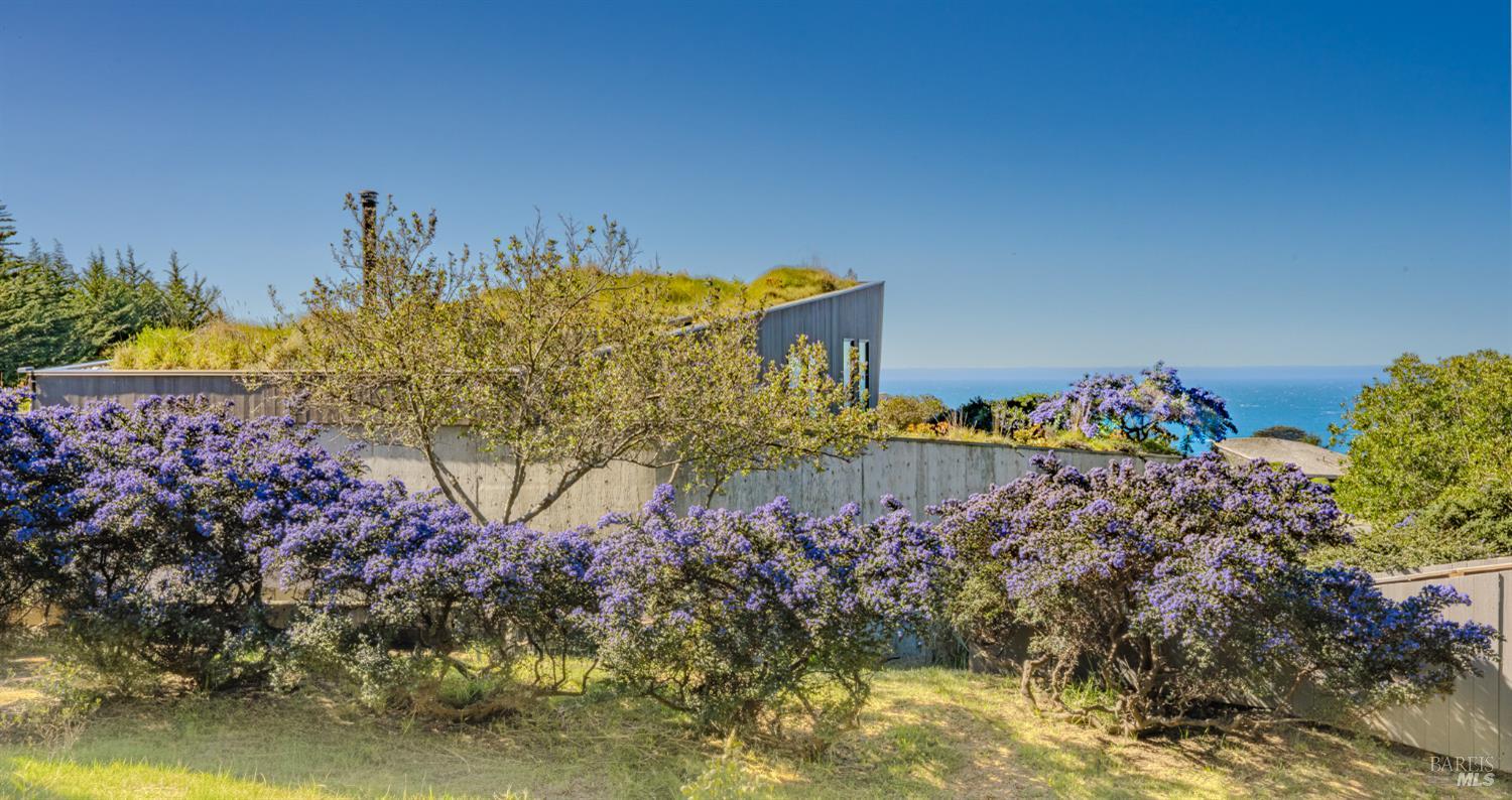 Modern green home with expansive ocean views on a meadow lot west of Hwy 1. Shaped by the natural beauty of the Sonoma Coast, this residence reflects the founding principles of The Sea Ranch where structure, landscape and horizon exist in balance. Cedar and concrete define the architectural composition while expansive windows frame the meadows, skyline, and the vast blue Pacific Ocean. A living roof and green wall blur the boundary between architecture and landscape, lifting the native flora onto the structure itself, grounding the residence within the surrounding coastal ecology. This exquisite home leans into efficiency with owned ground-level solar, high speed internet, and the warm embrace of clean radiant floor heating, Nest, built-in Bose speakers, induction cooktop, EV charging, and many comfort features that can be controlled through your smart devices. The result is modern luxury, site-specific architecture deeply connected to the land - a modernist expression of Sea Ranch living. Mornings begin with sunrise cresting over the cypress canopy, catching the golden tips of meadow grass and the fragrant blooms of California lilac against an endless blue horizon. As the coffee brews in the open concept kitchen, the indoor and outdoor space becomes seamless as you move out onto the large wrap-around upper veranda. The sights and sounds of The Sea Ranch fauna waking up provides endless delight. By evening, this veranda becomes a front row seat for some of the most striking sunsets on the Sonoma Coast. It's a setting where beauty and nature are constant companions. The property sits west of Hwy 1 providing easy access to the Bluff Trail and its beaches, the redwood forest trails on the coastal ridge above, and the Ohlson and Del Mar Recreation Centers - placing the full breadth of Sea Ranch living within easy reach. Miles of trails wind through meadows, forests and blufftop landscapes, connecting residents to beaches, dramatic overlooks, and sheltered coves. Recreation centers offer outdoor heated pools, tennis, pickleball and sauna, while nearby Gualala provides restaurants, markets and everyday conveniences along the coast. This home represents a rare opportunity to experience a truly remarkable work of coastal architecture, within the magic of The Sea Ranch community and its environs.