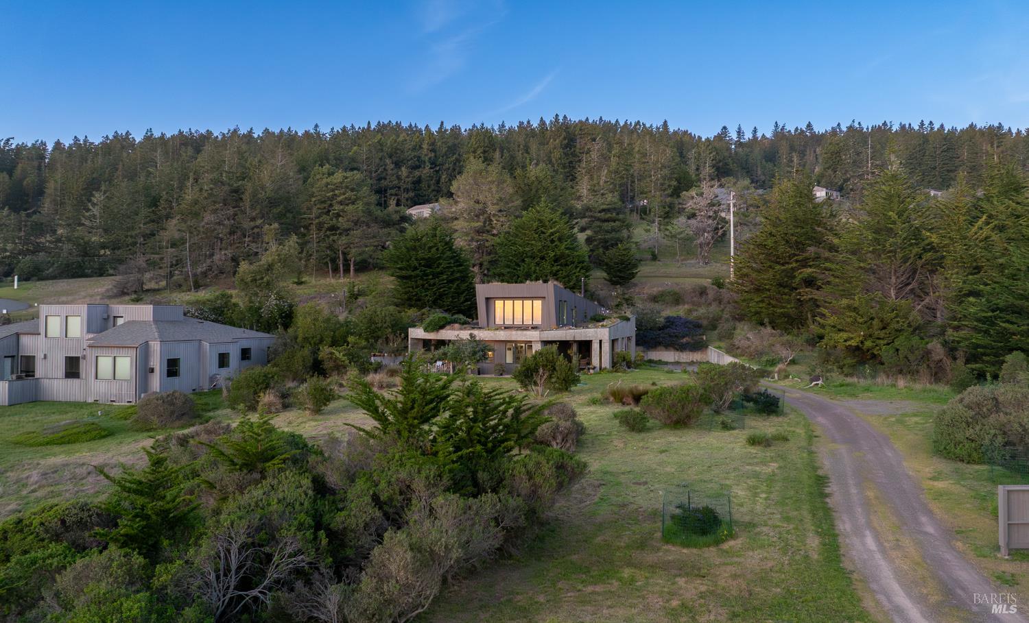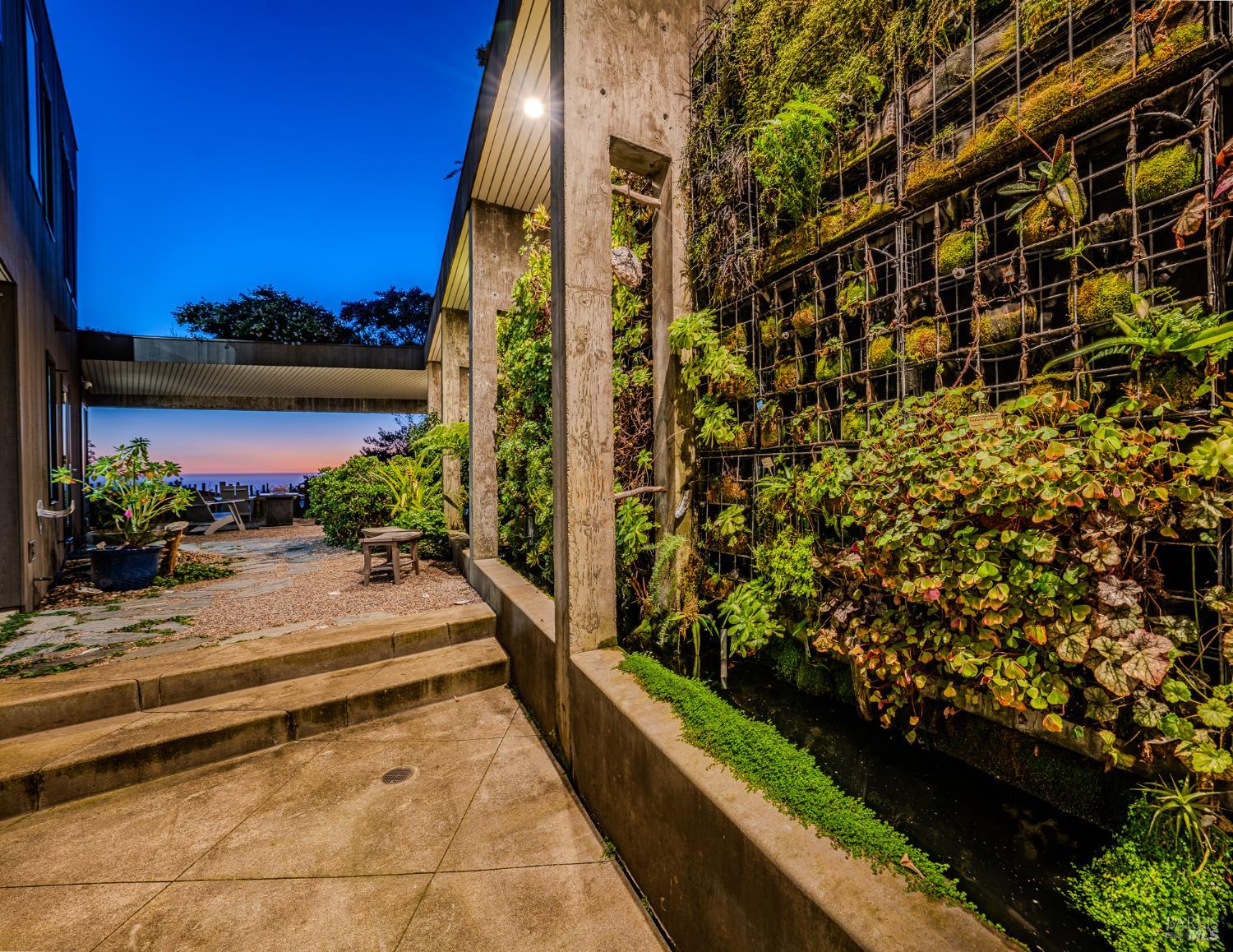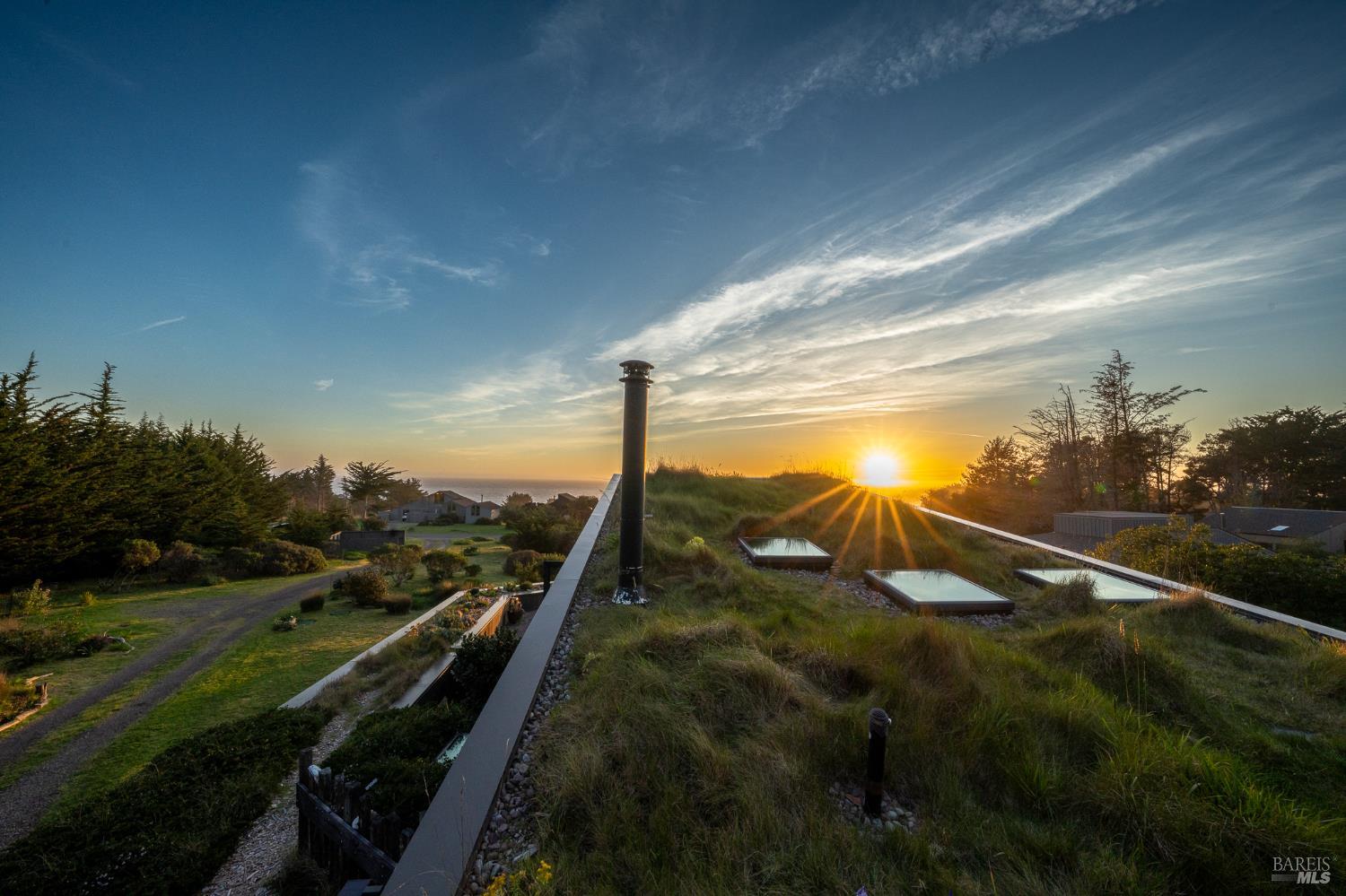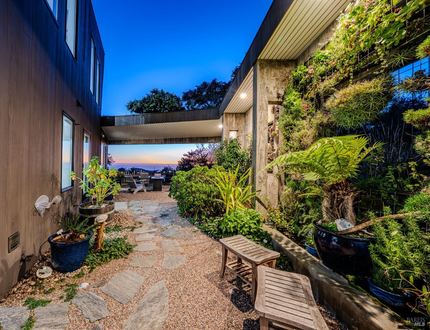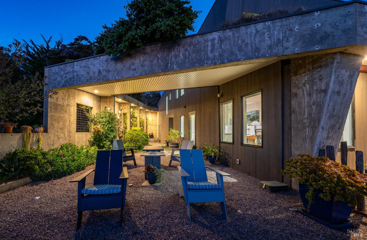 Modern green home with expansive ocean views on a meadow lot west of Hwy 1. Shaped by the natural beauty of the Sonoma Coast, this residence reflects the founding principles of The Sea Ranch where structure, landscape and horizon exist in balance. Cedar and concrete define the architectural composition while expansive windows frame the meadows, skyline, and the vast blue Pacific Ocean. A living roof and green wall blur the boundary between architecture and landscape, lifting the native flora onto the structure itself, grounding the residence within the surrounding coastal ecology. This exquisite home leans into efficiency with owned ground-level solar, high speed internet, and the warm embrace of clean radiant floor heating, Nest, built-in Bose speakers, induction cooktop, EV charging, and many comfort features that can be controlled through your smart devices. The result is modern luxury, site-specific architecture deeply connected to the land - a modernist expression of Sea Ranch living. Mornings begin with sunrise cresting over the cypress canopy, catching the golden tips of meadow grass and the fragrant blooms of California lilac against an endless blue horizon. As the coffee brews in the open concept kitchen, the indoor and outdoor space becomes seamless as you move out onto the large wrap-around upper veranda. The sights and sounds of The Sea Ranch fauna waking up provides endless delight. By evening, this veranda becomes a front row seat for some of the most striking sunsets on the Sonoma Coast. It's a setting where beauty and nature are constant companions. The property sits west of Hwy 1 providing easy access to the Bluff Trail and its beaches, the redwood forest trails on the coastal ridge above, and the Ohlson and Del Mar Recreation Centers - placing the full breadth of Sea Ranch living within easy reach. Miles of trails wind through meadows, forests and blufftop landscapes, connecting residents to beaches, dramatic overlooks, and sheltered coves. Recreation centers offer outdoor heated pools, tennis, pickleball and sauna, while nearby Gualala provides restaurants, markets and everyday conveniences along the coast. This home represents a rare opportunity to experience a truly remarkable work of coastal architecture, within the magic of The Sea Ranch community and its environs.