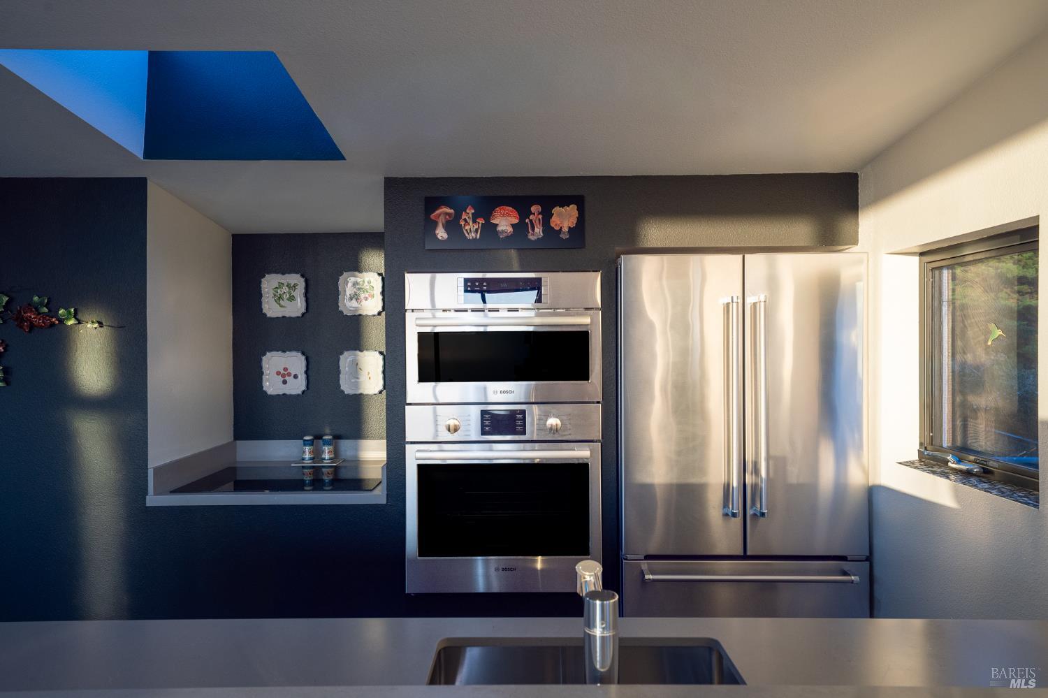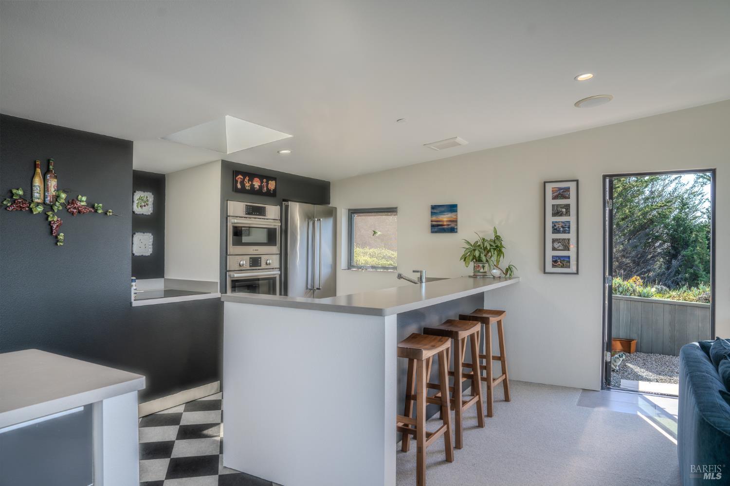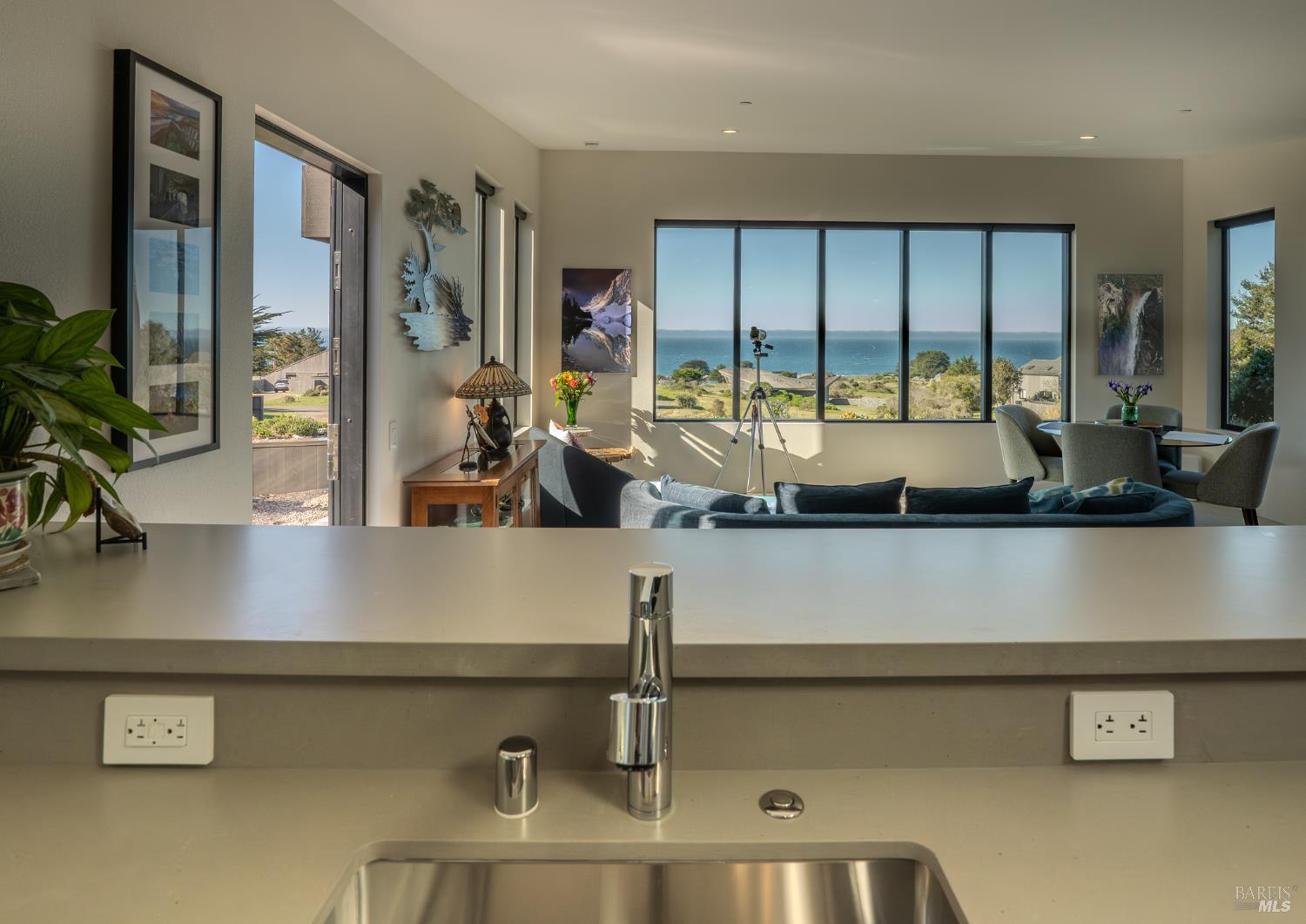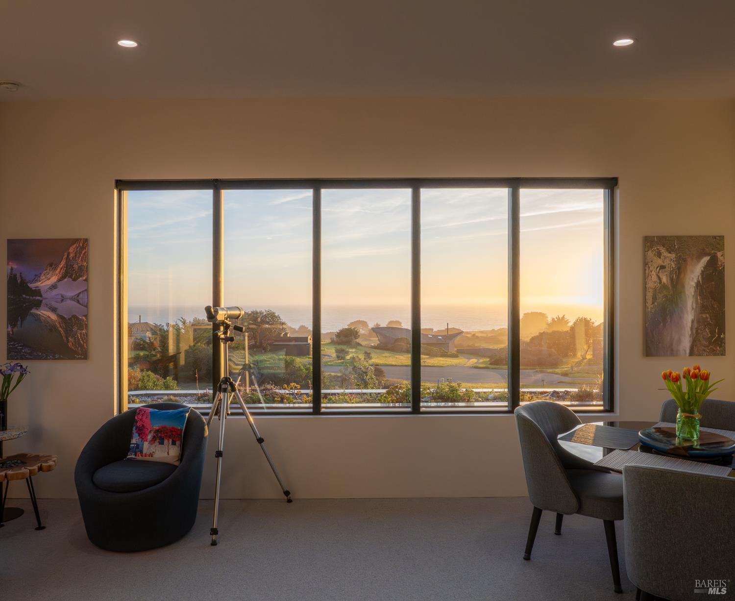 Modern green home with expansive ocean views on a meadow lot west of Hwy 1. Shaped by the natural beauty of the Sonoma Coast, this residence reflects the founding principles of The Sea Ranch where structure, landscape and horizon exist in balance. Cedar and concrete define the architectural composition while expansive windows frame the meadows, skyline, and the vast blue Pacific Ocean. A living roof and green wall blur the boundary between architecture and landscape, lifting the native flora onto the structure itself, grounding the residence within the surrounding coastal ecology. This exquisite home leans into efficiency with owned ground-level solar, high speed internet, and the warm embrace of clean radiant floor heating, Nest, built-in Bose speakers, induction cooktop, EV charging, and many comfort features that can be controlled through your smart devices. The result is modern luxury, site-specific architecture deeply connected to the land - a modernist expression of Sea Ranch living. Mornings begin with sunrise cresting over the cypress canopy, catching the golden tips of meadow grass and the fragrant blooms of California lilac against an endless blue horizon. As the coffee brews in the open concept kitchen, the indoor and outdoor space becomes seamless as you move out onto the large wrap-around upper veranda. The sights and sounds of The Sea Ranch fauna waking up provides endless delight. By evening, this veranda becomes a front row seat for some of the most striking sunsets on the Sonoma Coast. It's a setting where beauty and nature are constant companions. The property sits west of Hwy 1 providing easy access to the Bluff Trail and its beaches, the redwood forest trails on the coastal ridge above, and the Ohlson and Del Mar Recreation Centers - placing the full breadth of Sea Ranch living within easy reach. Miles of trails wind through meadows, forests and blufftop landscapes, connecting residents to beaches, dramatic overlooks, and sheltered coves. Recreation centers offer outdoor heated pools, tennis, pickleball and sauna, while nearby Gualala provides restaurants, markets and everyday conveniences along the coast. This home represents a rare opportunity to experience a truly remarkable work of coastal architecture, within the magic of The Sea Ranch community and its environs.