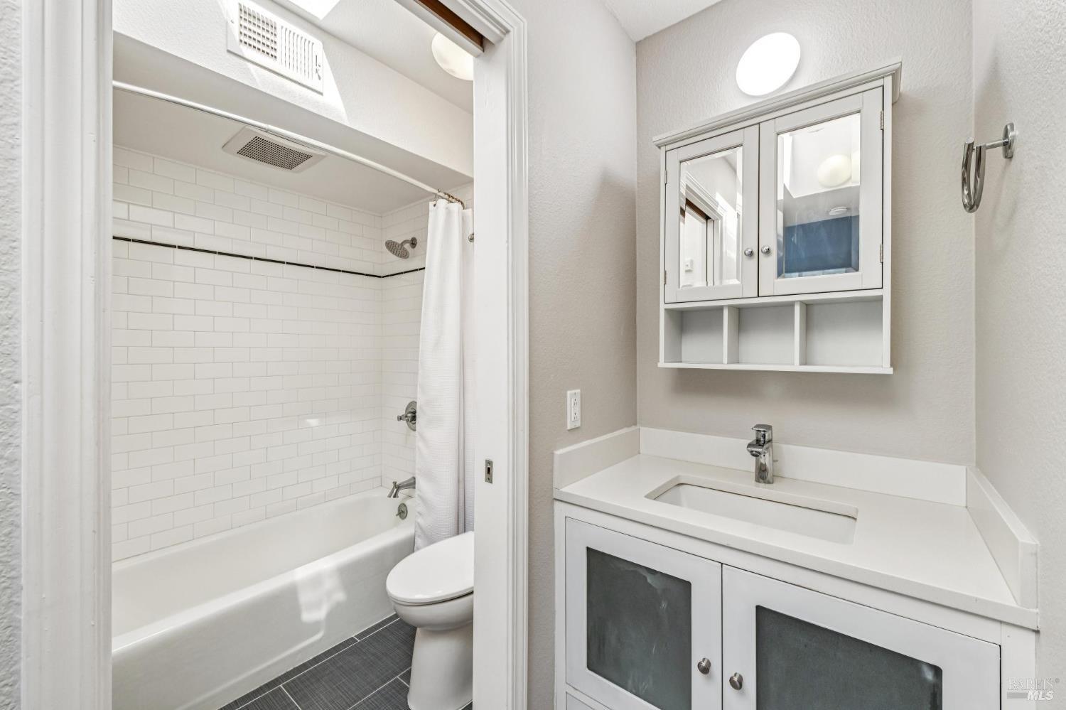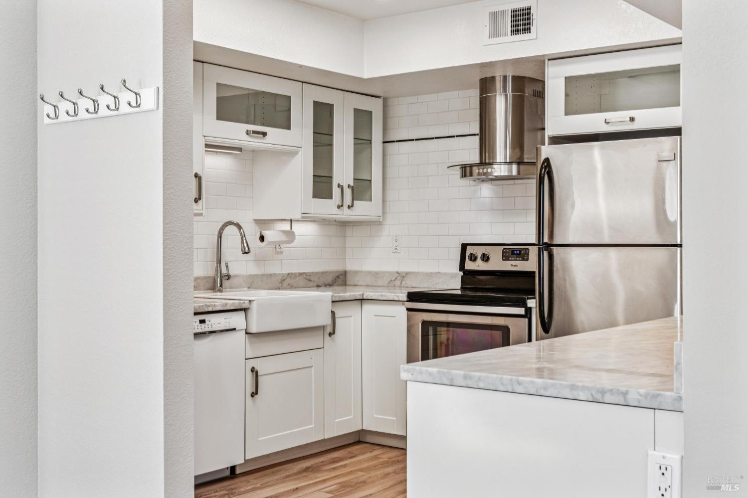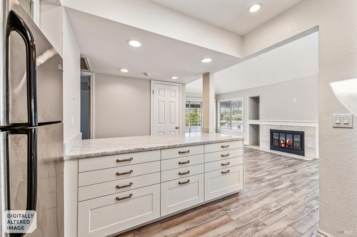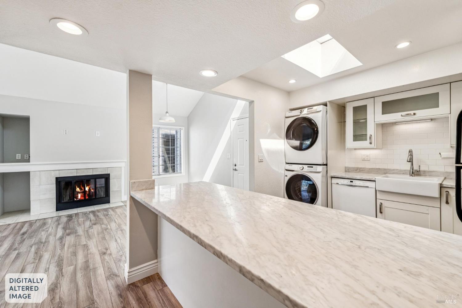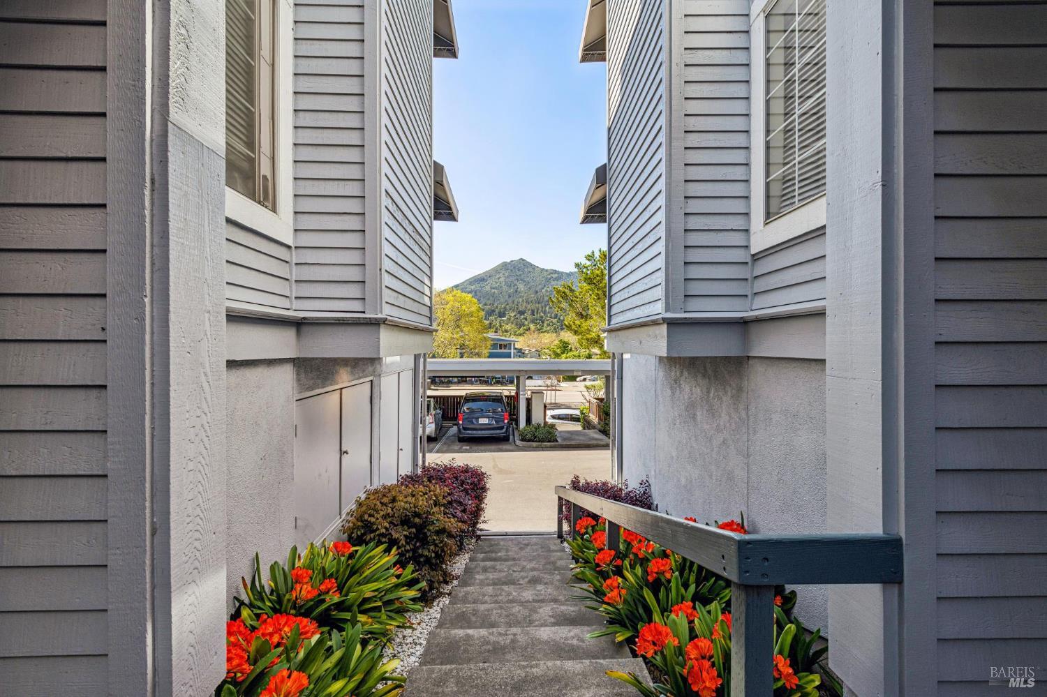 A rare offering in one of Kentfield's most desirable locations, this exceptional upper corner end-unit blends comfort, style, and everyday convenience. Bathed in natural light, this beautifully updated 2-bedroom, 2-bath residence offers an airy, easy-living floor plan designed for both relaxation and entertaining. The remodeled open kitchen is a true focal point, featuring stainless steel appliances, marble countertops, modern finishes, and a convenient bar counter that is perfect for casual meals or entertaining. The spacious living room showcases vaulted ceilings, a cozy fireplace, and direct access to a private deck where you can enjoy indoor outdoor living along with serene views of Mt. Tam. Both bedrooms are generously sized, including a comfortable primary suite, and the in-unit full size washer and dryer add everyday convenience. Additional features include dedicated storage in the one car garage and guest parking for visitors. Ideally located near the College of Marin, award-winning Kentfield schools, Village at Corte Madera, Town Center, and a variety of local shops and restaurants. This home offers an exceptional combination of location, comfort, and lifestyle. Welcome to 4 Ash Avenue #11!