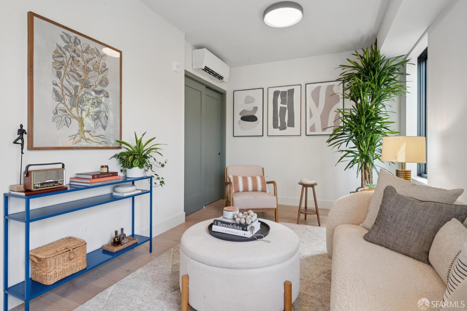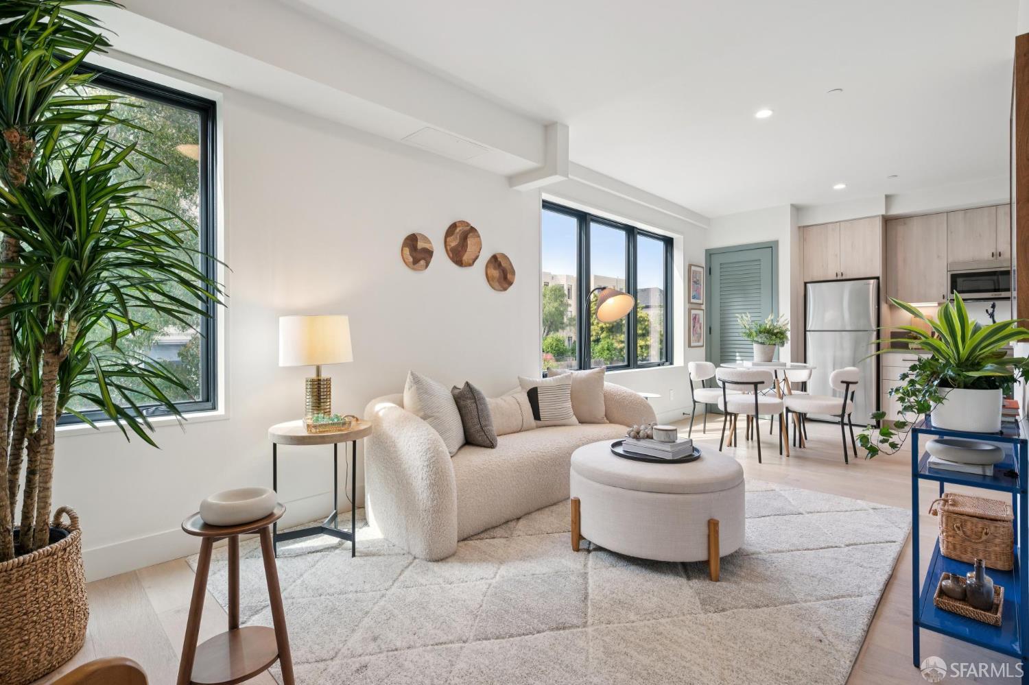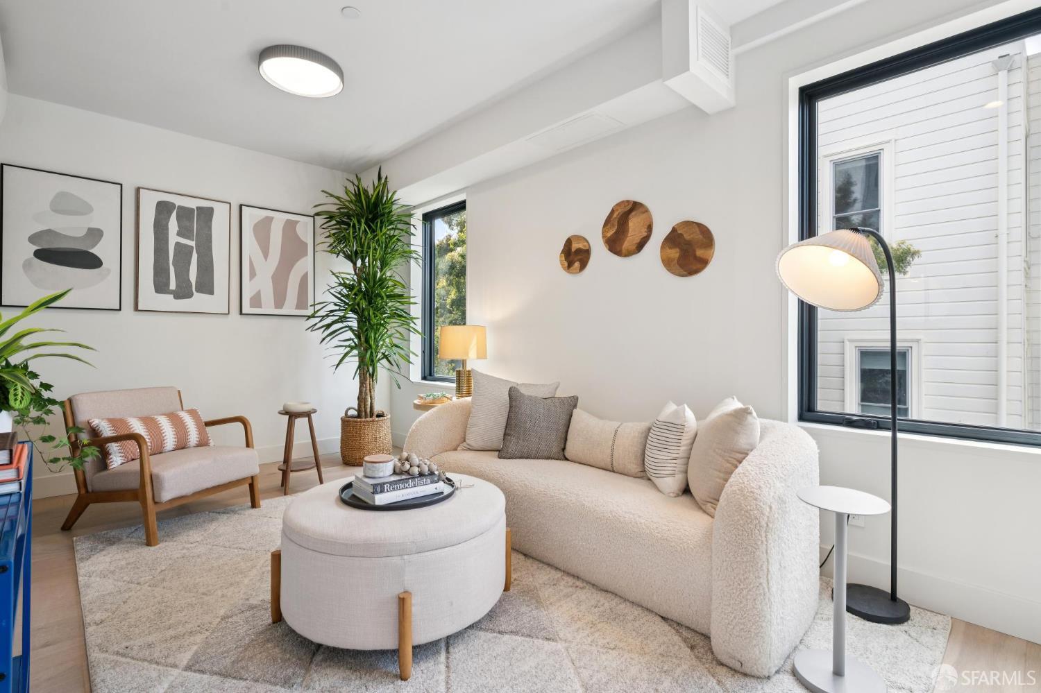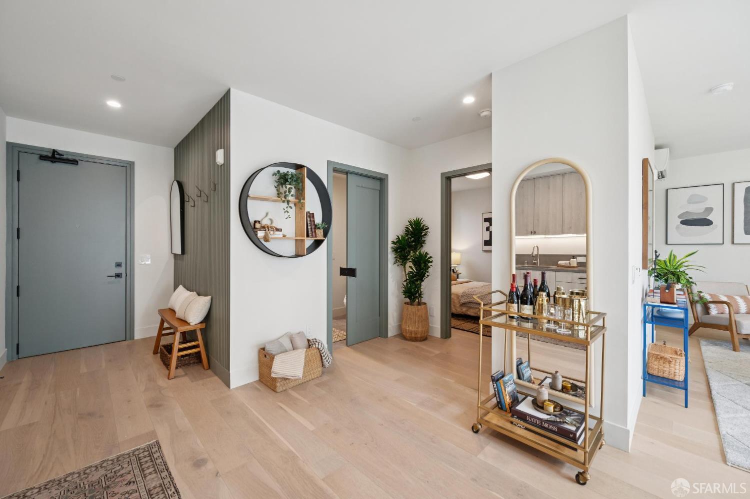 Nestled in the vibrant heart of the Mission & Valencia Corridor, this newly constructed boutique building is a finely tuned balance of function and form, with breathtaking views in every direction. Unit 303 is a custom-finished interior with under-mount lighting, sleek stainless-steel appliances and exquisite quartz countertops with posh backsplash accents. Refined bathrooms offer custom vanities with under-mount sinks, tub and shower combinations with tile surrounds, and built-in shelving. The living room and dining areas feature large windows to maximize the natural light and the serene view to the rear garden. The bedroom vestibule has an additional closet for storage. These residences are conveniently located near the hottest Valencia Corridor shops and restaurants, and close to BART & public transportation. Features include hardwood floors, in-unit laundry, Samsung/Bosch appliance package, heating & air-conditioning and soundproofing between units & common walls. Building offers garage parking (additional expense), bike storage, shared rear garden & elevator access to all levels including a spectacular shared roof deck with 360 degree views.