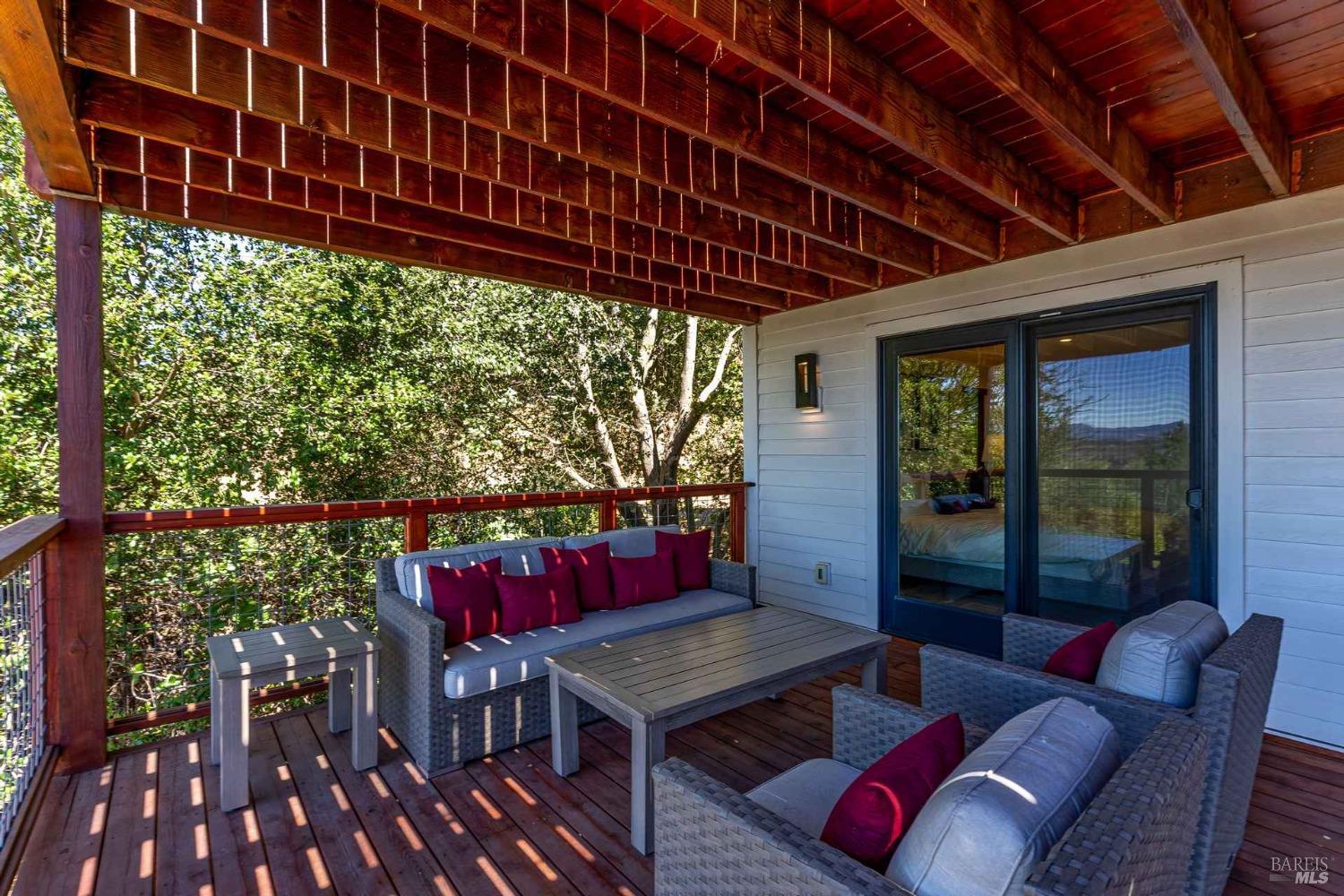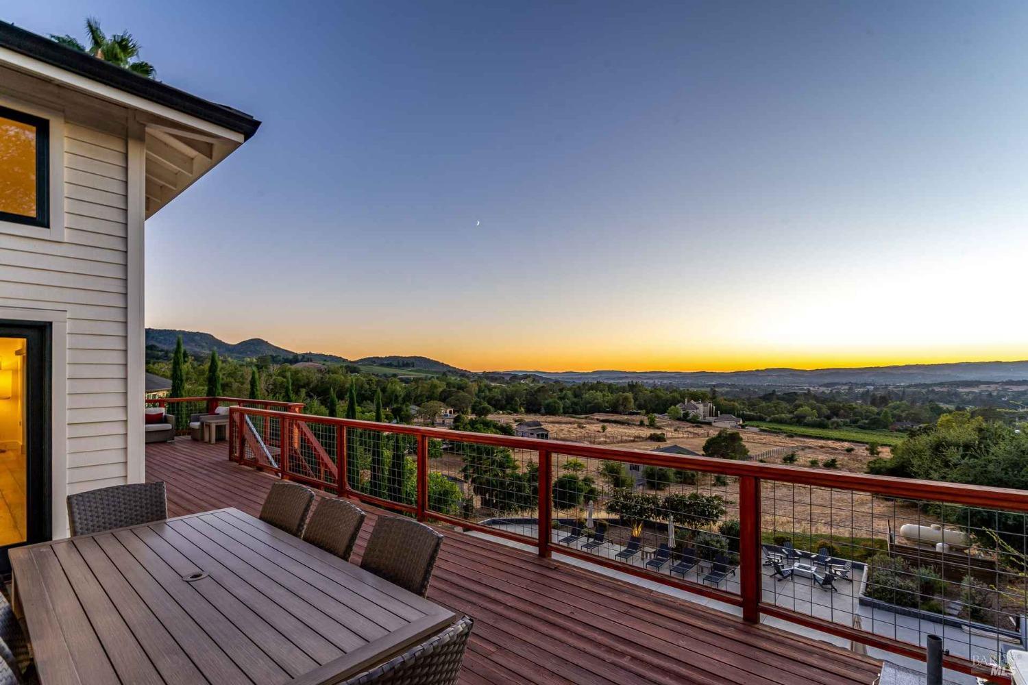 New co-ownership opportunity by Pacaso: Own one-eighth of Shadybrook, a professionally managed, turnkey home. This 1.84-acre hillside property in the Coombsville/Wild Horse AVA offers expansive views of Napa Valley extending toward San Francisco and Sonoma. The vaulted great room features skylights and a fireplace, creating a bright and functional living space suitable for everyday use or entertaining. The kitchen includes a large island and ample workspace for meal preparation. Sliding glass doors from the living and dining areas open to a spacious deck. The terraced backyard includes a pool, outdoor kitchen, dining and lounge areas, and a fire pit. The 4-bedroom, 4-bath home includes a primary suite with a large closet, dressing area, and direct deck access. A secondary suite is located on the opposite side of the home. The property is offered fully furnished and professionally designed.