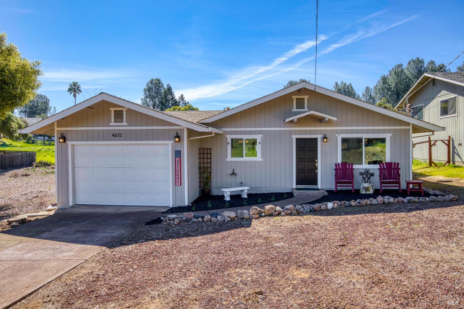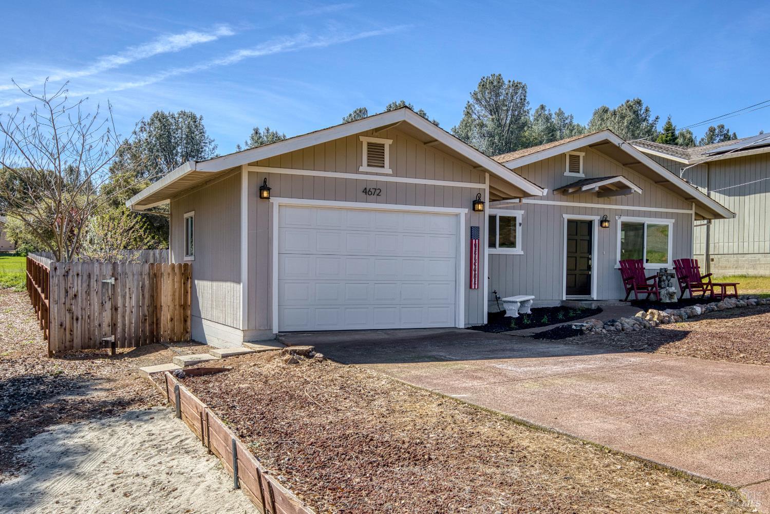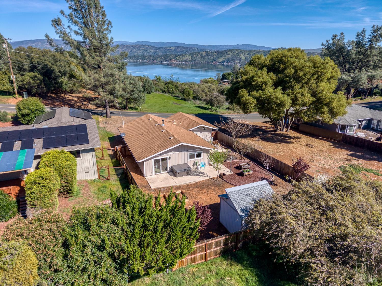 Super cute & completely TURN-KEY home in Kelseyville Riviera! One story 2bed/2bath with a great layout, surprisingly large bedrooms and open kitchen/living area. Like new inside and out with beautiful fresh renovations. New windows, lighting fixtures, hardwood & tile flooring, interior/exterior paint, all new kitchen cabinets, granite counters, stainless appliances & tile backsplash up to ceiling. Both bathrooms renovated with custom high end tile work, nice vanities and new plumbing fixtures. Central HVAC, as well as a new wood burning stove. Fantastic backyard, fully fenced & designed to be low maintenance with easy to clean concrete patios, raised garden beds, and hardscaped. Even includes a hot tub & a brand new large Tuff Shed out back for added storage! Nice level parcel with all useable yard, backs up to open space so no neighbors in the back. Attached 2 car garage. Great option for all buyers & most all financing options too!