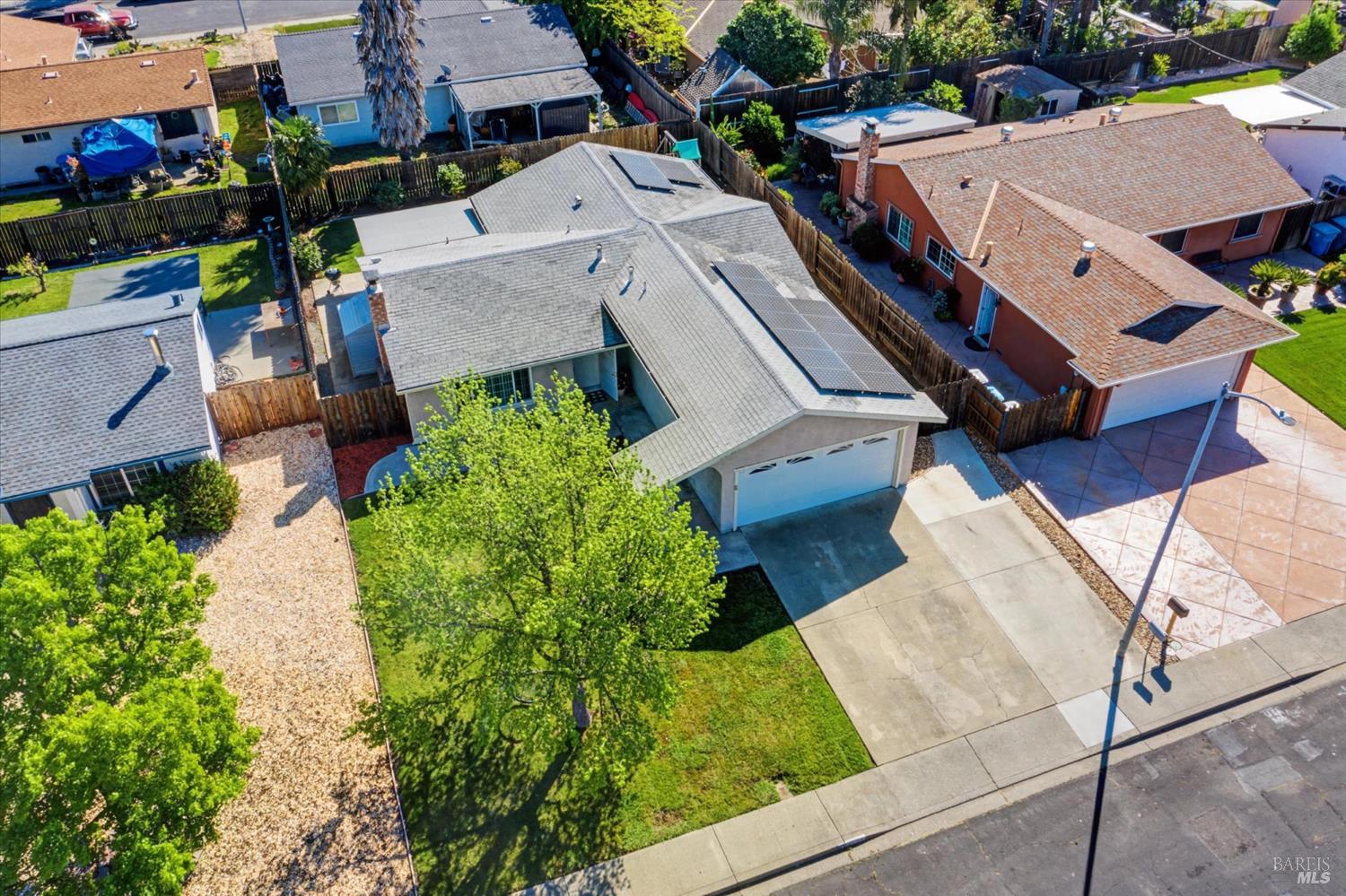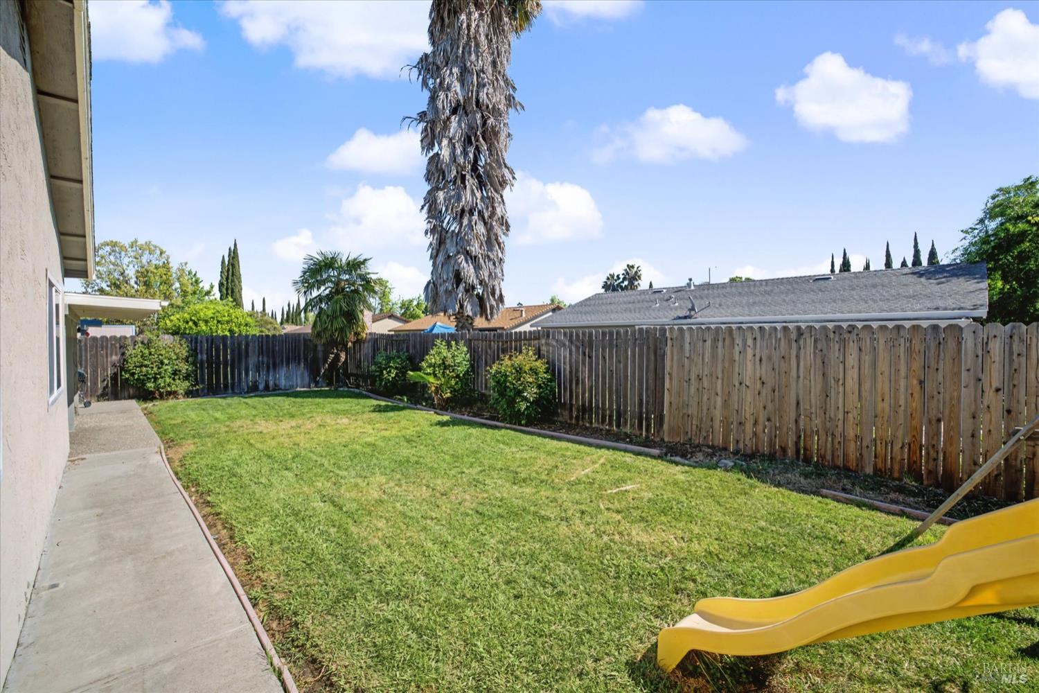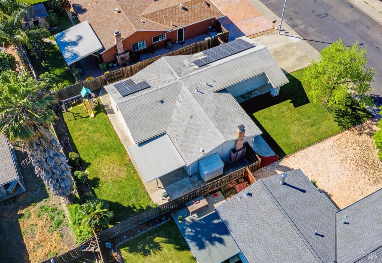 Charming Single story home featuring 4 bedrooms 2 bathrooms, ideally located within the highly desirable Travis Unified School District and just a few blocks from Cambridge Elementary. Built in the 1970's, this home offers a great blend of classic character and modern updates, including remodeled kitchen. upgraded windows and both primary and guest bathrooms have been updated too! Energy efficiency is a standout with owned solar, providing a significant savings on PG&E costs. In addition, Seller is willing to install a new roof at close of escrow and provide a pest clearance too! Buyers will also benefit from a paint and carpet allowance, offering the opportunity to customize and make this home their own! The property also features a large yard and covered patio offering plenty of space for outdoor living and entertaining! Hurry! Homes like this don't come on the market often!