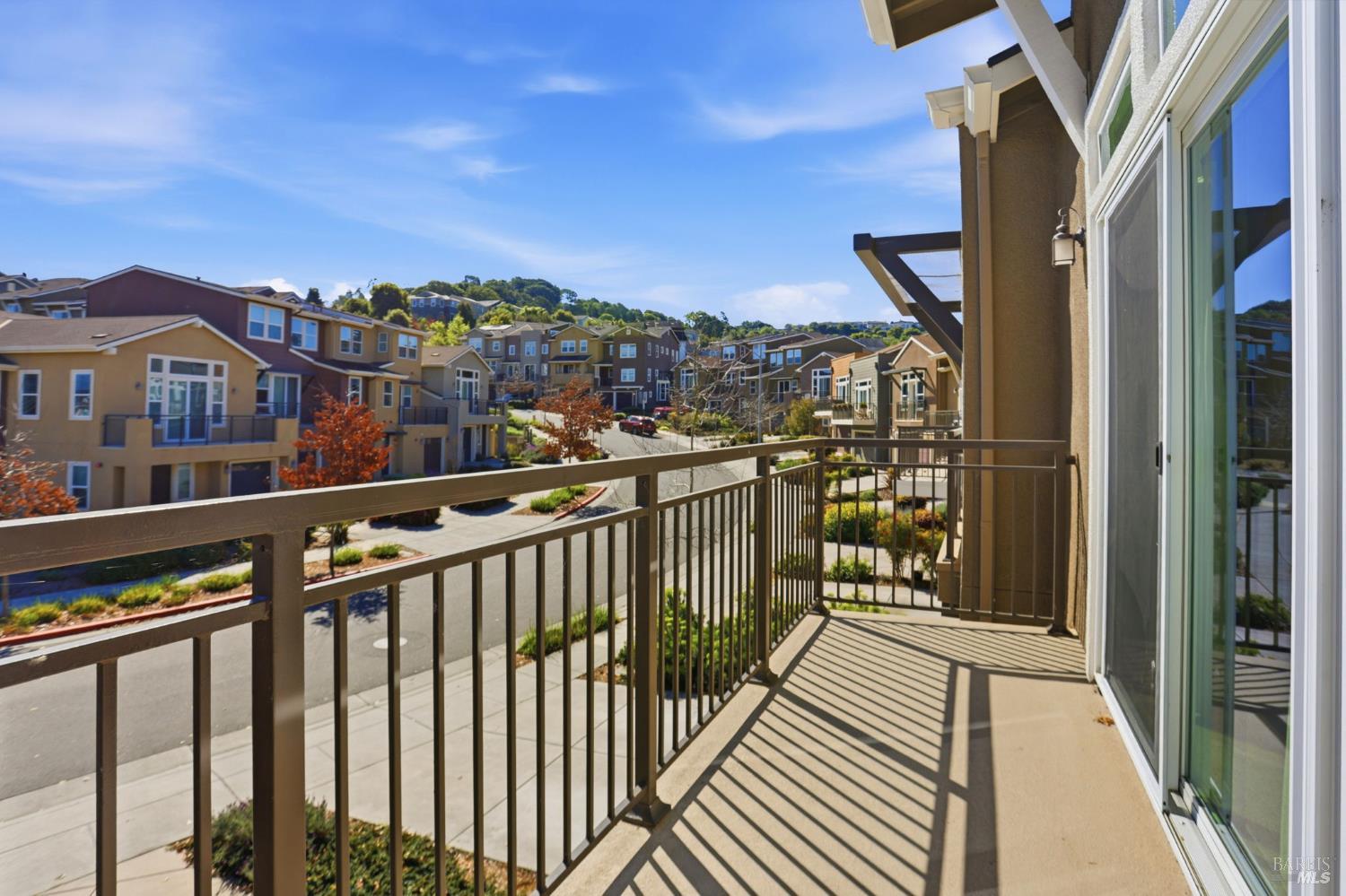 Spacious end-unit townhome in West Petaluma's desirable Quarry Heights community, ideally located near the charm of Historic Downtown Petaluma. This contemporary residence offers generous square footage and a thoughtfully designed floor plan that maximizes both space and functionality. The open-concept main level showcases a beautifully appointed kitchen with sleek, modern finishes, spacious pantry and direct access to a private balcony perfect for taking in sweeping hillside views and enjoying seamless indoor-outdoor living. Year-round comfort is ensured with central A/C, enhanced by multi-zone controls delivering both sustainability and energy efficiency. The inviting primary suite serves as a private retreat, featuring a spacious ensuite bathroom and a large walk-in closet. Additional highlights include three balconies with views and ground-level patio ideal for relaxing. Residents of Quarry Heights enjoy access to multiple parks, a modern clubhouse, and convenient access to nearby highways, making commuting throughout Sonoma County and beyond effortless. All this, just minutes from vibrant dining, boutique shopping, and the best of Petaluma living.