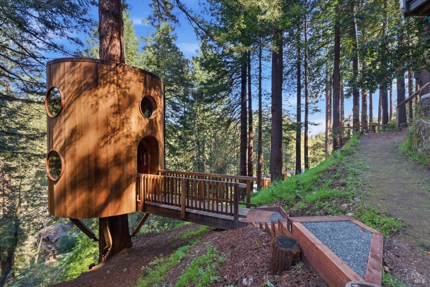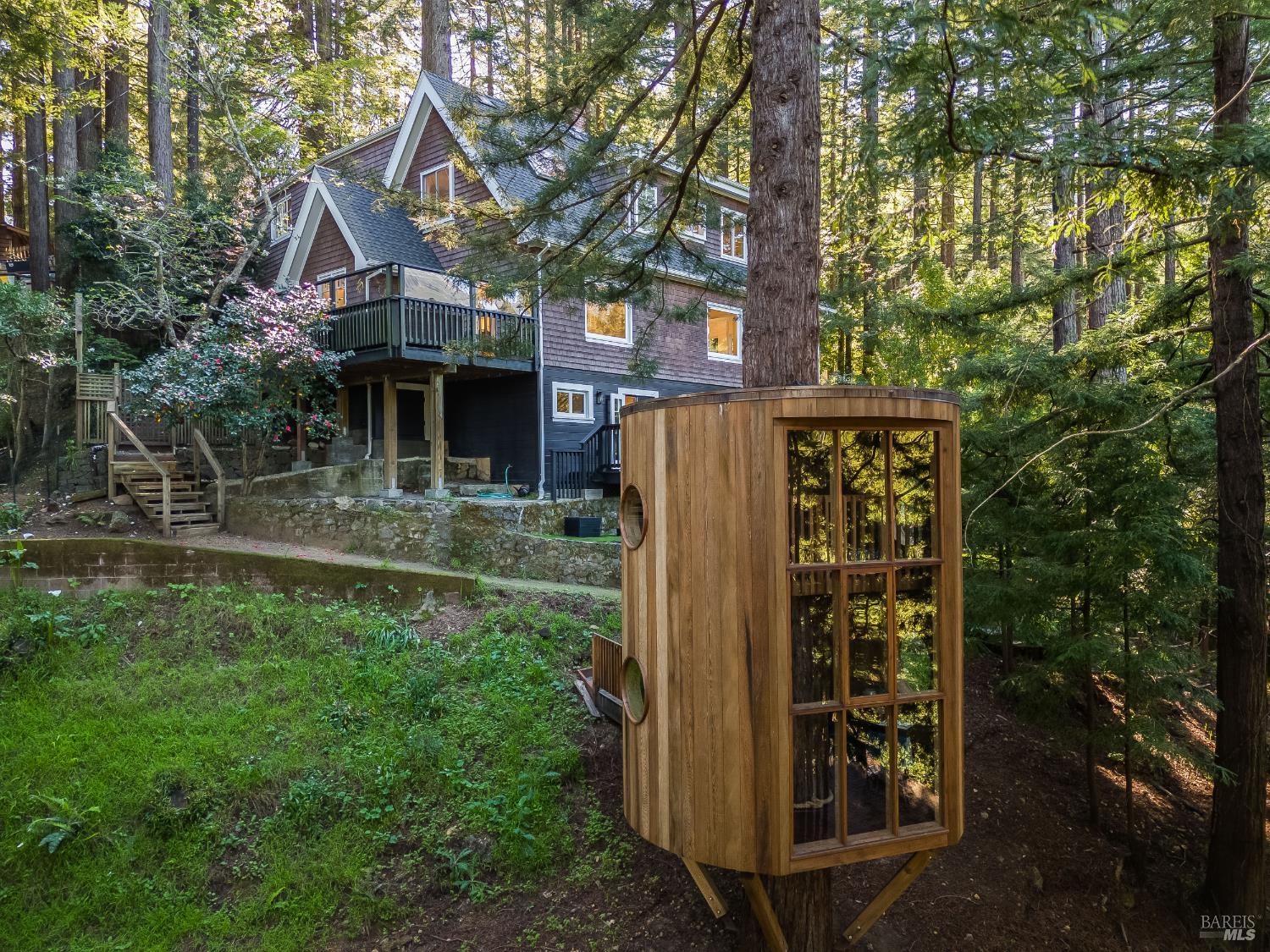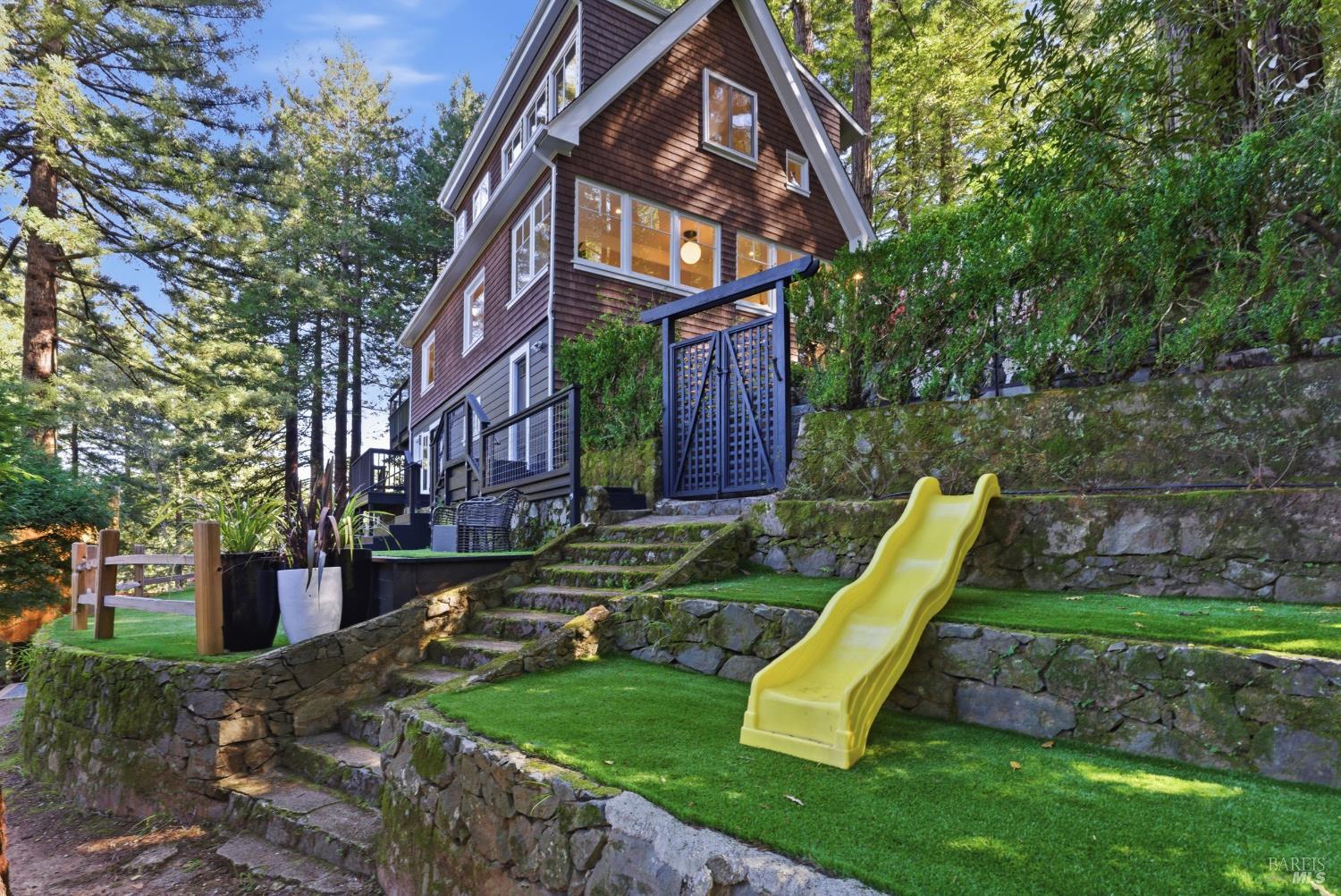 Set within terraced gardens and a magical redwood forest, 39 Renz was originally built in 1912 and has been meticulously updated for modern comfort and convenience. This charming 3-bedroom, 3.5-bathroom craftsman features an updated kitchen with marble countertops and Viking and Miele appliances, a classic fireplace, built-in cabinetry, and a formal dining room with timeless period details. The .5-acre, street-to-street lot boasts a Dwell-worthy detached treehouse retreat designed by renowned Bay Area artist Jay Nelson. The home includes a garage, a storage shed, multiple storage areas, a backup power system, new HVAC with a Mitsubishi mini-split, and an EV charger. This property offers a rare combination: complete privacy nestled within coastal redwoods, yet effortless access to downtown Mill Valley via your own private hillside path. A dedicated shed at the bottom of your path holds bikes, strollers and all your gear, with easy access to ample parking and your choice of flat, scenic walks: head left for Cascade Waterfall or right for Mill Valley Library, Old Mill School, and the villageboth destinations are just a short stroll away. Whether you're heading into town or staying home in your forest retreat, you're surrounded by natural beauty at every turn. The terraced woodland gardens embrace the house with color and texture. Flowers, ferns, shrubs, and trees grace the yard alongside a dedicated herb garden, artificial turf play areas, and multiple patios and decks. And if that is not enough, professional plans for the garden to be reimagined by the amazing SF landscape design firm, TALC Studio, have been prepared and are included with the sale. Outside the backdoor, the incredible treehouse retreat with built-in desk area and loft is suspended on the trunk of a coastal redwood. Designed by Bay Area artist Jay Nelson (featured in Dwell and Sunset magazines), this isn't just a backyard structureit's a work of art and a functional creative space. Whether working, playing, or simply relaxing, you'll love this gorgeous elevated sanctuary. Research shows that immersing yourself in nature has many benefits, but nowhere else can you forest bathe with such style! Multiple options exist for indoor-outdoor entertaining and play. Built-in cabinetry, cozy seating, and period details provide hard-to-find character and charm. A darling nook off one bedroom offers flexible space for play, office or storage. Tam views, outdoor adventure, it's all here--just move in!