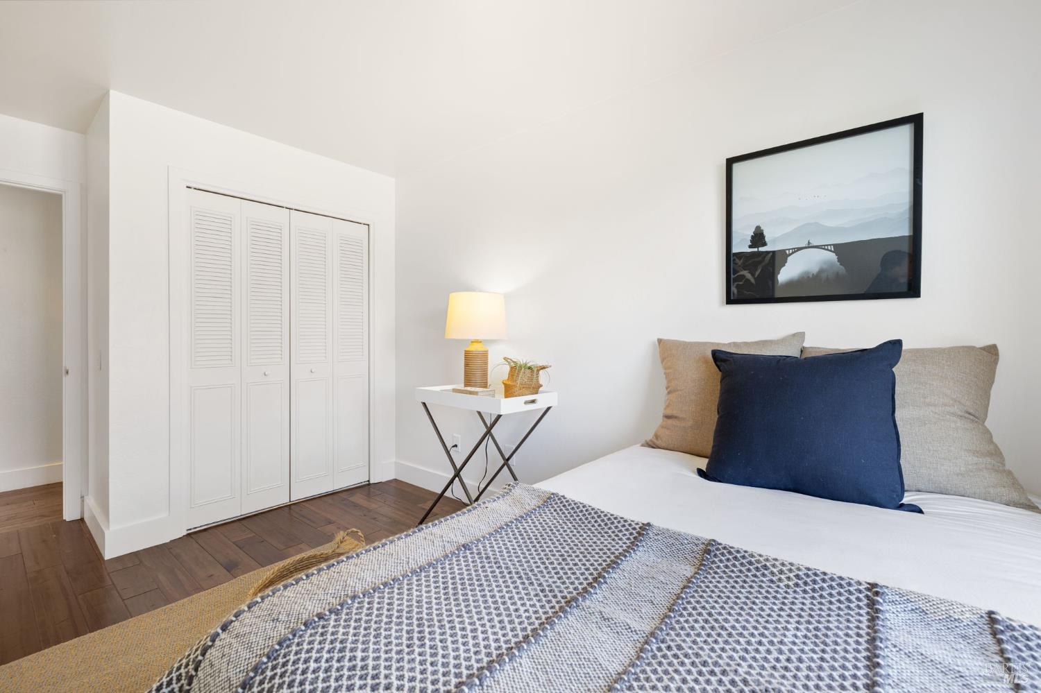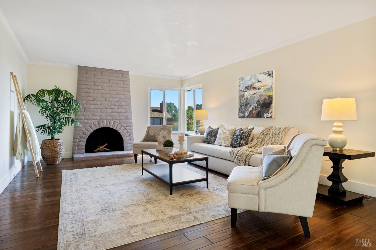Perfect Peacock Gap starter home with 3 beds, 2 baths, stainless steel appliances, engineered hardwood floors, lots of windows 3 sets of french doors leading to a zen-vibed, peaceful back yard with ample patio space and tasteful rock garden. Spacious garage, views of the bay from the living room, interestingly articulated flow from kitchen to living room to dining room. Perched up on the hill on McNear Dr. with long-distance views & safety away from concern about errant climate-induced inundation. Enjoy quick access to the watery wonder of McNear Beach, the physicality of China Camp & the maritime culture of Loch Lomond & Andy's Market