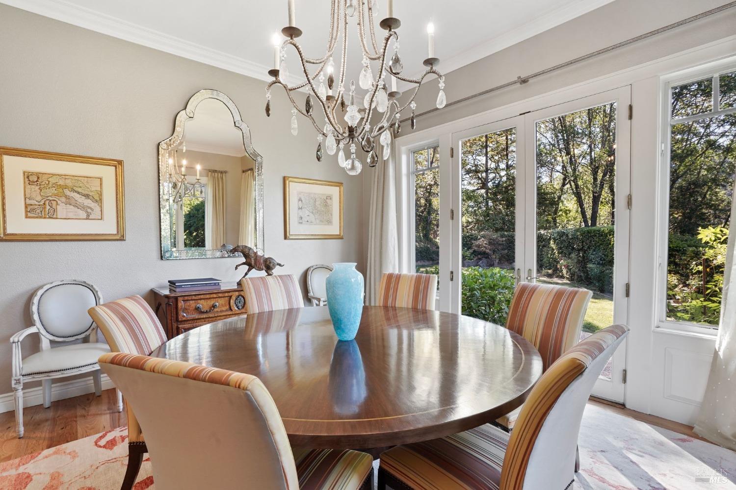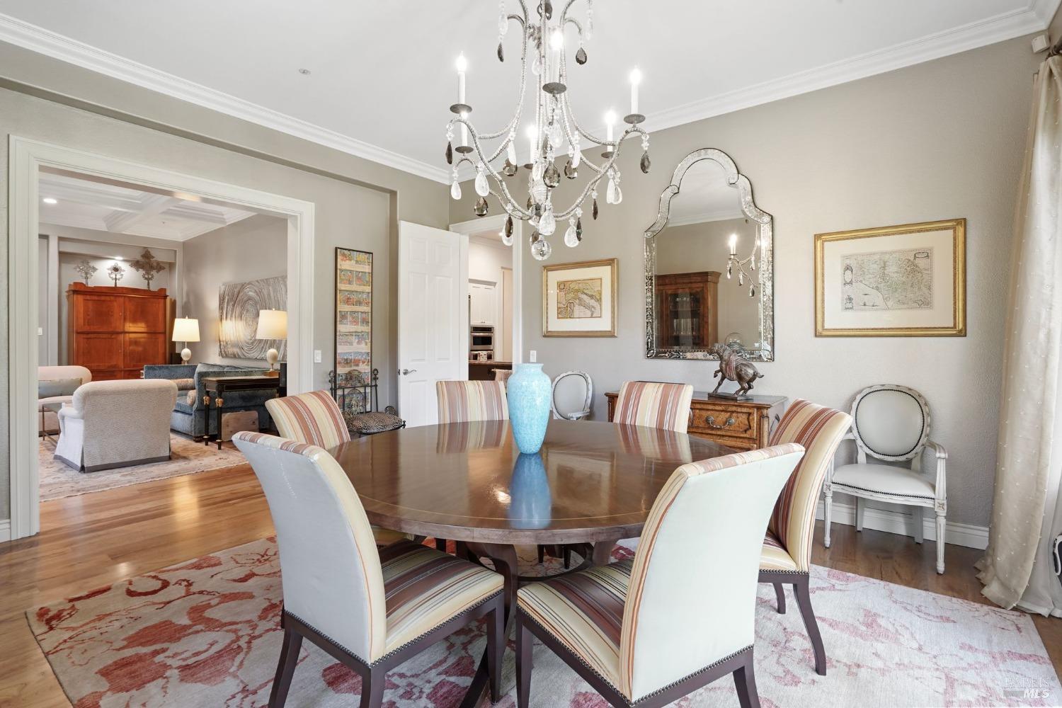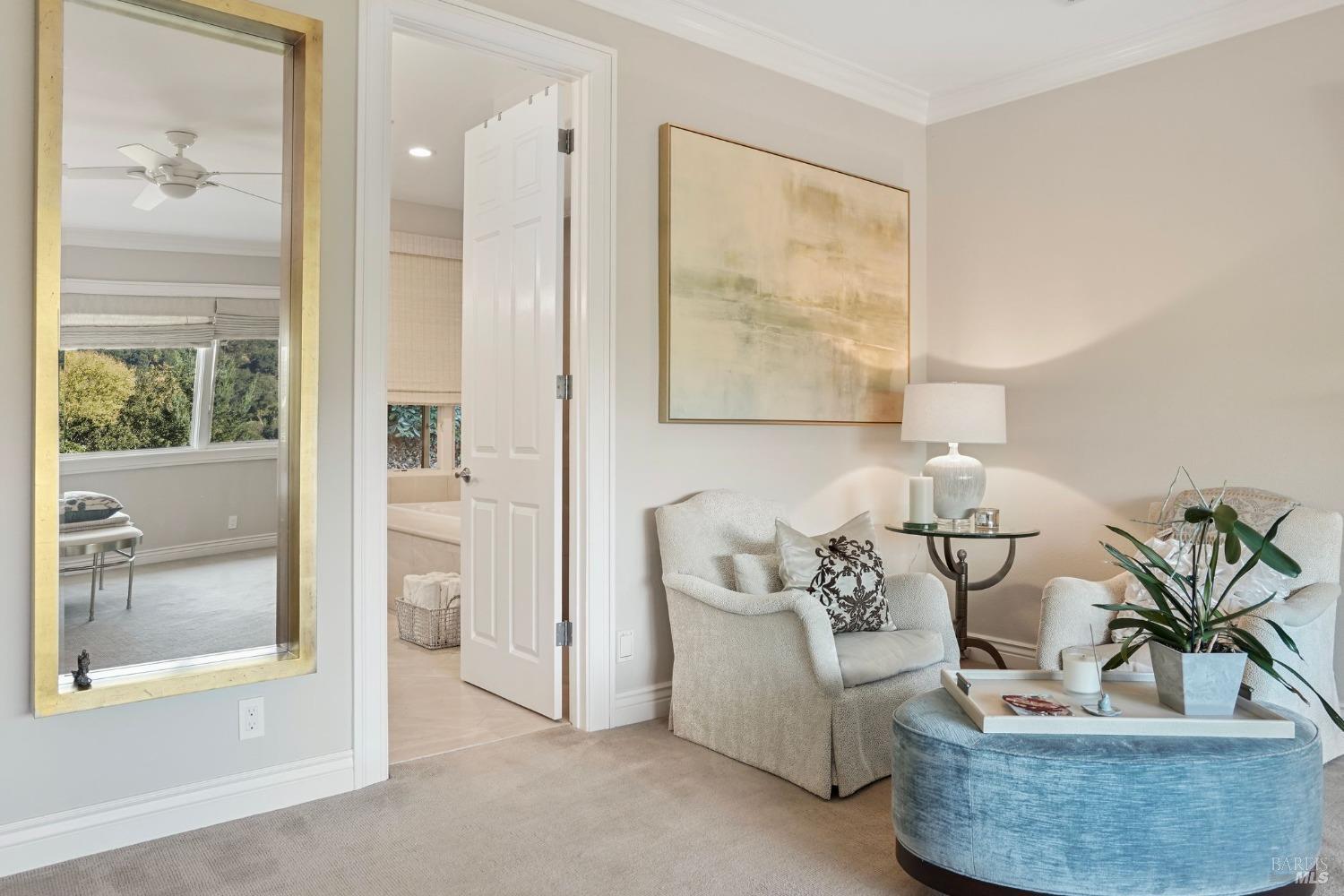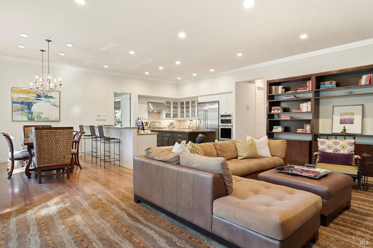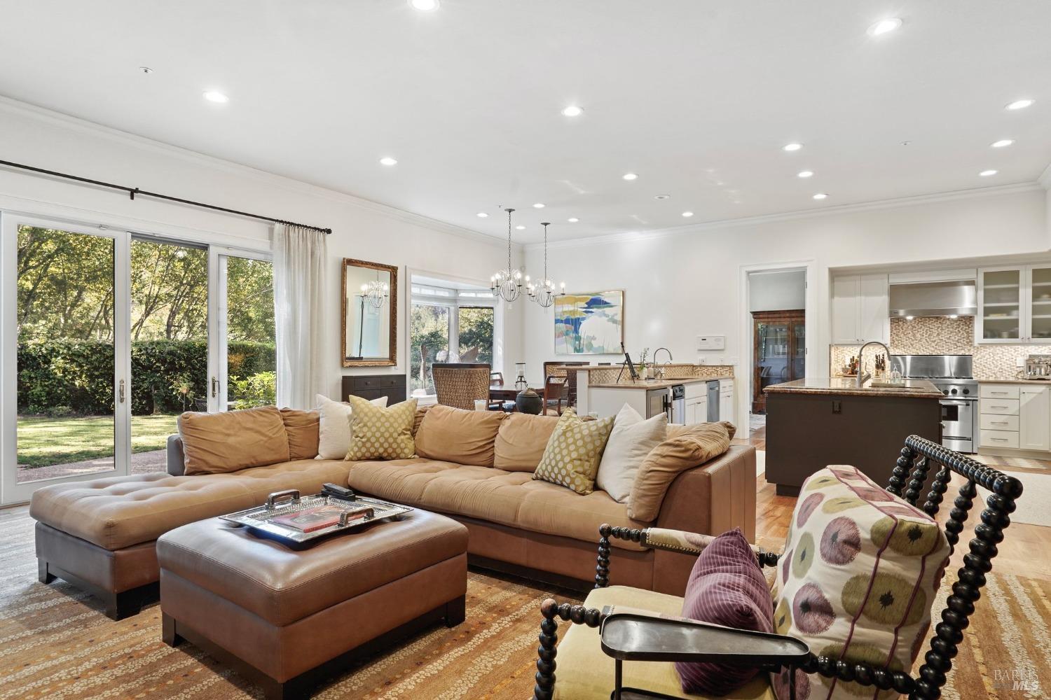 Furnished, Elegant Craftsman-Style home in the heart of Kentfield. Set in a private, gated setting with scenic views, this residence blends timeless elegance with modern comforts. Featuring rich woodwork, coffered ceilings, a gourmet kitchen with top-tier appliances, and an open floor plan ideal for both every day living and entertaining. The family room with beamed ceiling and custom built-ins opens to a beautifully landscaped backyard through French doors, offering seamless indoor-outdoor living.