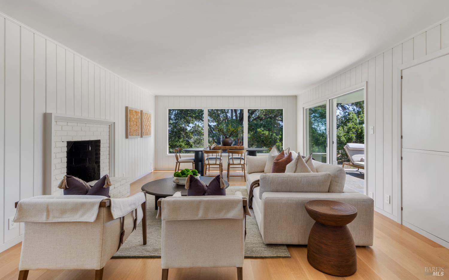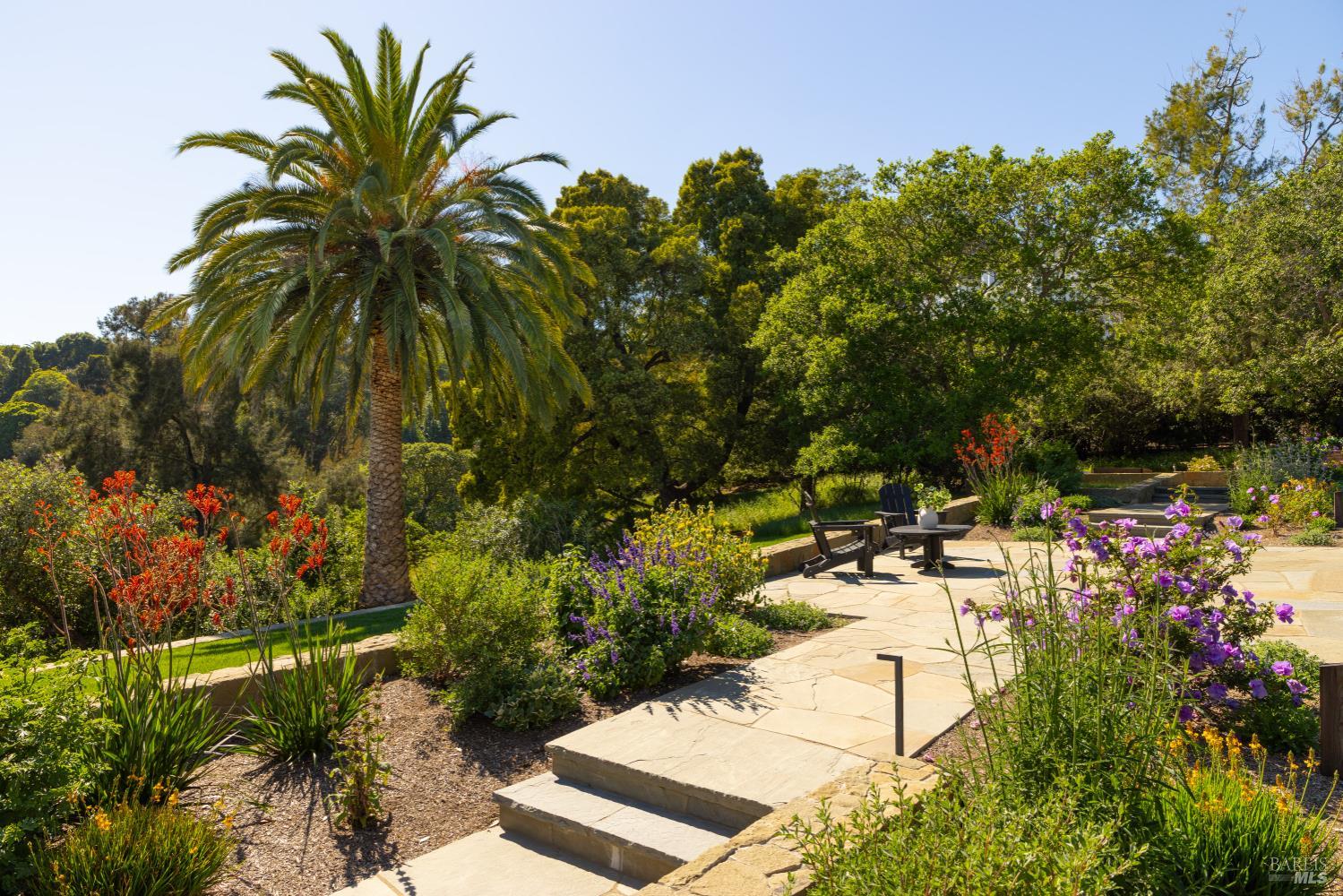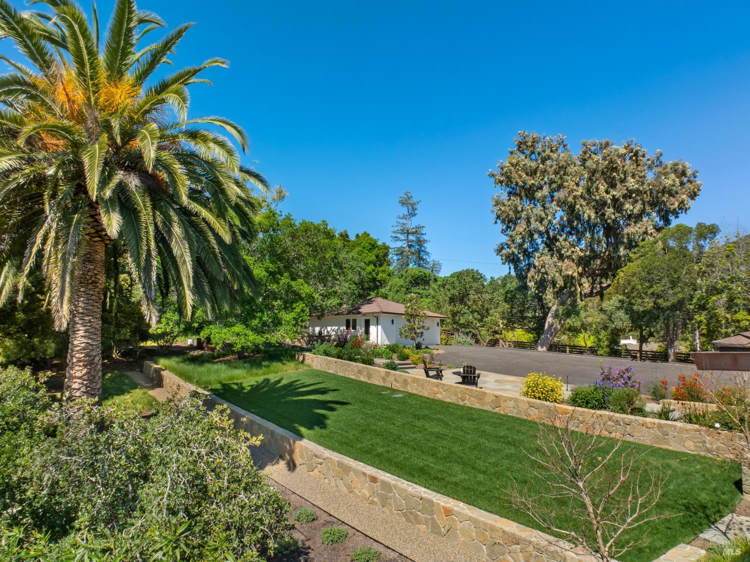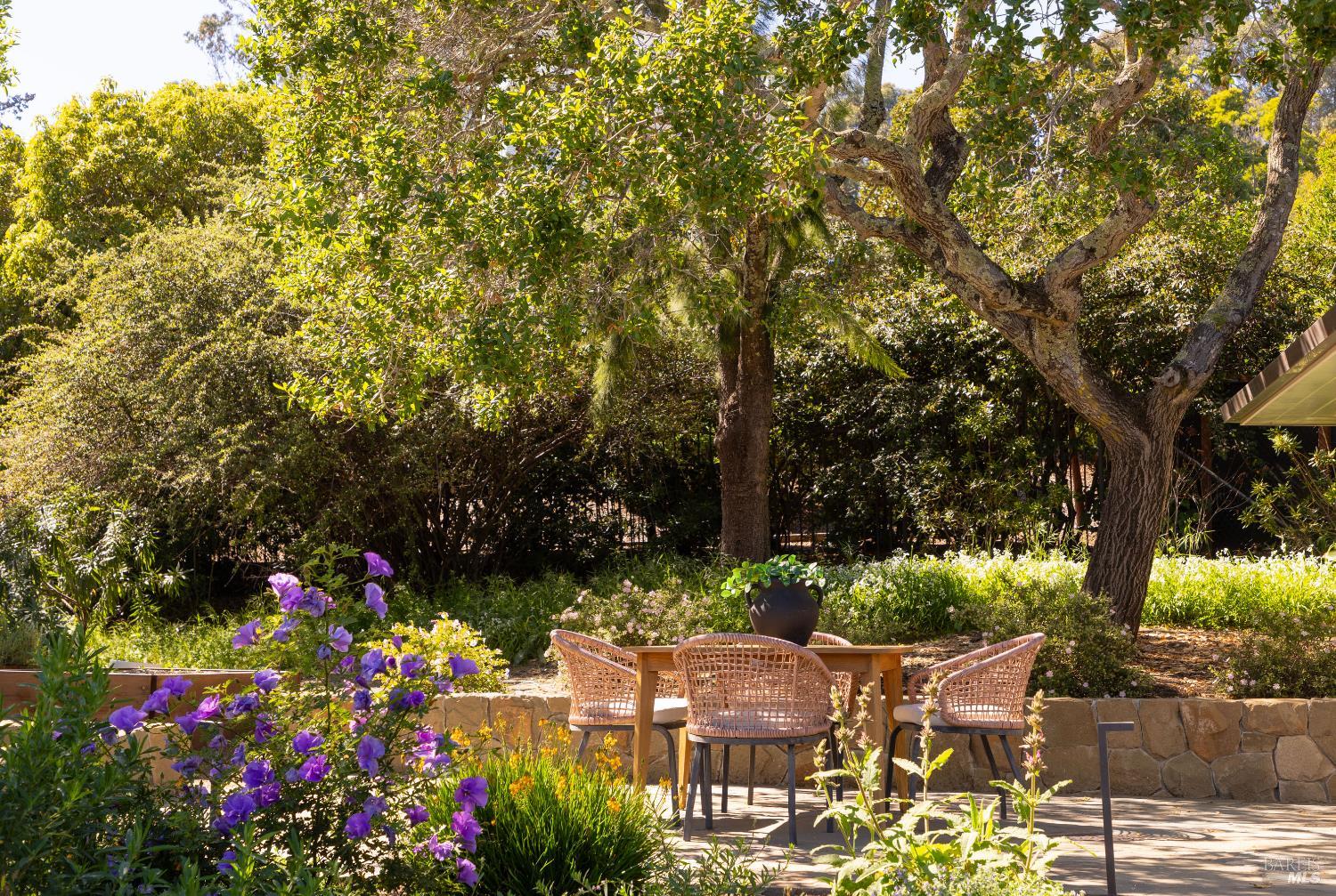 Tucked behind a gated entrance and set on an expansive 1.4+ acre, sun-drenched parcel, 313 Summit Avenue offers a rare combination of single-level living, privacy and beautiful views. Extensively remodeled and upgraded, this beautifully reimagined 3-bedroom, 2-bath suburban modern residence features a thoughtfully designed floor plan with mid-century accents, generous living spaces and well-proportioned bedrooms. The light-filled eat-in kitchen and adjacent family room open seamlessly to two serene flagstone patios, creating effortless indoor-outdoor flow ideal for entertaining or enjoying your morning coffee with a view. There is a spacious living room with fireplace, an inviting family room/dining area, and a newly completed mudroom which enhances both comfort and functionality. The comprehensive renovation includes wide-plank oak flooring, many new windows and sliding glass doors, updated HVAC, new electrical and plumbing systems delivering both modern efficiency and timeless style. The grounds are equally impressive. Mature landscaping, majestic oak trees, magnolias, palm, olive and fruit trees all add to the property's natural beauty. Designed for year-round enjoyment, the outdoor spaces feature a built-in BBQ with refrigerator, fire pit, fountain, impressive stone retaining walls, beautiful sod lawn, exterior lighting, and a newly installed gate along a private drive. The setting feels park-like, peaceful, and private. Additional highlights include a detached two-car garage with abundant storage and ample off-street parking. The infrastructural electric power, gas and water supply has been significantly upsized for expansion potential. Stunningly remodeled and landscaped, this home and property offers a rare opportunity to enjoy single-level living with privacy and views, just minutes from San Rafael's vibrant shops and restaurants, and with convenient access to Highway 101 for a quick commute to downtown San Francisco. A truly special offering in a serene and sought-after San Rafael location.