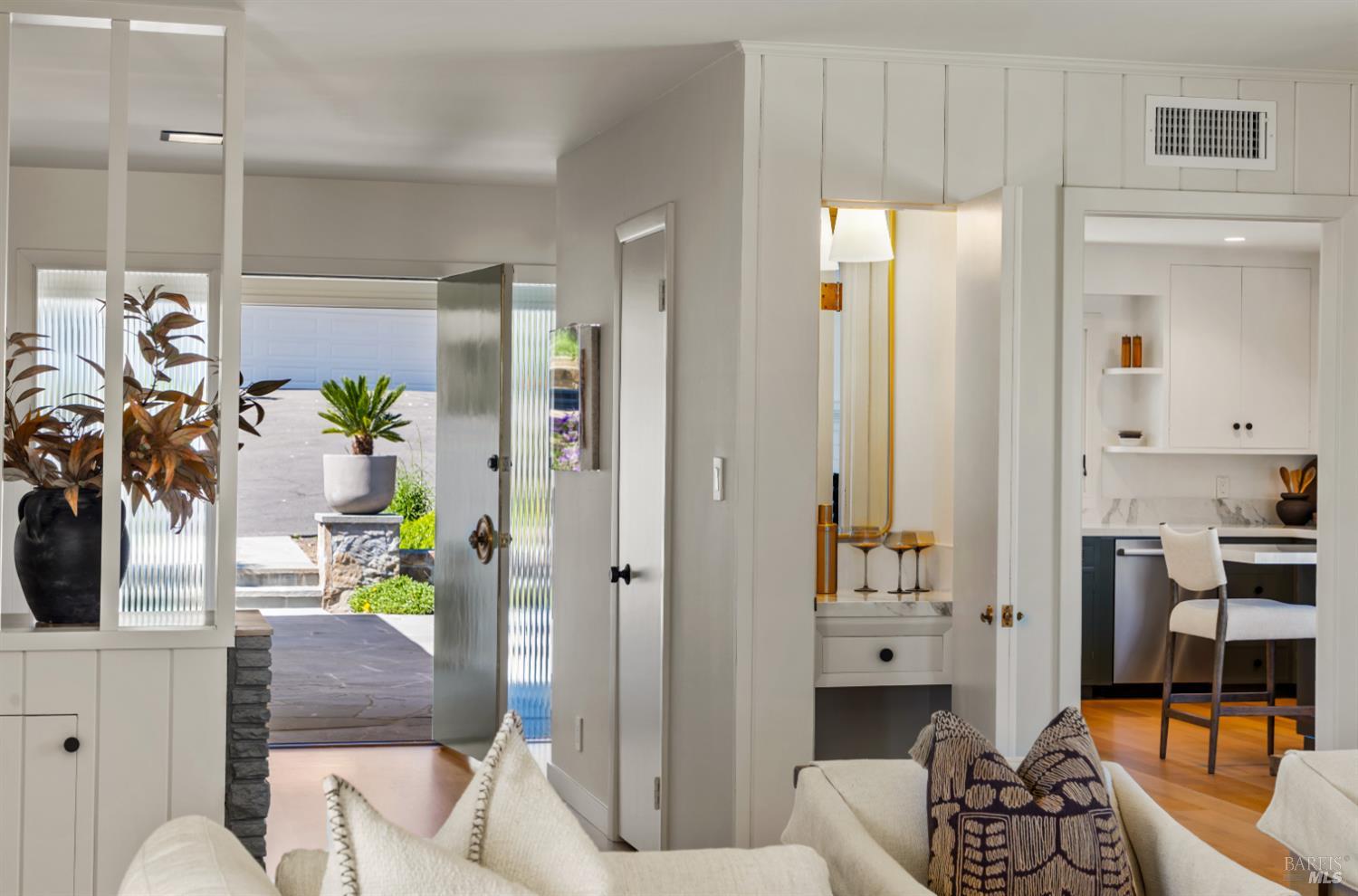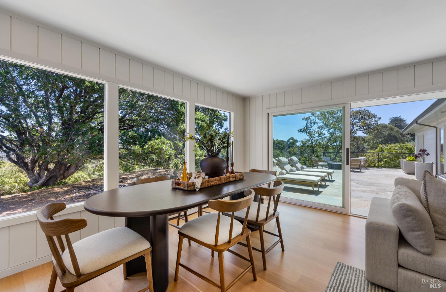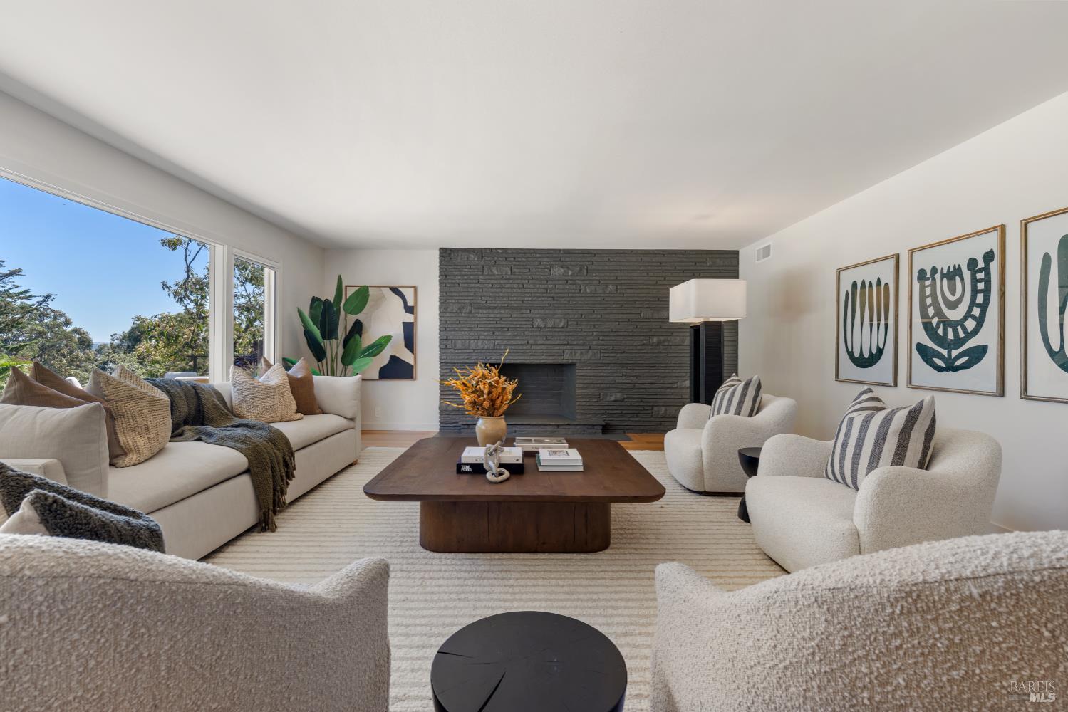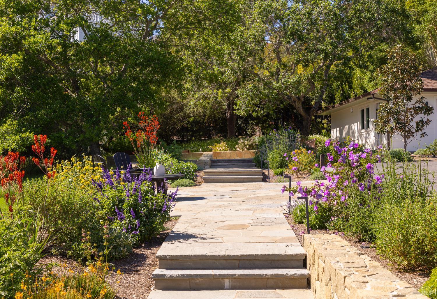Tucked behind a gated entrance and set on an expansive 1.4+ acre, sun-drenched parcel, 313 Summit Avenue offers a rare combination of single-level living, privacy and beautiful views. Extensively remodeled and upgraded, this beautifully reimagined 3-bedroom, 2-bath suburban modern residence features a thoughtfully designed floor plan with mid-century accents, generous living spaces and well-proportioned bedrooms. The light-filled eat-in kitchen and adjacent family room open seamlessly to two serene flagstone patios, creating effortless indoor-outdoor flow ideal for entertaining or enjoying your morning coffee with a view. There is a spacious living room with fireplace, an inviting family room/dining area, and a newly completed mudroom which enhances both comfort and functionality. The comprehensive renovation includes wide-plank oak flooring, many new windows and sliding glass doors, updated HVAC, new electrical and plumbing systems delivering both modern efficiency and timeless style. The grounds are equally impressive. Mature landscaping, majestic oak trees, magnolias, palm, olive and fruit trees all add to the property's natural beauty. Designed for year-round enjoyment, the outdoor spaces feature a built-in BBQ with refrigerator, fire pit, fountain, impressive stone retaining walls, beautiful sod lawn, exterior lighting, and a newly installed gate along a private drive. The setting feels park-like, peaceful, and private. Additional highlights include a detached two-car garage with abundant storage and ample off-street parking. The infrastructural electric power, gas and water supply has been significantly upsized for expansion potential. Stunningly remodeled and landscaped, this home and property offers a rare opportunity to enjoy single-level living with privacy and views, just minutes from San Rafael's vibrant shops and restaurants, and with convenient access to Highway 101 for a quick commute to downtown San Francisco. A truly special offering in a serene and sought-after San Rafael location.