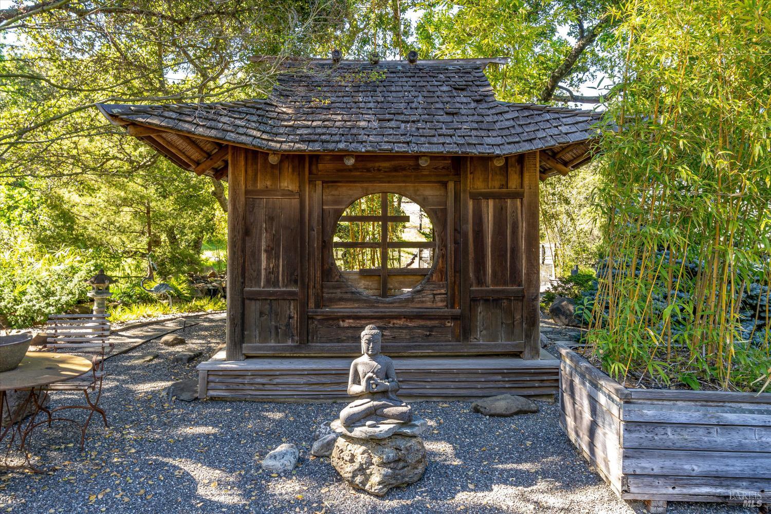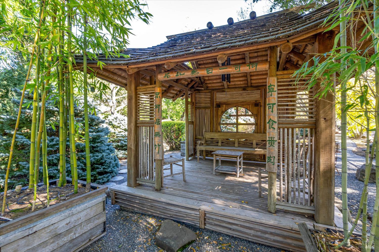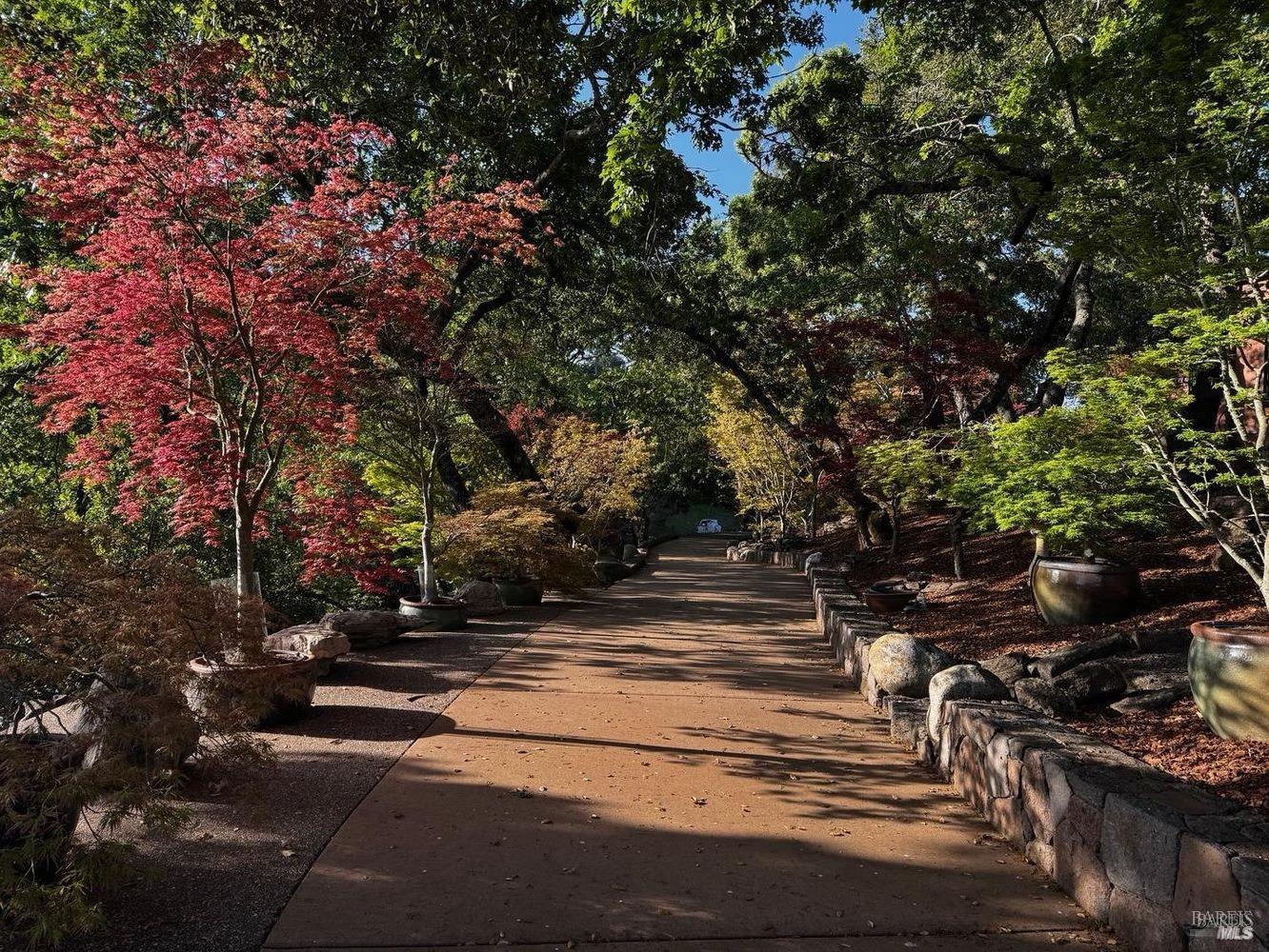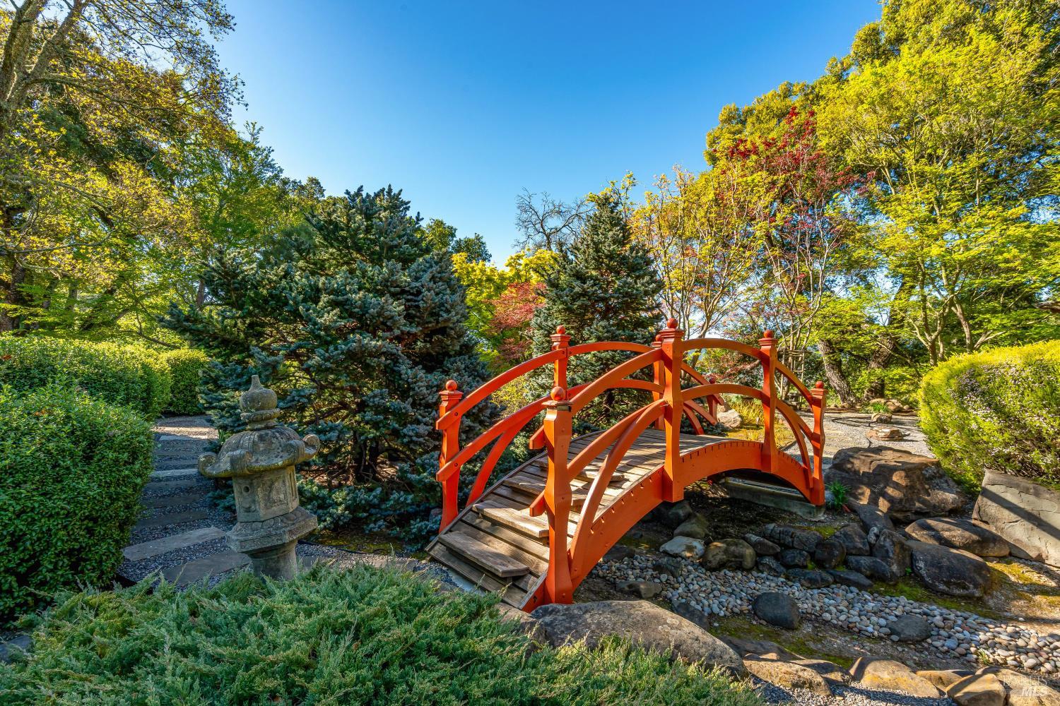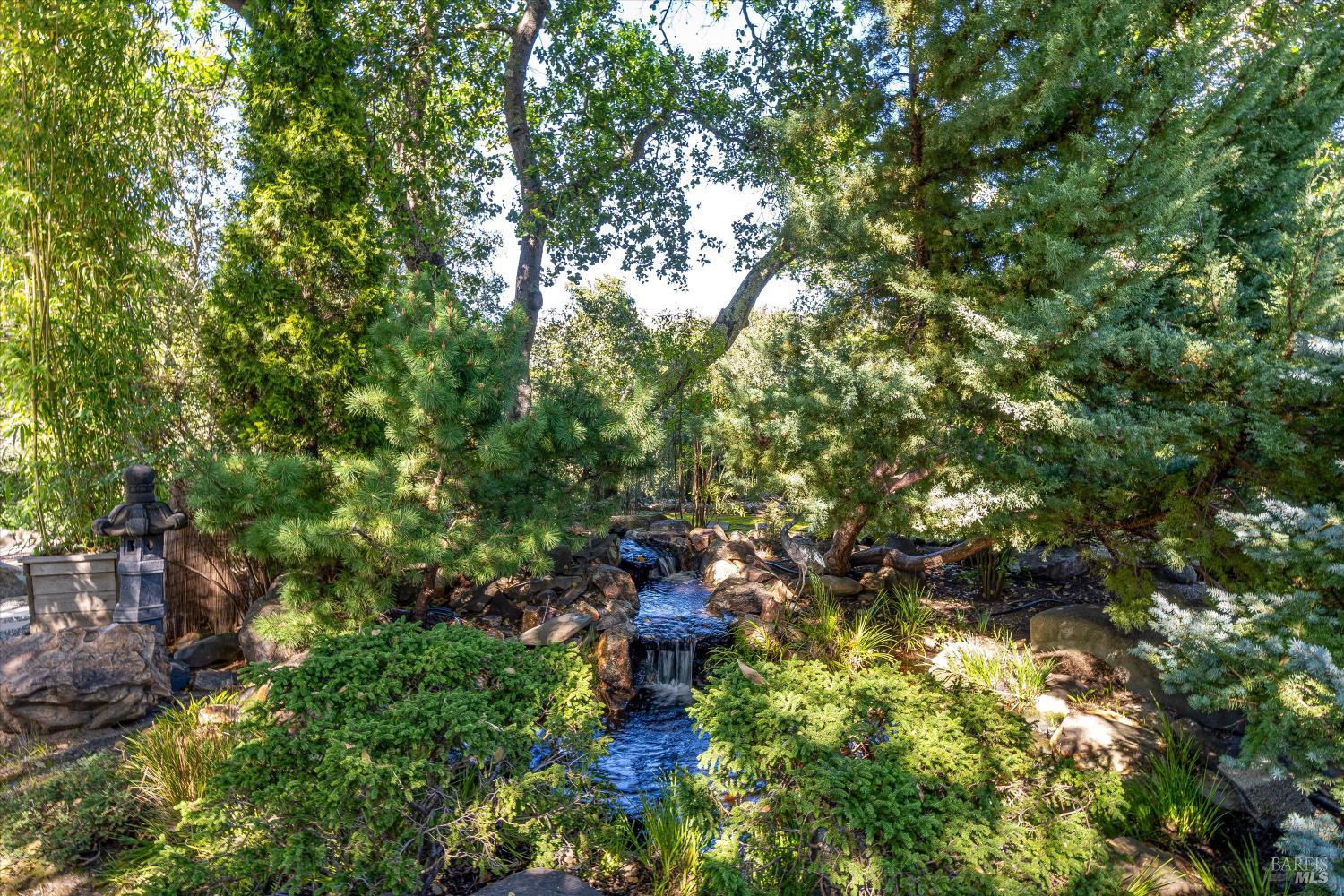 Privacy and Tranquility. Inspired by the French Provincial laid back life style, the owners have created a home on top a knoll with a harmonious atmosphere of style, comfort and serenity. To further enhance these feelings they created a Zen tea garden, trails meandering throughout the property, an alley of maple trees with an elevated walkway leading to a sitting area among the trees, a tiered succulent garden as well as an outdoor dining area with a pizza oven. The view...There is no word to describe the valley view on the one side and the Stags Leap mountain on the other but to physically experience the changing light throughout the day and the evolving seasons. The overall feeling is both calming and inspiring adding a sense of verdant tranquility to this special place. For the next owners of this incredible 20 acre property there is a unique opportunity, if desired, to turn the meadow into a vineyard, wine cave and winery at the heart of the world famous Stags Leap district.