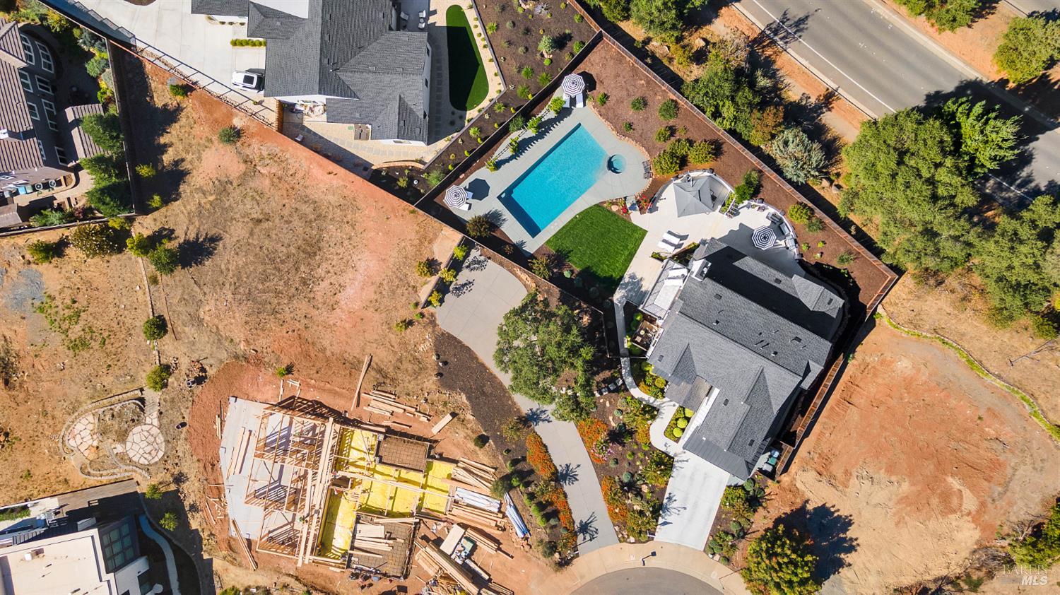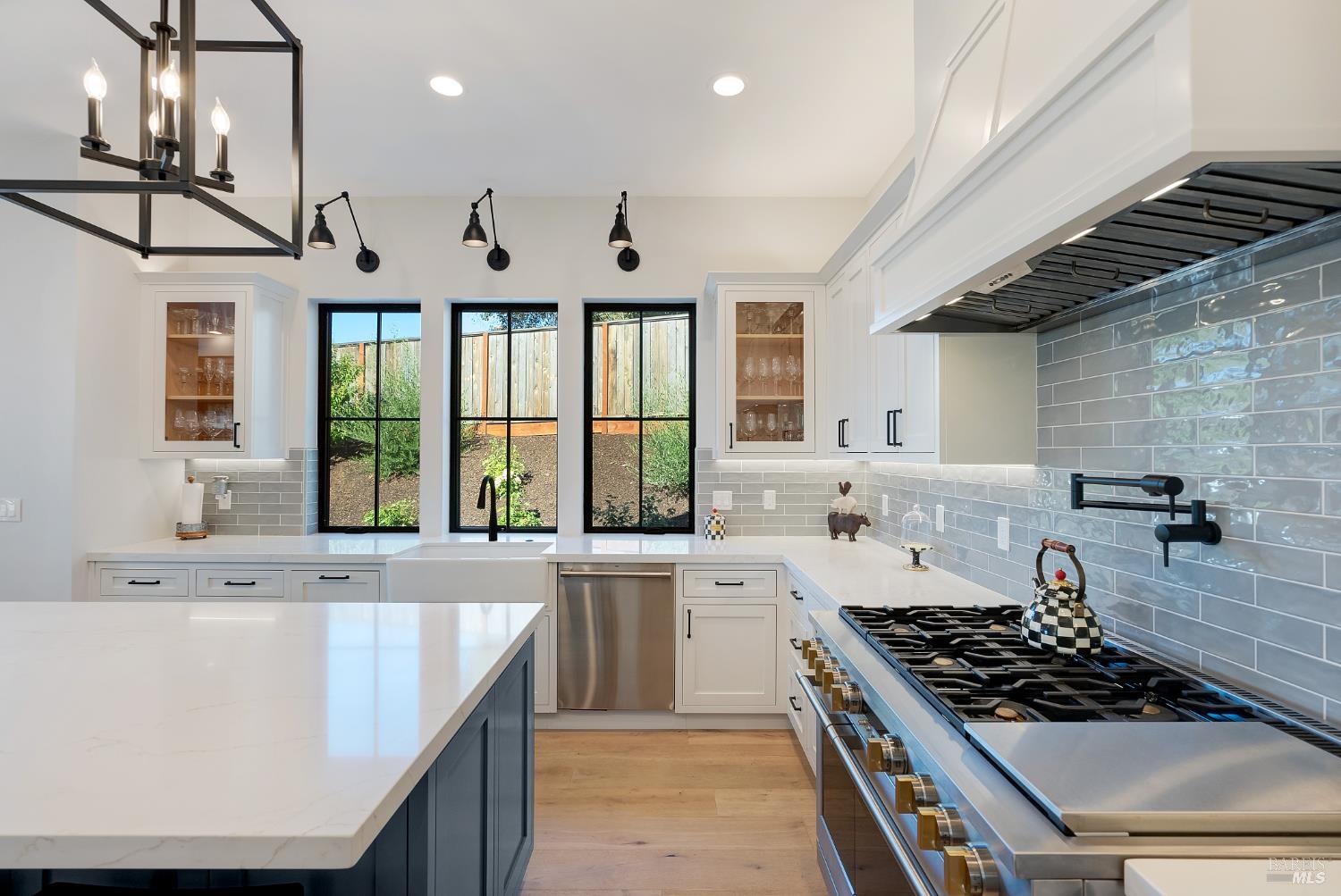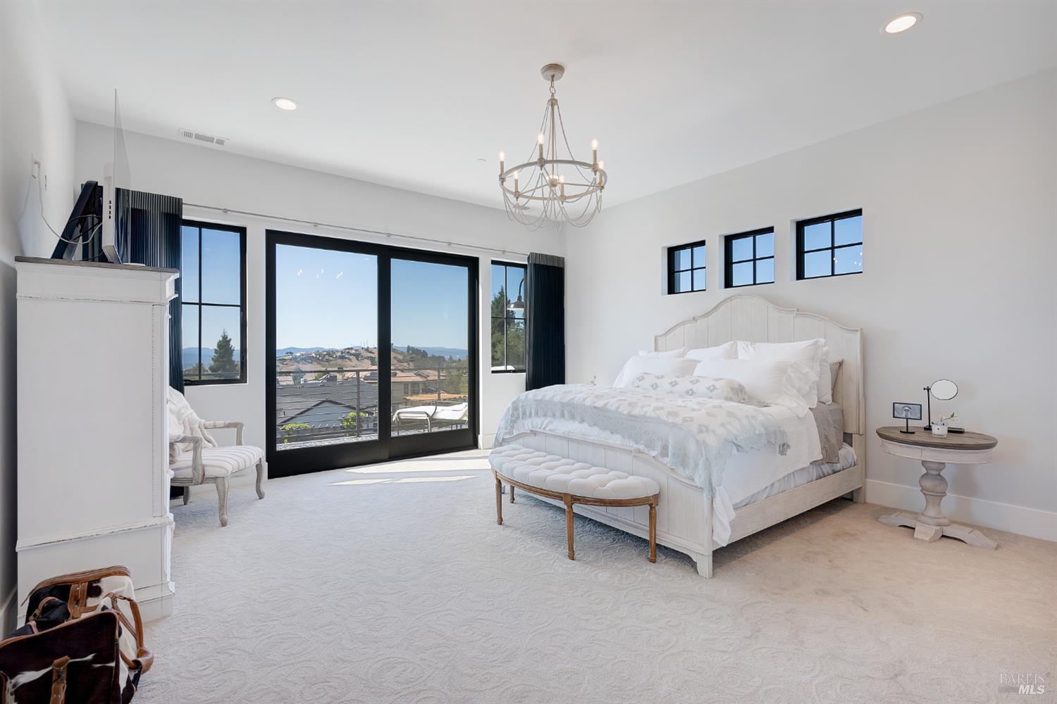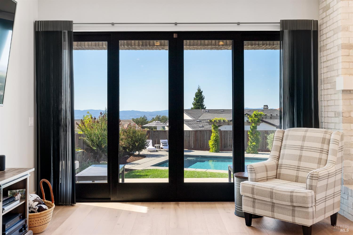 Stunning, Modern Farmhouse set on over a 0.30-acre lot at the end of a quiet cul-de-sac, featuring a walkout yard, new pool and spa. Sweeping views extend from much of the home and grounds, twinkling city lights, sunsets, and the distant coastal ranges. The main level is designed for effortless living and includes a secondary suite, home office, and an expansive great room with wine display and storage cellar, anchored by a chef's kitchen equipped with premium stainless steel GE Monogram appliances, including a 48 range, refrigerator, and dishwasher. Upstairs, the luxurious primary suite offers a sun-filled private deck, perfect for taking in the views. Two additional bedrooms share a dual-vanity bathroom. A spacious laundry room completes the upper level. The walkout backyard is ideal for both entertaining and everyday enjoyment, with three expansive patios, a flowing lawn, and a PebbleTec pool and spa. The garage is finished with a new epoxy floor, abundant natural light, and ample storage ready for vehicles, hobbies, or bonus space.