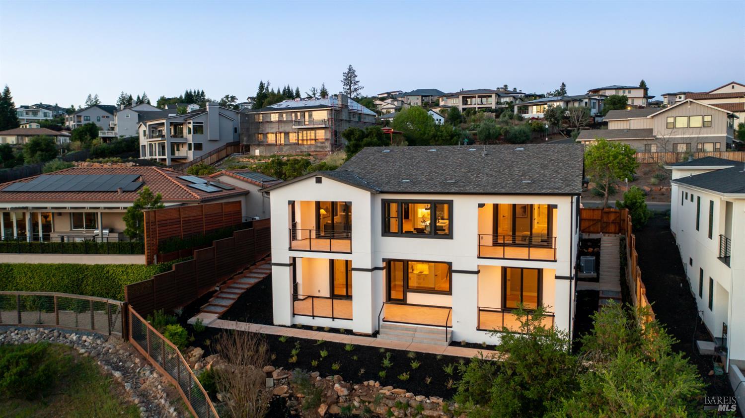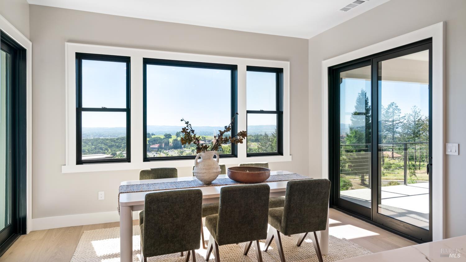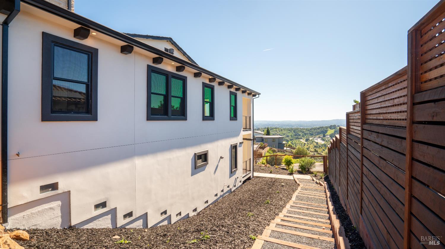 Modern luxury home with sweeping southwest-facing views in the highly desirable Fountaingrove neighborhood of Santa Rosa. This newly built 4-bedroom, 4-bathroom hillside home offers 3,342 sq ft of thoughtfully designed living space, including a dedicated office and two ensuite bedrooms on the lower level complete with a kitchenette and laundry hookupsideal for guests, extended living, or added flexibility. Designed with contemporary elegance, the home features black-framed windows, engineered hardwood floors, quartz countertops, and premium appliances. The open-concept floor plan includes a spacious kitchen with a compact walk-in pantry, indoor laundry, and multiple covered balconies that capture stunning Sonoma County sunset views. The primary suite offers a spa-inspired retreat with modern finishes, including heated floors in the primary bedroom, while additional bedrooms include walk-in closets and versatile living options. Seamless indoor-outdoor flow leads to expansive covered balconies, perfect for entertaining or relaxing in wine country style. Situated on a .24-acre lot, the property offers space to create your ideal outdoor setting whether a pool, garden, or hobby vineyard. Located just minutes from Fountaingrove Golf & Athletic Club, Sutter Health, Medtronic, Kaiser, and downtown Santa Rosa. Experience modern hillside living with luxury finishes, panoramic views, and a prime Sonoma County location.