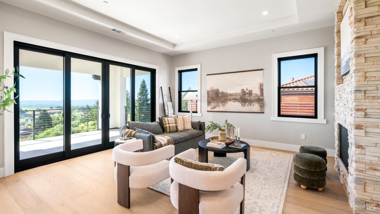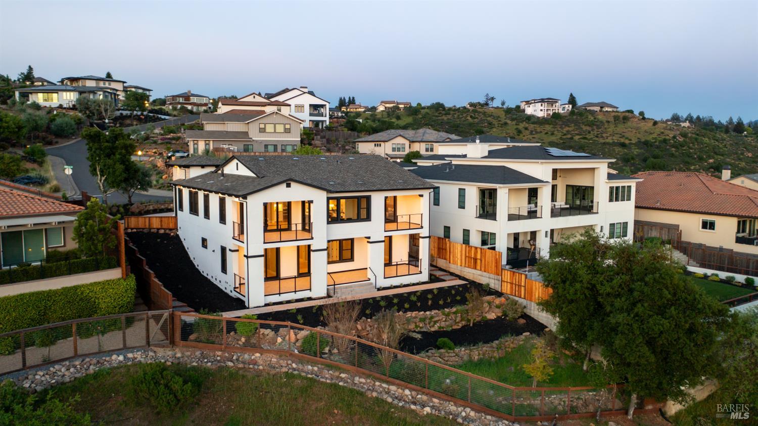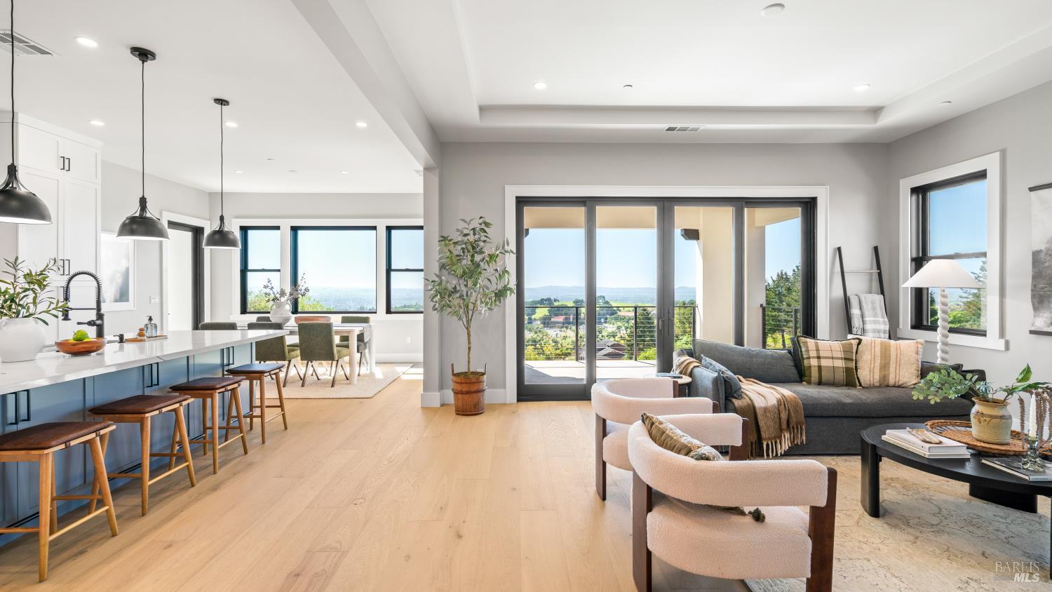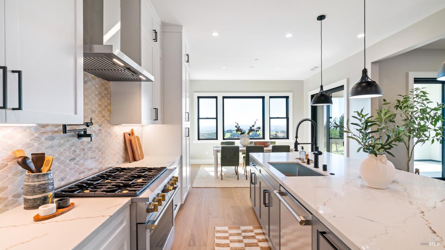 Modern luxury home with sweeping southwest-facing views in the highly desirable Fountaingrove neighborhood of Santa Rosa. This newly built 4-bedroom, 4-bathroom hillside home offers 3,342 sq ft of thoughtfully designed living space, including a dedicated office and two ensuite bedrooms on the lower level complete with a kitchenette and laundry hookupsideal for guests, extended living, or added flexibility. Designed with contemporary elegance, the home features black-framed windows, engineered hardwood floors, quartz countertops, and premium appliances. The open-concept floor plan includes a spacious kitchen with a compact walk-in pantry, indoor laundry, and multiple covered balconies that capture stunning Sonoma County sunset views. The primary suite offers a spa-inspired retreat with modern finishes, including heated floors in the primary bedroom, while additional bedrooms include walk-in closets and versatile living options. Seamless indoor-outdoor flow leads to expansive covered balconies, perfect for entertaining or relaxing in wine country style. Situated on a .24-acre lot, the property offers space to create your ideal outdoor setting whether a pool, garden, or hobby vineyard. Located just minutes from Fountaingrove Golf & Athletic Club, Sutter Health, Medtronic, Kaiser, and downtown Santa Rosa. Experience modern hillside living with luxury finishes, panoramic views, and a prime Sonoma County location.