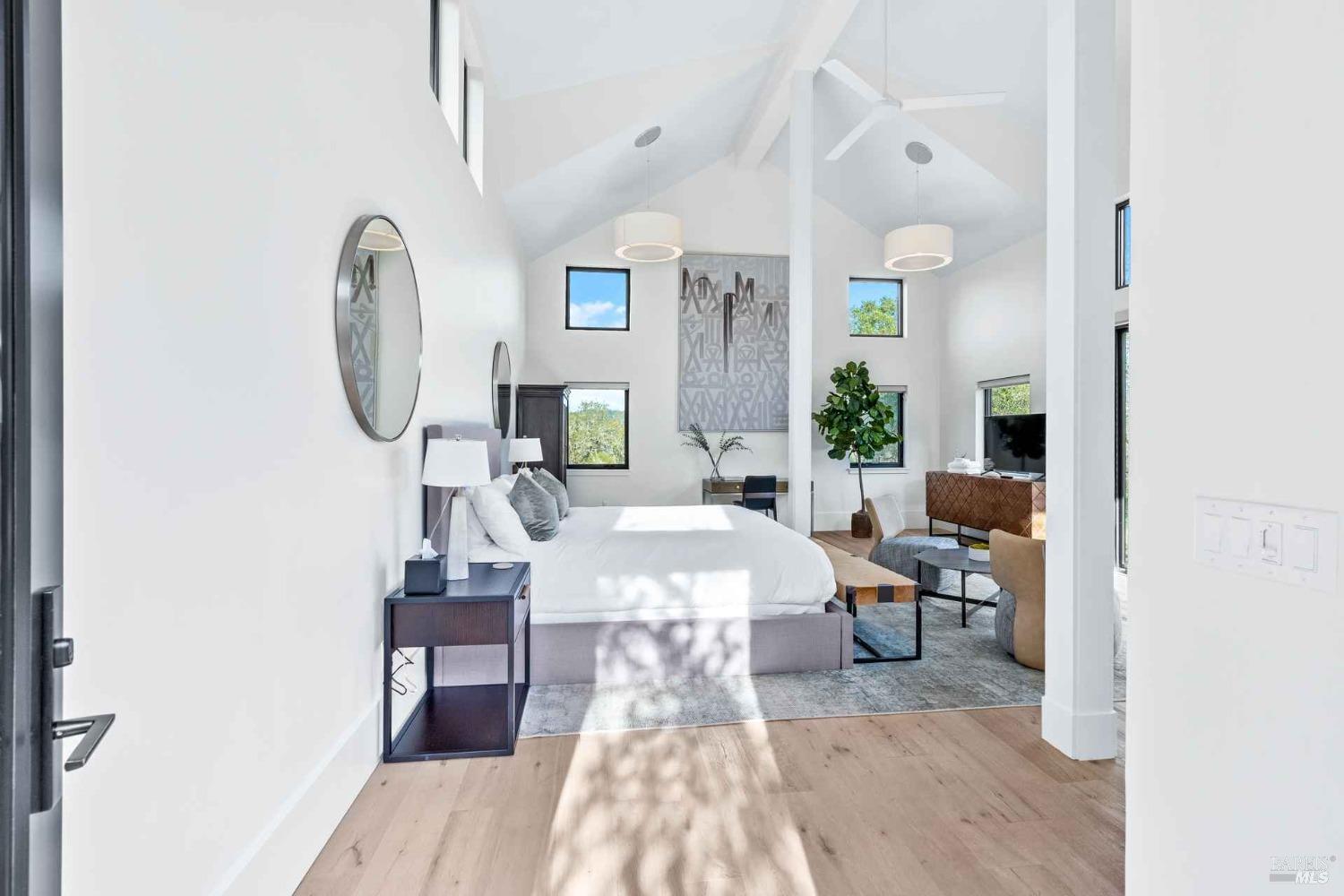 New co-ownership opportunity by Pacaso: Own one-eighth of Olive Grove, a professionally managed, turnkey home. Tucked into the rolling hills of Healdsburg, this private retreat offers the ultimate wine country escape. Set on over three acres with heritage olive trees and a private orchard, this design-forward estate is just minutes from Sonoma's world-renowned wineries. A winding drive leads to the modern single-story home, where vaulted wood-plank ceilings, an oversized fireplace, and walls of glass showcase breathtaking valley views. Indoor-outdoor living is effortless, with expansive decks, an outdoor kitchen, and a newly added pool and spa. The chef's kitchen features an 11-foot island, antique zinc pendants, and premium appliances. The serene primary suite boasts a private terrace, walk-in closet, and spa-inspired bath. Two guest bedrooms, a detached guest suite, and a separate office/gym complete the compound. The home comes fully furnished and professionally decorated.