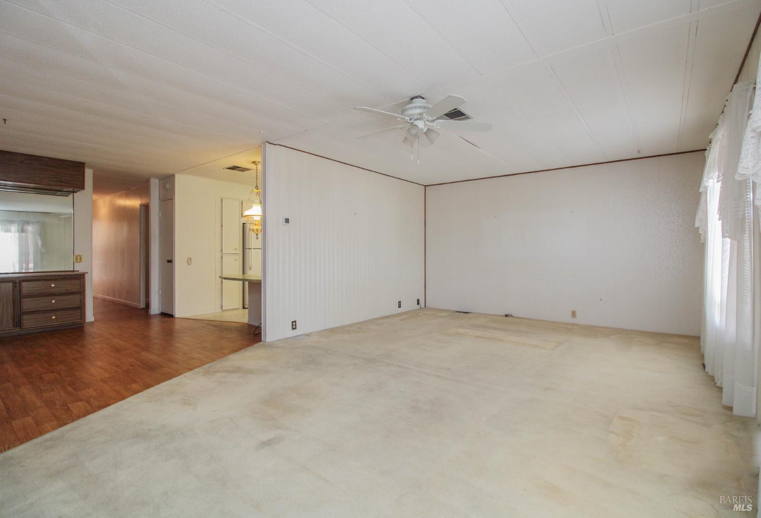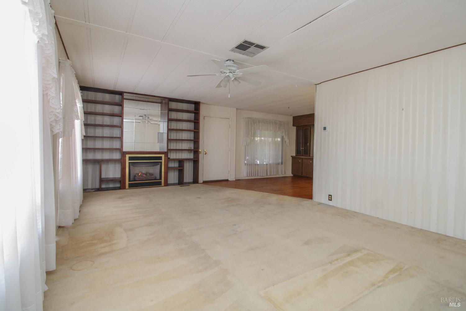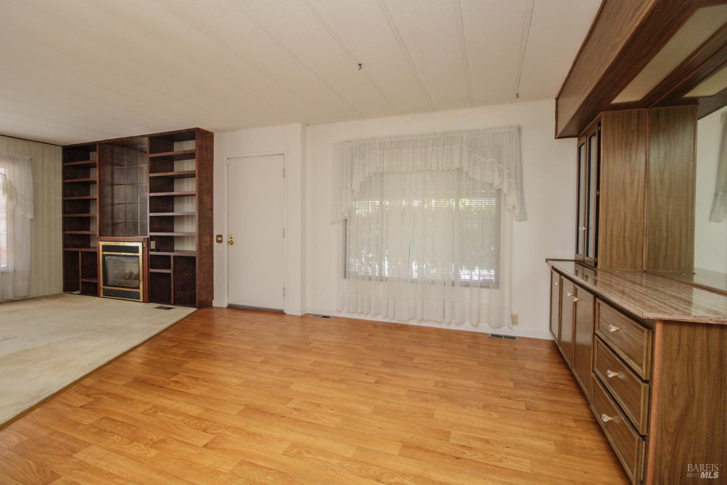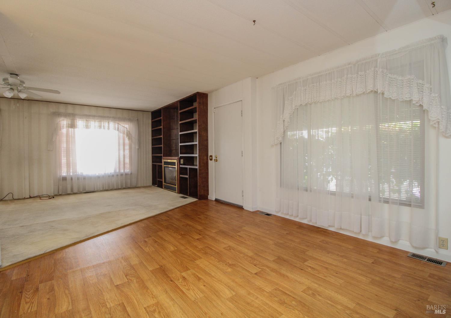 This 3 bedroom, 2 bathroom home offers great space and potential in a highly desirable family community. Built in 1974 and in original condition, this home is perfect for buyers looking to customize and add their personal touch.Features include a spacious and open living room with fireplace, abundant natural light, and built-in shelving for added character. The kitchen and living areas feel open and airy, ideal for everyday living. The home offers generously sized bedrooms, including a large primary suite with double sinks and ample closet space. Additional highlights include a spacious laundry room with sink and plenty of storage, central AC, ceiling fans, and a low-maintenance yard with an orange tree. Enjoy outdoor space with a side yard and added privacy with space between neighbors. Conveniently located next to guest parking with two-car parking available.Located in Dover Mobile Home Park, a family community near Travis Air Force Base, with easy access to the freeway and just minutes from Vacaville and surrounding areas.
