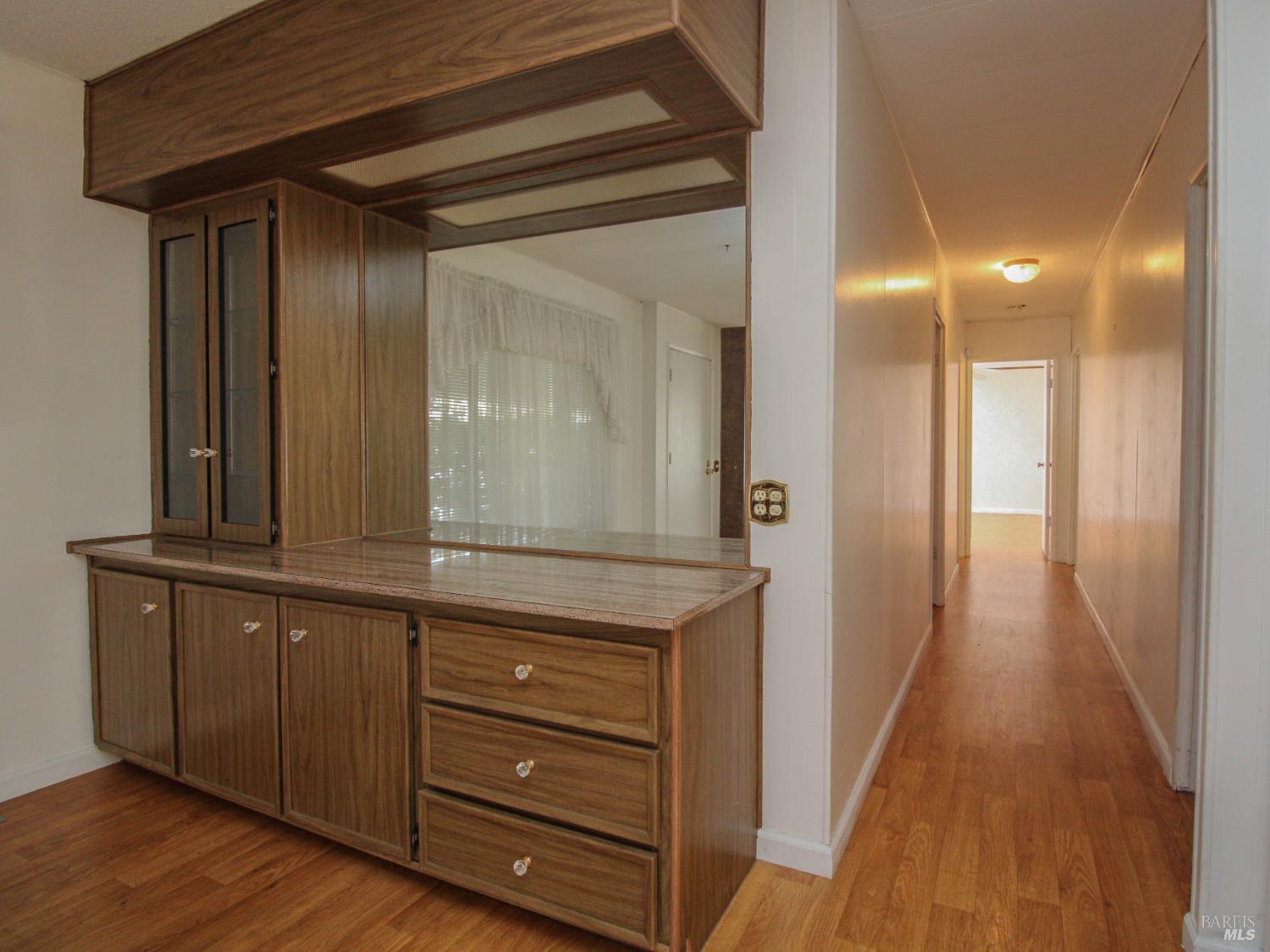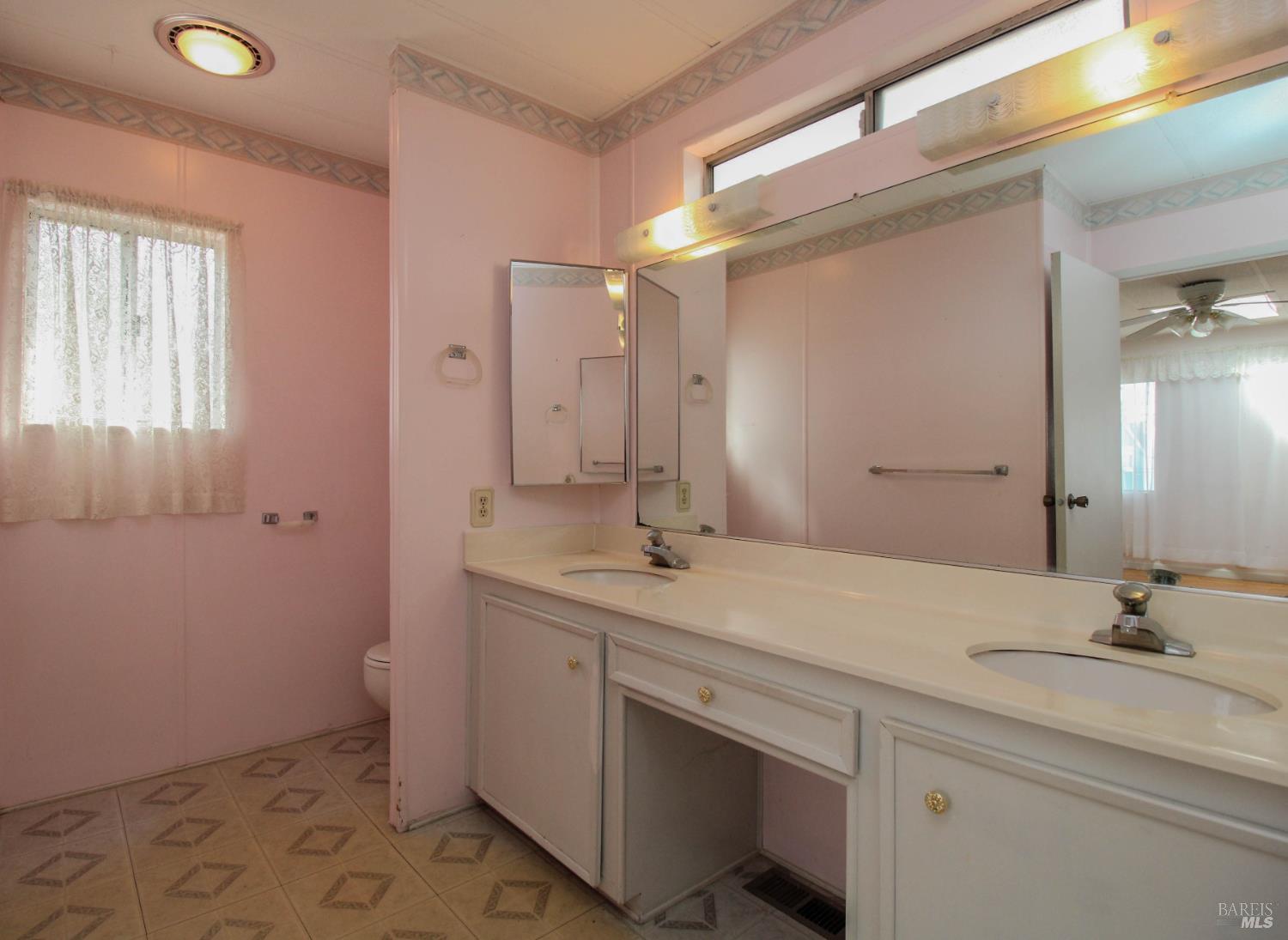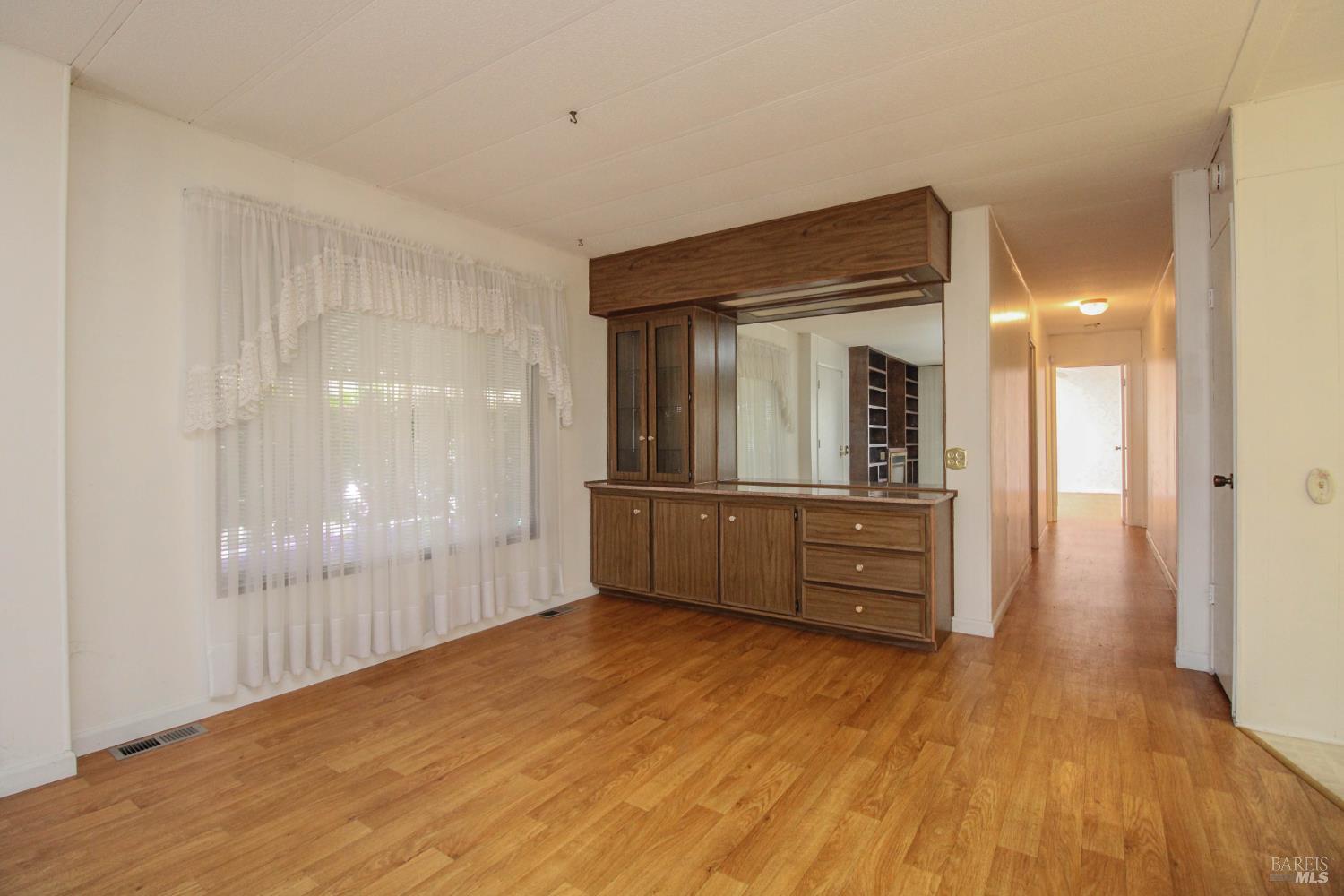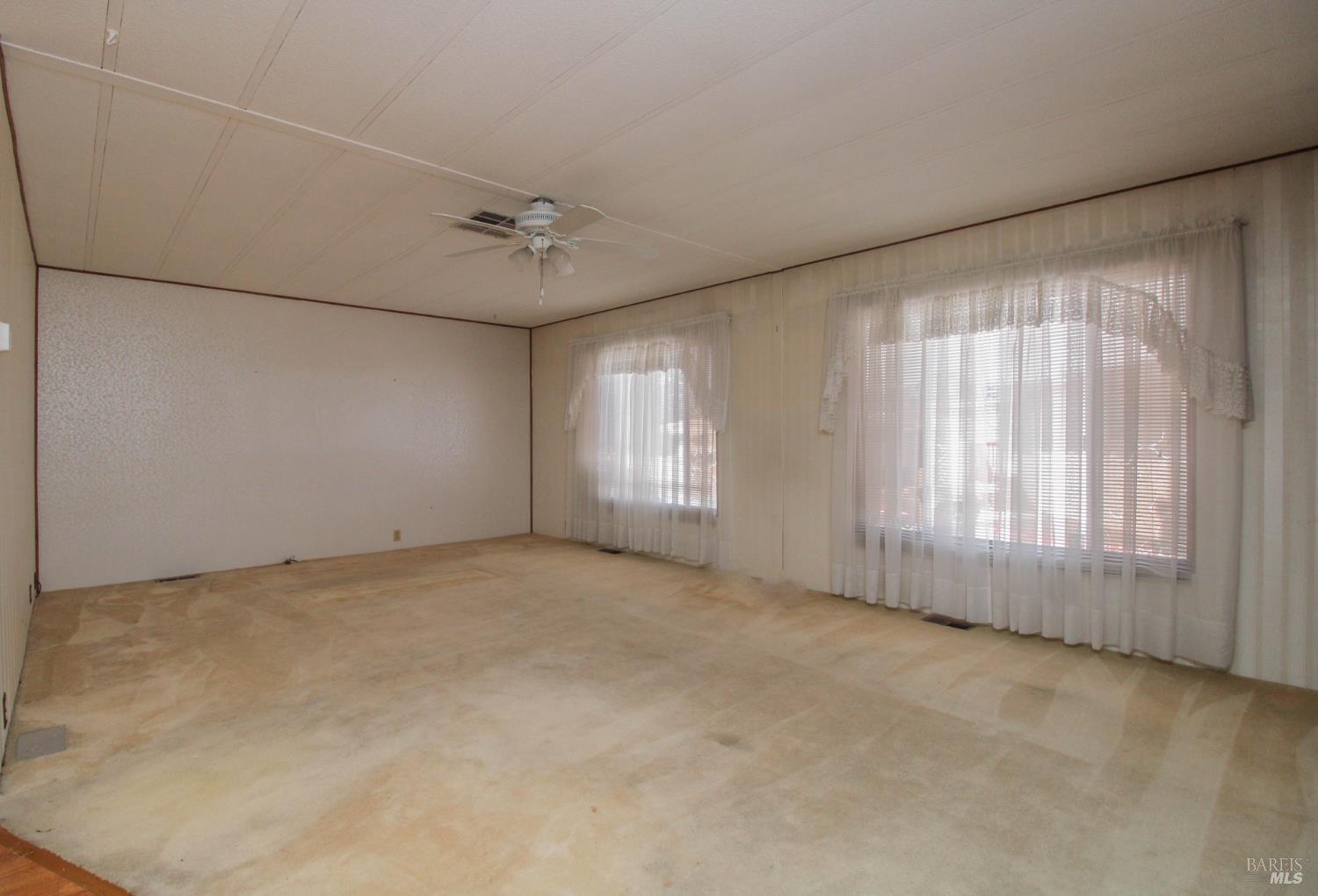 This 3 bedroom, 2 bathroom home offers great space and potential in a highly desirable family community. Built in 1974 and in original condition, this home is perfect for buyers looking to customize and add their personal touch.Features include a spacious and open living room with fireplace, abundant natural light, and built-in shelving for added character. The kitchen and living areas feel open and airy, ideal for everyday living. The home offers generously sized bedrooms, including a large primary suite with double sinks and ample closet space. Additional highlights include a spacious laundry room with sink and plenty of storage, central AC, ceiling fans, and a low-maintenance yard with an orange tree. Enjoy outdoor space with a side yard and added privacy with space between neighbors. Conveniently located next to guest parking with two-car parking available.Located in Dover Mobile Home Park, a family community near Travis Air Force Base, with easy access to the freeway and just minutes from Vacaville and surrounding areas.