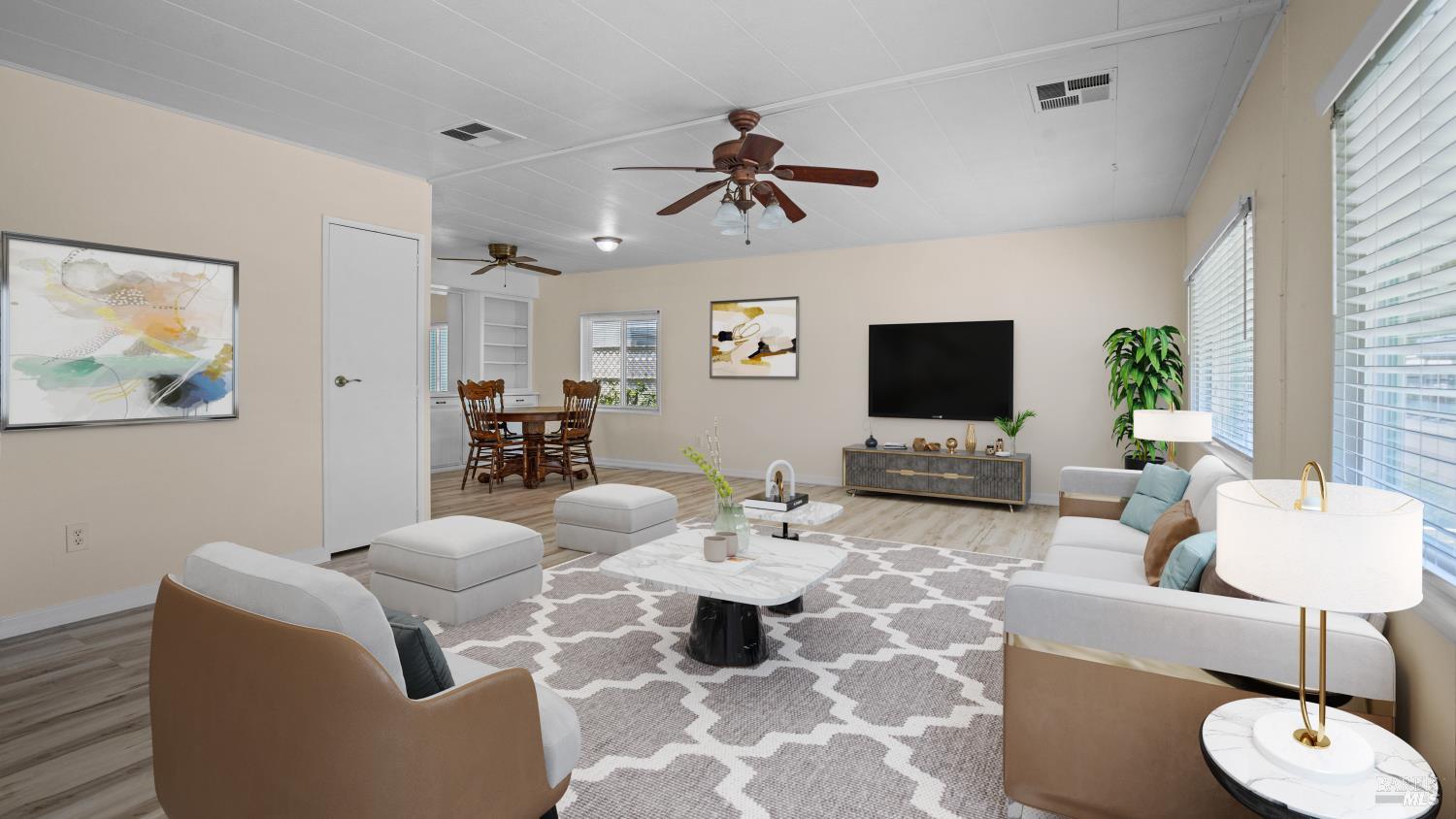 Welcome to this beautifully updated 2 bed 2 bath home with approximately 1,440 sqft, ideally situated on an exceptionally large corner lot in Newell's Mobile City a desirable, all-ages community. This well-maintained, move-in ready property features new siding, newer flooring, interior paint, new appliances, and low-maintenance landscaping with updated fencing for added privacy. The layout is both functional and inviting. The kitchen opens to a casual dining area, which leads to a bright sunroom perfect as a home office, reading nook, or relaxing retreat. You'll also find a formal dining room that flows into a spacious, light-filled living room ideal for entertaining or everyday comfort. The primary suite offers a walk-in closet and private en-suite bathroom. A generously sized second bedroom and a dedicated laundry room with washer and dryer add to the home's convenience and comfort. Outside, enjoy the redwood deck, a storage shed for extra space, and a rare 3-car tandem carport. Access to community amenities including a pool and park. Opportunities like this are rare, don't miss your chance to own one of the best lots in the community!