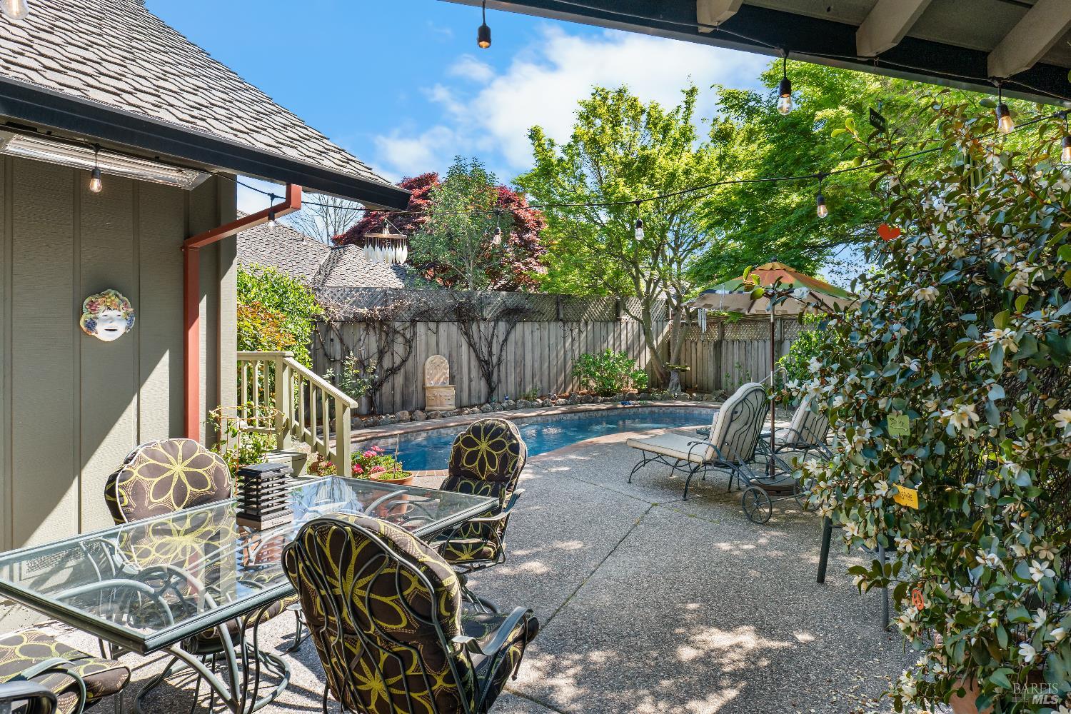 Welcome to 335 Davila Court, located in the immaculate East Side Estates neighborhood (Ledson high quality built), just blocks from the Historic Downtown Sonoma Square. This incredibly clean, move-in-ready, three-bedroom, 2.5-bathroom, 2,214 sq. ft. single-level home sprawls over a 9,750 sq. ft. lot that has been loved, cared for, and perfectly maintained. The chef's kitchen opens to the naturally lit, vaulted family room, where you can step out to your very private, landscaped backyard pool area surrounded by low maintenance aggregate concrete hardscaping. This home also offers a formal dining room, a kitchen nook, and a formal living room, not forgetting the balcony deck from the primary bedroom to the backyard. The primary bedroom features an incredibly updated bathroom as well. The home recently had a new 50 year roof installed, complete with solar! The mature trees throughout the property offer a sanctuary feel. Video https://youtu.be/abI4l1tAdkQ