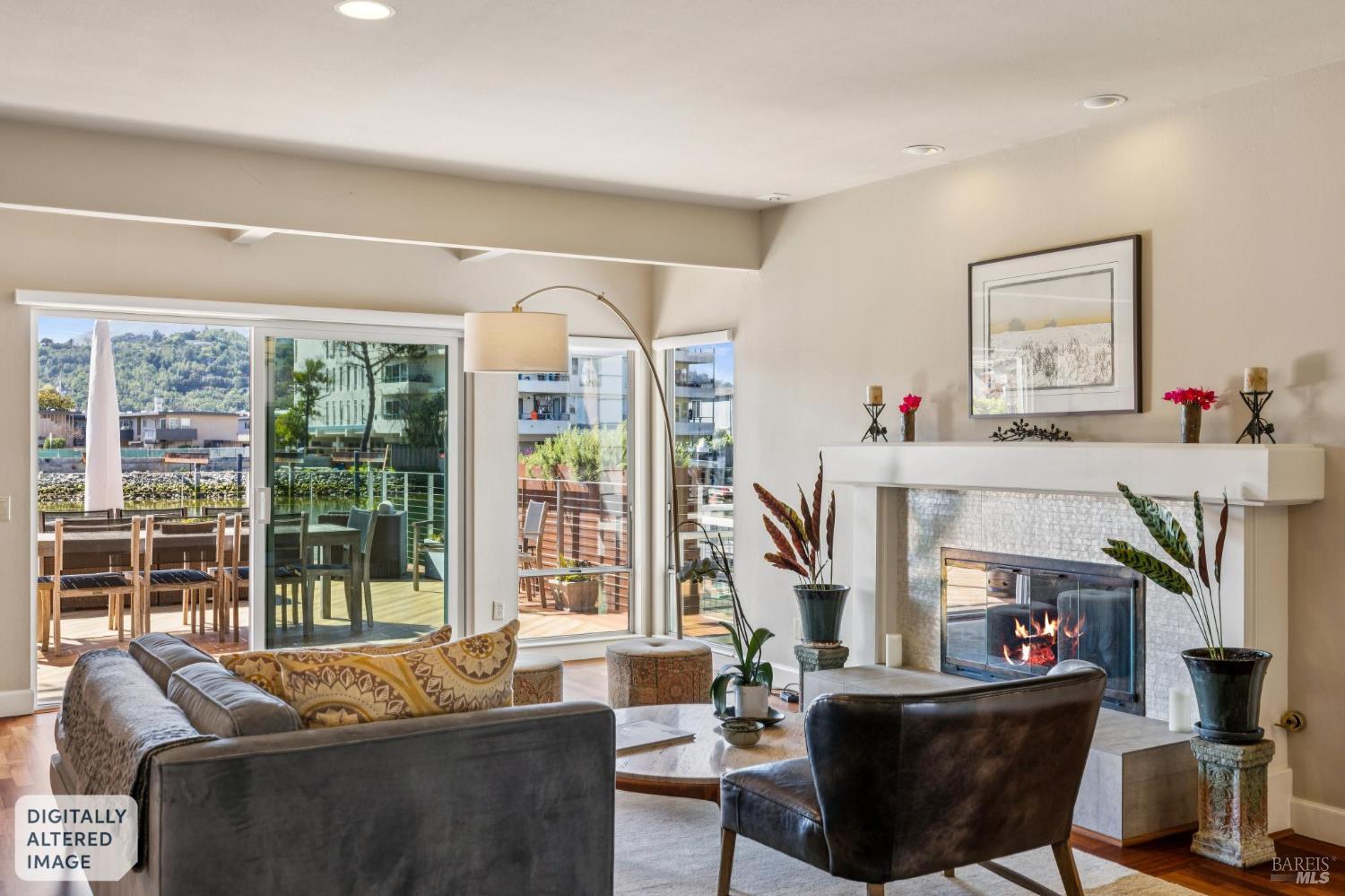 Discover a rare canal-side retreat where modern California living meets timeless design. This beautifully updated three-bedroom, two-and-a-half-bath home combines comfort, serenity, and a coveted waterfront lifestyle, sharing its setting with only one other unit. Enjoy effortless living and entertaining in the fully remodeled chef's kitchen featuring sleek cabinetry, a gas range, handcrafted Heath tiles, Caesarstone countertops, and a travertine backsplash. The open-concept layout flows into a gracious dining and living area overlooking the deck and tranquil water views. Parquet floors and a gas fireplace add warmth and charm, while a separate, private-entrance den opens through French doors to the front garden, perfect for a third bedroom, home office or reading retreat. The expansive primary suite offers breathtaking Mt. Tam views, a second fireplace, seating area, ensuite bath, and a private balcony spanning the full length of the home. A charming guest bedroom overlooks the landscaped front garden. Wood flooring, handsome built-ins, updated lighting, and Section One clearance make this home move-in ready. Enter through a gated front courtyard oasis ideal for morning coffee or afternoon conversation, then transition out back to a newly built waterside deck designed for al fresco dining or sunset relaxation. Watch kayakers glide by and enjoy glimpses of otters, seals, herons, and owls. Boating enthusiasts will appreciate the fully refurbished private dock with a 32'x15' boat slip and a 50' side tie are features offering direct water access right from your backyard. Shared amenities include a private carriage house above the two-car garage ideal for guests or creative pursuits, a brand-new roof, and beautifully landscaped gardens with irrigation and a water fountain. Perfect as a peaceful year-round home or a stylish waterfront escape, this unique property embodies indoor-outdoor California living at its finest. An extraordinary opportunity awaits: the neighboring residence at 26 Mooring Road,the only other home in this intimate two-unit complex is also available. Own both to create a stunning waterfront compound, guest residence, or multi-generational retreat, or combine them into one expansive home. Conveniently located near Montecito Shopping Center, trails, and the natural beauty of West Marin, with easy access to downtown San Rafael, Highway 101, San Francisco, SFO, Wine Country, the SMART Train, and ferry service for effortless commuting.