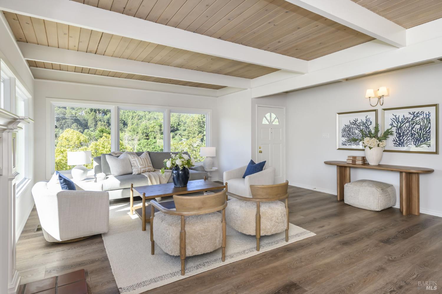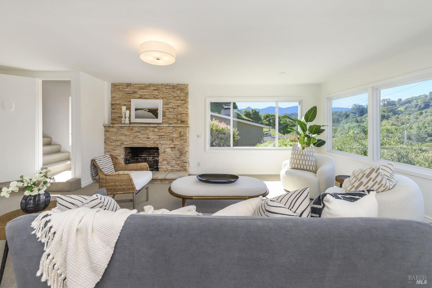 Offered for the first time in 68 years, this cherished family home is filled with warmth, history, and unforgettable Mt. Tam views and close to town. Loved for generations, it's a place where memories were made and where new ones are ready to begin. Featuring a 2024 foam roof, new main electrical panels, updated drainage, and fresh landscaping, new carpet, LVP floor the home blends thoughtful improvements with timeless character. Enter inside to a bright living room filled with natural light, featuring open beam ceilings, a welcoming fireplace, and picture windows that frame the beauty of Mt. Tam. The space flows seamlessly into the dining area, opening to a lush patio ideal for indoor-outdoor living, gatherings with loved ones, and dining under the stars. The kitchen features quartz countertops and connects easily to the heart of the home. The bedroom wing includes a peaceful primary suite, two additional bedrooms, and an 2 updated bathrooms. Downstairs, a spacious family room with a second fireplace offers the perfect setting for cozy nights, a game room, or even a future bar area, along with an office or den for flexible living. The backyard is serene with level lawn, beautiful brickwork and large patio, and a basketball hoop ready for years of play and competition. Just moments from downtown Fairfax, known for its vibrant spirit, local favorites, and access to incredible trails, this special home set at the end of a quiet cul-de-sacis not to be missed.