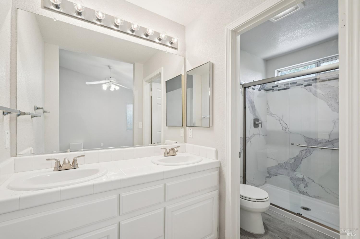Welcome to this beautifully maintained single-story home nestled in a desirable Dixon neighborhood! Offering 3 bedrooms, 2 bathrooms, and an attached 3-car garage, this home combines comfort, functionality, and thoughtful updates throughout. Step inside to a bright and inviting layout filled with natural light, enhanced by plantation shutters and a seamless flow between living spaces perfect for both everyday living and entertaining. The remodeled kitchen features elegant Kovastone quartz countertops, added pantry cabinetry for extra storage, and opens to a cozy dining and living area where friends and family can easily gather. The spacious primary suite offers a peaceful retreat with a recently remodeled bathroom, while the guest bathroom has been tastefully refreshed with modern finishes. Additional upgrades throughout the home including updated flooring, a newer HVAC system and water heater, and a maintained water filtration system provide comfort and peace of mind. Enjoy the ease of indoor-outdoor living with a private backyard ideal for relaxing evenings, weekend barbecues, or creating your own garden space. Added features such as rain gutters, security screen doors, and included washer and dryer enhance both convenience and functionality. The home is also alarm system ready. Located near local schools, parks, shopping, and with easy freeway access, this move-in ready home offers the perfect blend of charm, updates, and everyday livability.