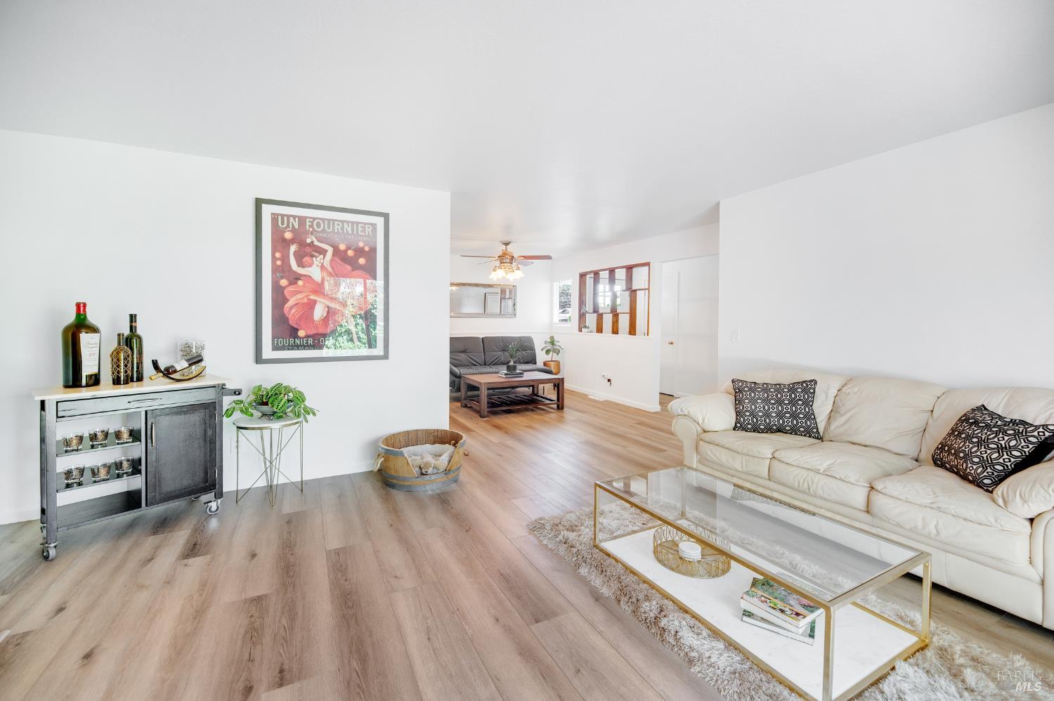 Welcome to this beautifully updated single-story home in Rohnert Park's highly sought-after historic B Section. Offering four spacious bedrooms and two remodeled bathrooms, this home blends comfort, style, and functionality. Step inside to find fresh interior paint, brand-new carpet, and luxury vinyl plank flooring that flows seamlessly throughout, creating a clean and modern feel. The thoughtfully updated bathrooms add a touch of elegance, making this home truly move-in ready. Outside, you'll appreciate the new fencing along the east side, complete with solar lighting for added ambiance and security. The private backyard is a standout feature, offering a peaceful retreat with no two-story homes behind perfect for relaxing or entertaining. The expansive yard provides plenty of space for gardening, play, or future possibilities: pool? ADU? Additional highlights include convenient RV parking with a pedestrian gate built into the RV gate, making access easy and practical. This is a rare opportunity to own a spacious, updated home in one of Rohnert Park's most established neighborhoods close to parks, schools, and everyday amenities.