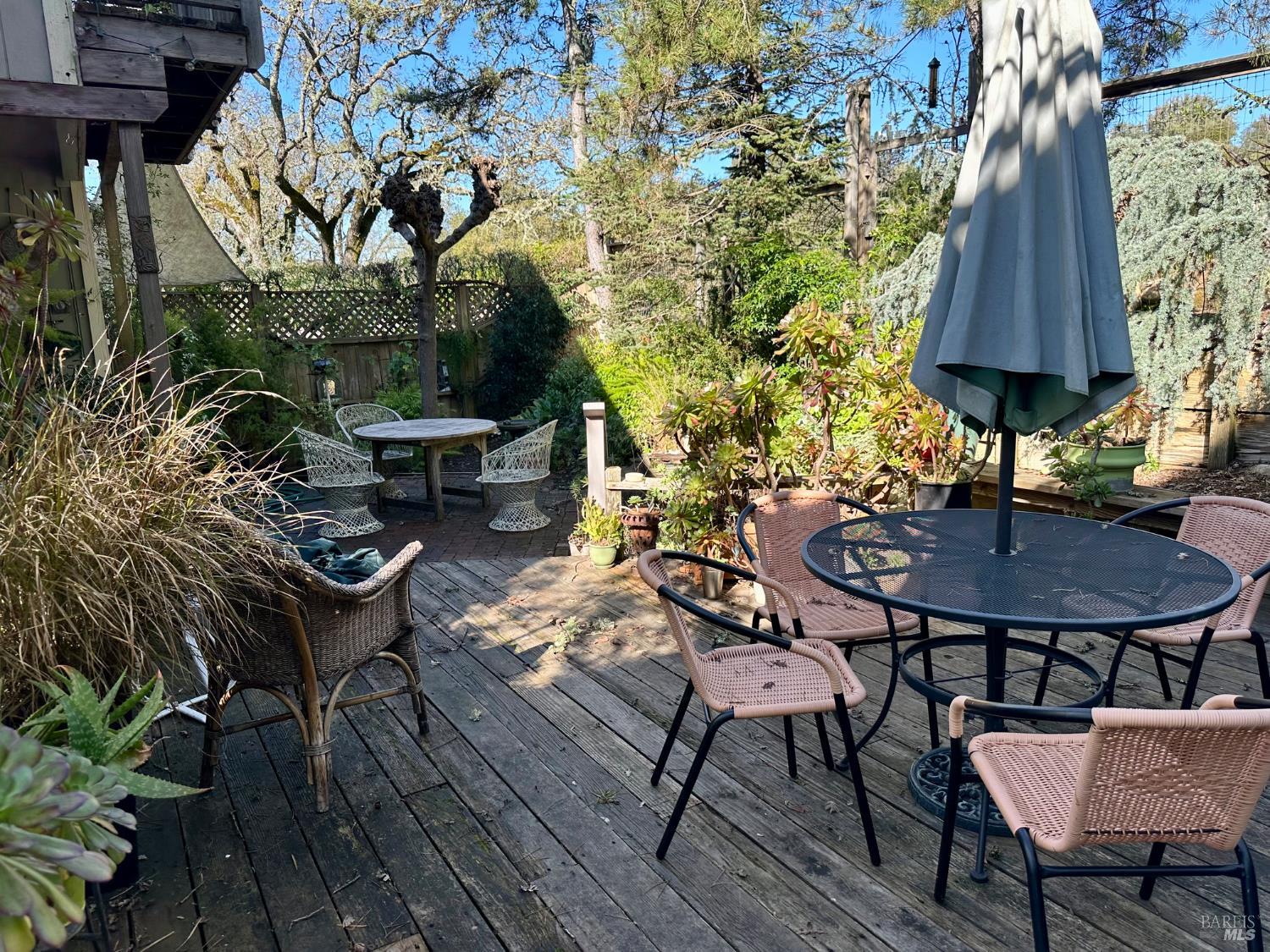 Enjoy your morning coffee in a Zen state, watching the deer on the hill behind thru the serenity of the garden. This home features hardwood floors, expanded sq. footage, an upstairs balcony, a walk in pantry, French doors lead to a lovely garden over looking hillside acreage. Privacy abounds. Bring your ideas to update this galley kitchen, add more windows to expand the private views. Fitch Mtn. Villas have long been a favorite of the Healdsburg lifestyle. Community pool and tennis and pickle ball courts.
