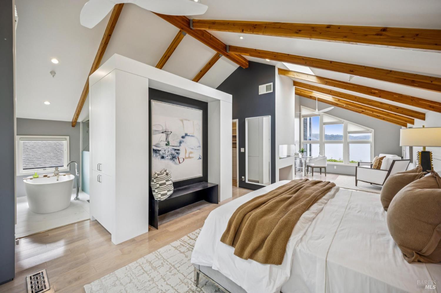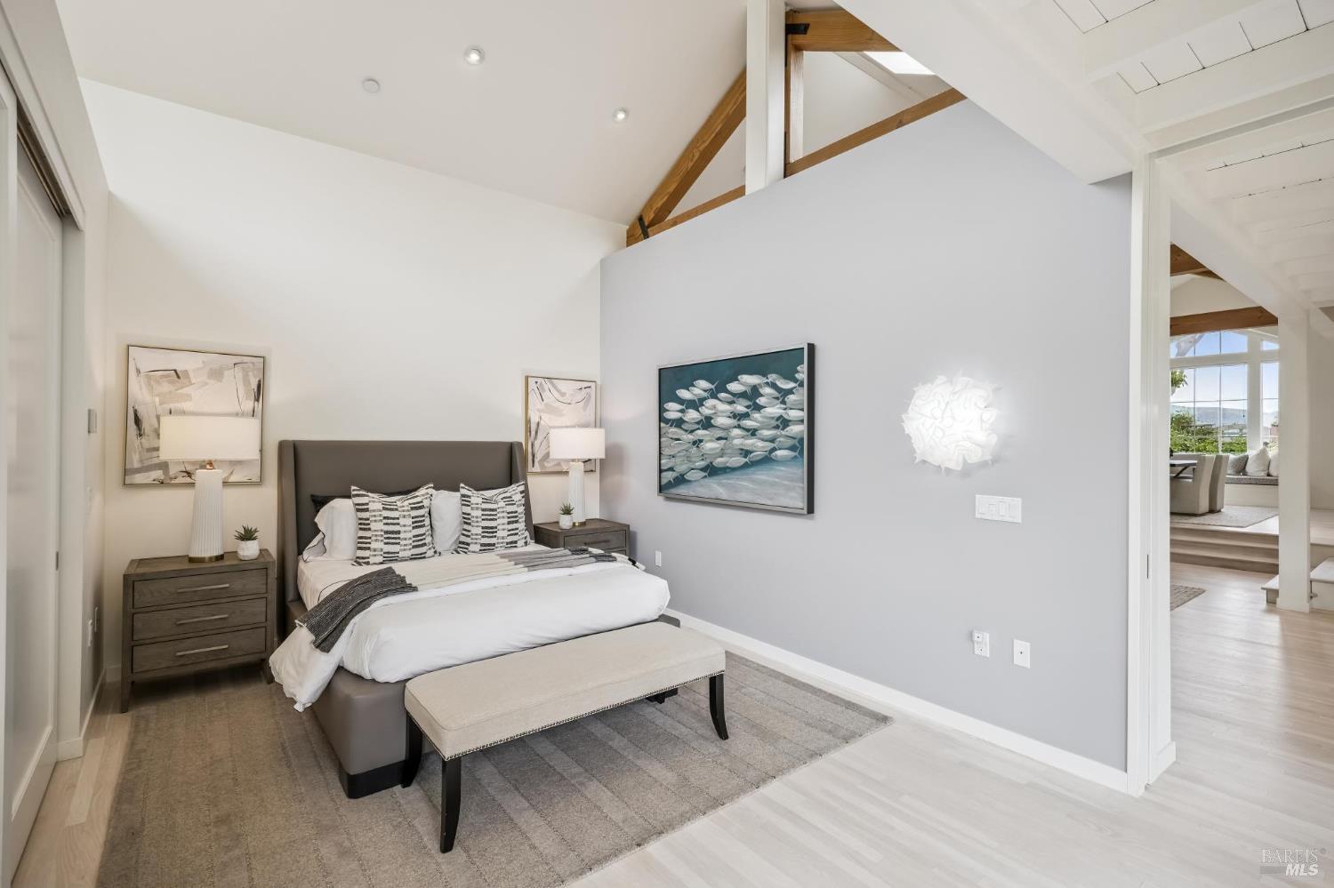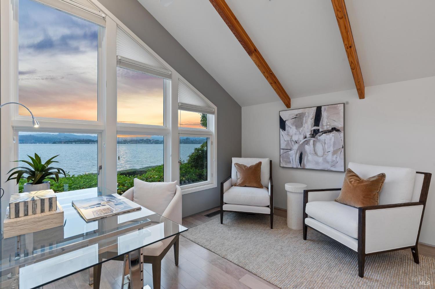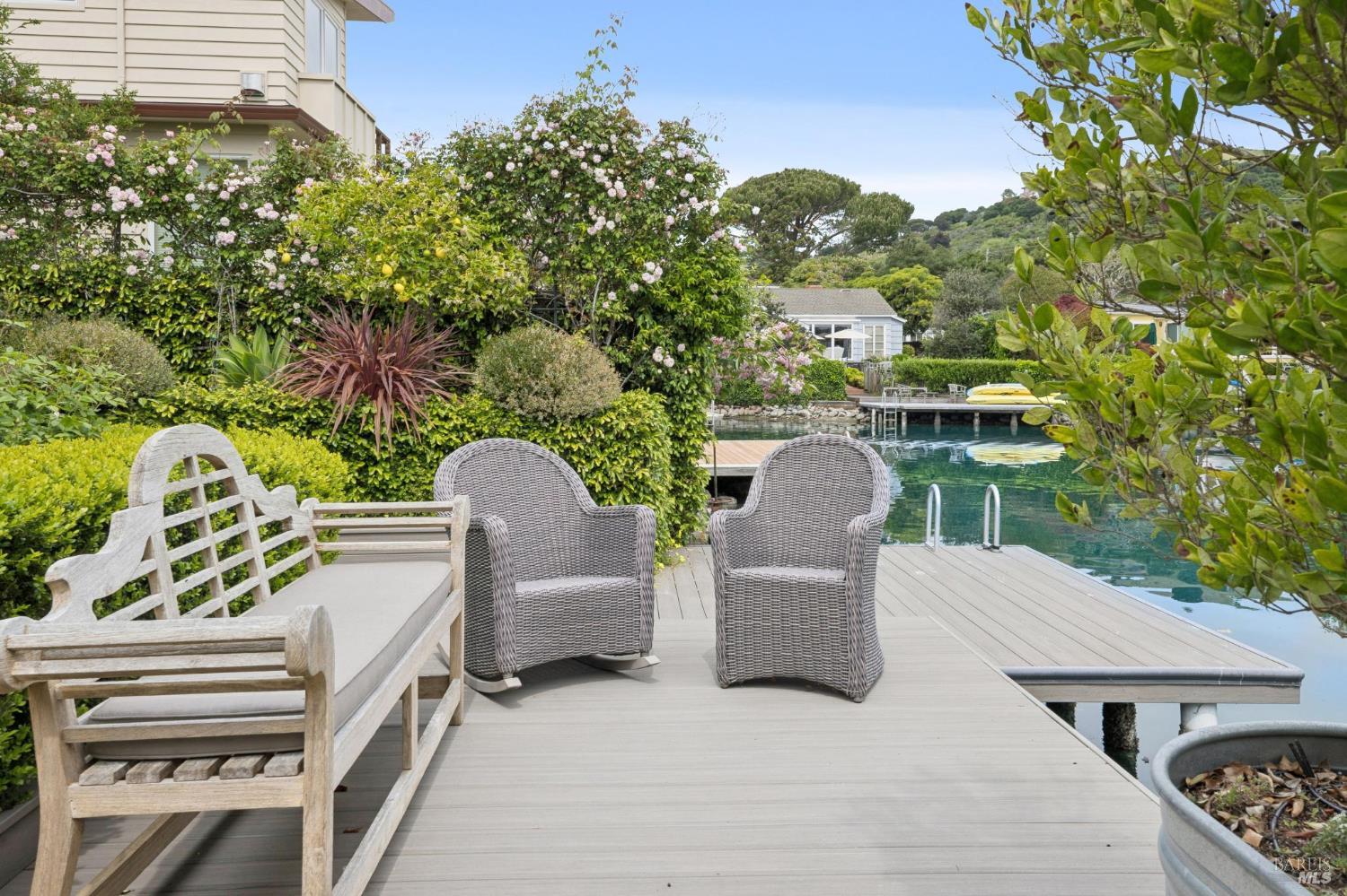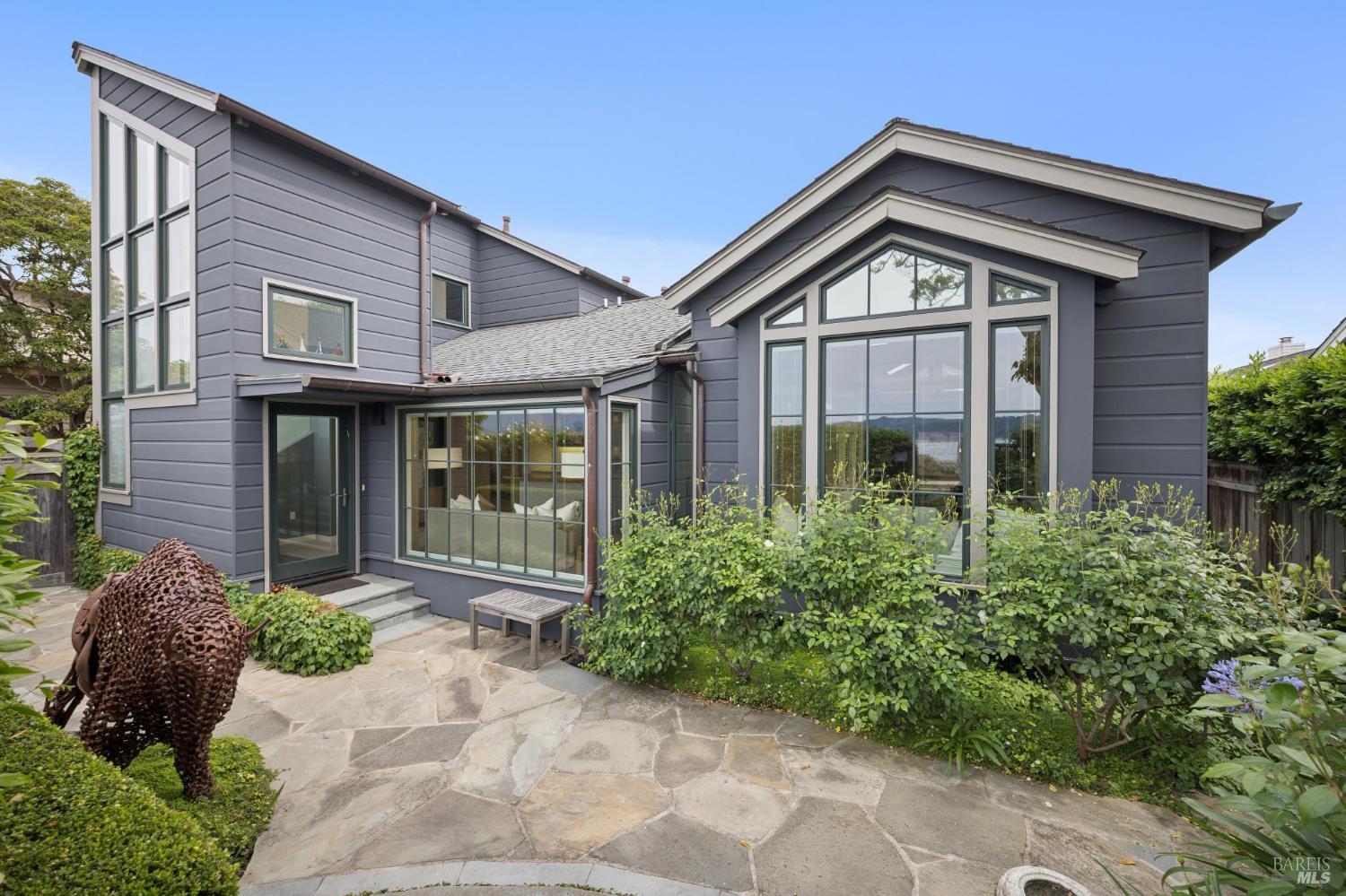 This stunning waterfront home nestles on the natural land bridge between Richardson Bay and the Belvedere Lagoon with views of both bodies of water. The architecturally striking house features walls of windows, fine finishes, and many bespoke details throughout. The inviting living and dining rooms, bright and airy kitchen with high end appliances and breakfast area, two bedrooms, laundry and craft room, and garage are all on the main level, while the serene primary suite inhabits the entire second floor. The house wraps around a lushly landscaped terrace and waterside dock, offering the unparalleled Belvedere Lagoon lifestyle, with water sports directly from the property's dock, and a flat walk to Tiburon's charming village shops, restaurants, yacht clubs, parks, hiking and biking trails, award-winning schools, and frequent ferries to San Francisco.