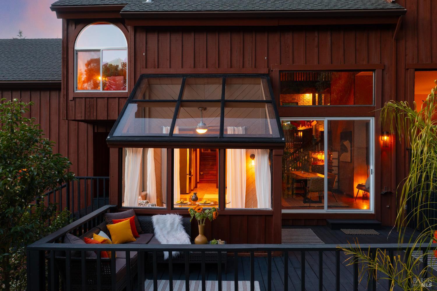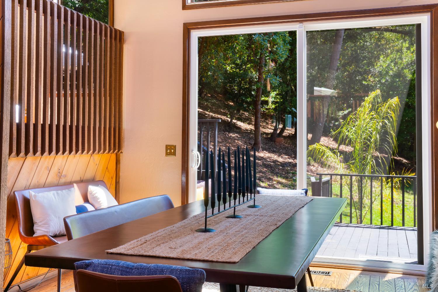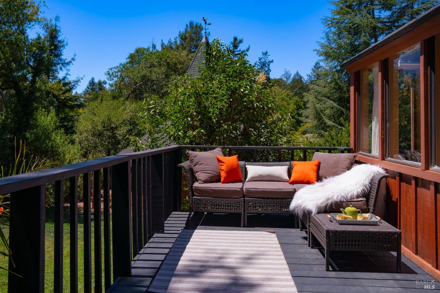 A rare opportunity to enjoy complete privacy in the highly coveted Montecito Heights, just a half-mile from vibrant shops and dining. This mid-century modern masterpiece is meticulously maintained and boasts soaring ceilings with skylights, atrium, sunroom, gorgeous hardwood floors, and new custom light fixtures. Attached 2-car garage plus detached lofted 2-car garage, easily converted into a MIL/rental unit. Perfect too as a music, art or yoga studio. With 5 bedrooms (two with lofts), 3.5 bathrooms, and large custom office with closet, this special residence boasts unparalleled aesthetics, luxury, comfort & versatility. The private primary en-suite bedroom showcases a vaulted ceiling, jetted tub, balcony, custom closet & picturesque windows framing nature, while two living rooms beckon w/ fireplaces, & seamlessly extend to sprawling wrap around deck & yard. This magical property features a new seasonal creek with river rocks. Relax and enjoy wildlife. Abundance of room for your pickle ball court, dream pool, hobby vineyard, garden oasis, the possibilities are endless, and no HOA! Must see to believe!
