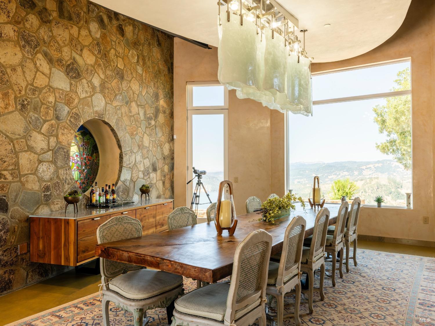 Gandona Wine Estate is located on prestigious Pritchard Hill and represents a rare opportunity to steward one of Napa Valley's most significant mountain vineyard estates. Sited up the very private middle driveway of Pritchard Hill Gandona enjoys glorious, elevated views over Lake Hennessey. The over 100-acre estate boasts +/- 18 acres of Cabernet Sauvignon and Cabernet Franc, offering scale, credibility, quality and scarcity that define the very best of Napa Valley. Existing entitlements and turn-key improvements consist of a 20,000-gallon production permit, anchored by a +/- 3,500-square-foot winery and tasting room, together with a newly expanded +/- 8,000-square-foot cave, crush pad, and infrastructure thoughtfully designed to support future expansion. The Estate provides an established ultra-luxury platform for continued production and long-term growth from one of Napa Valley's most coveted terroirs. The +/- 5,000-square-foot main residence captivate the lake views beautifully. Construction materials include large stones sourced from on site vineyard and cave development, large scale steel sturctural elements, concrete, limestone and imported Portuguese tile. There are four luxurious en-suite bedrooms. The guest house and cottage are located in the vines providing separation and privacy yet offer the same lake views. Throughout the Estate, majestic oak trees, dramatic natural boulders, and sweeping views create a setting that is both striking and unmistakably Pritchard Hill/Napa Valley. An opportunity of this prestige, scale, and infrastructure rarely becomes available. Gandona, at this moment provides a rare opportunity to join Napa Valley's enduring legacy of world-class wine producers. www.napawinelegacy.com
