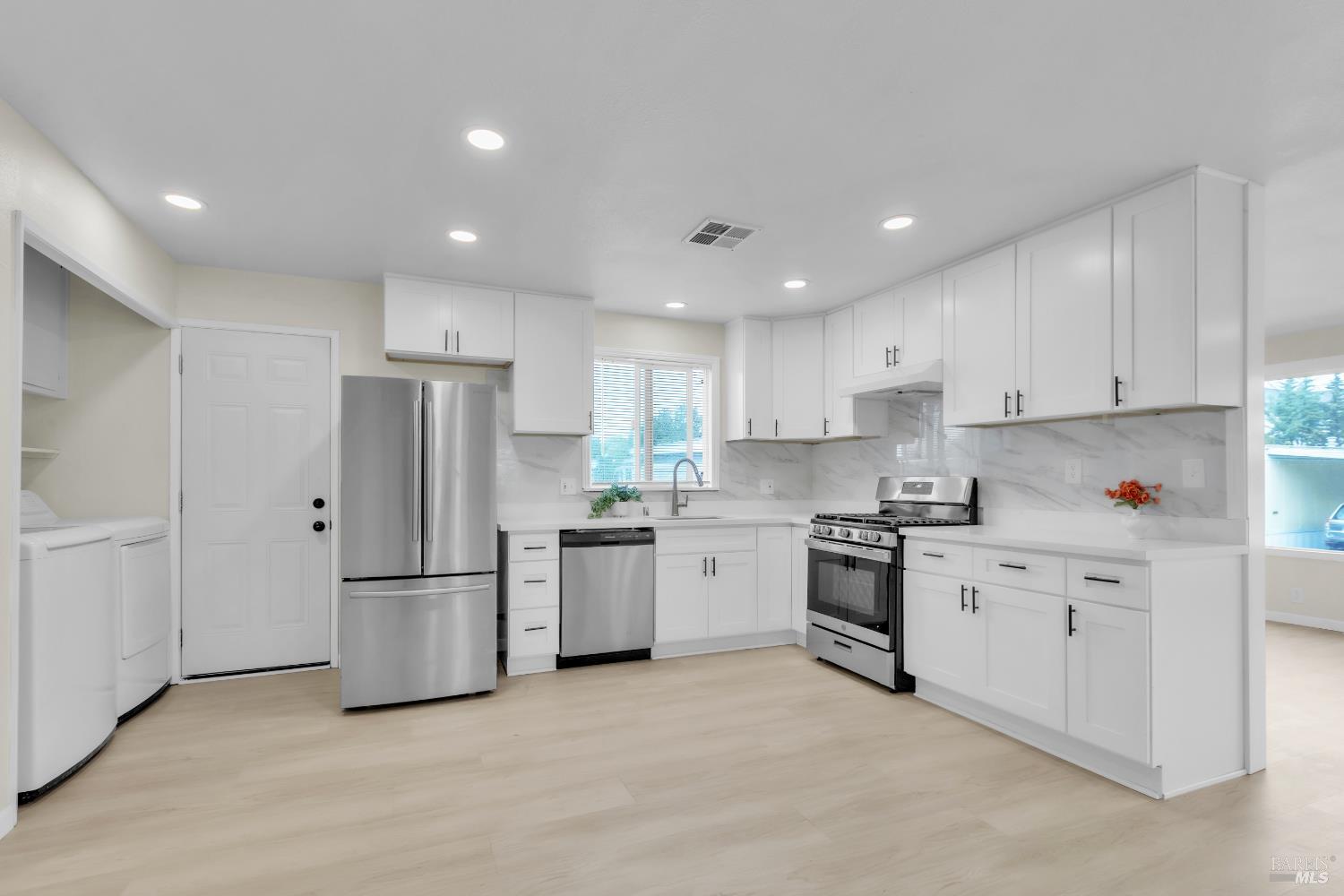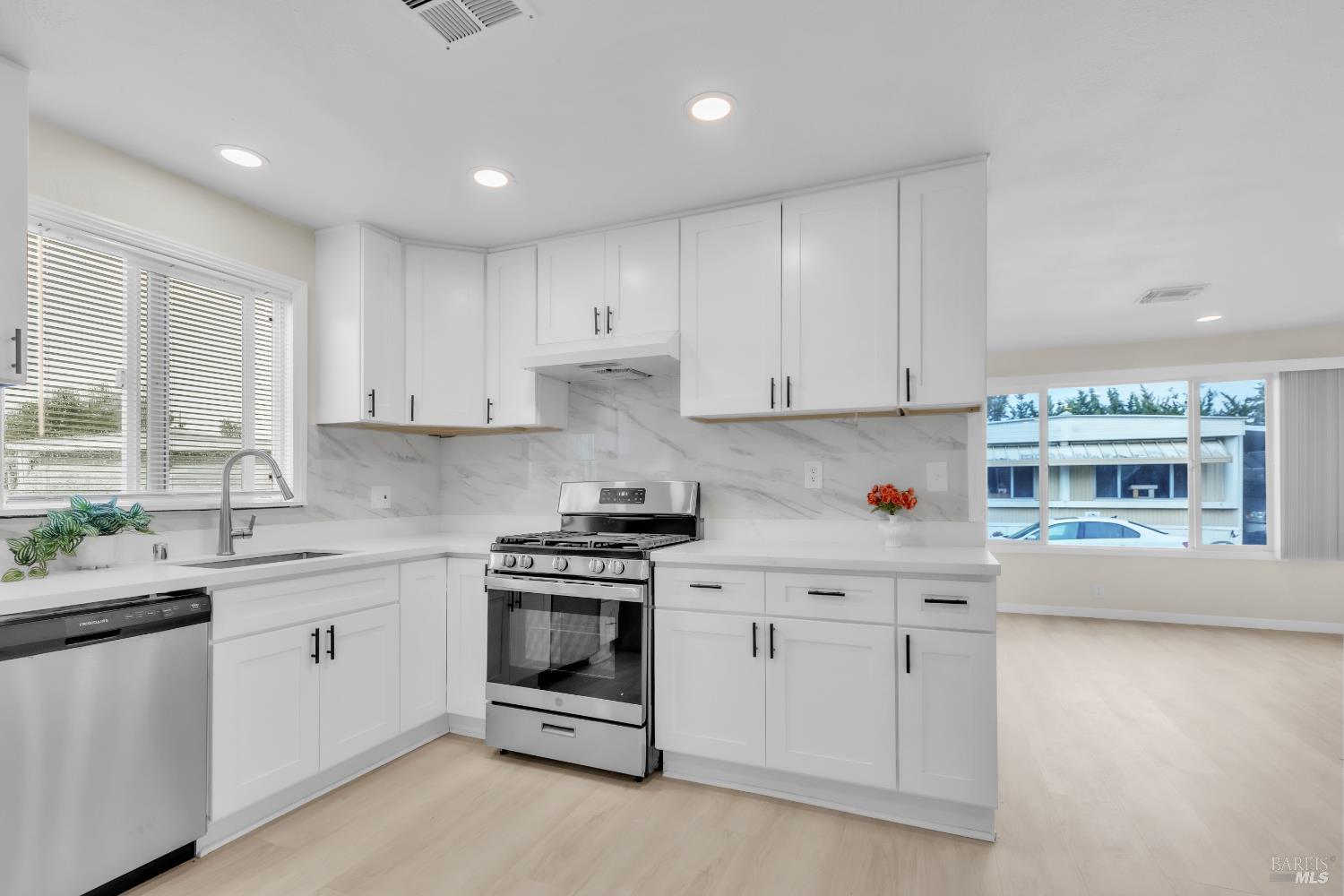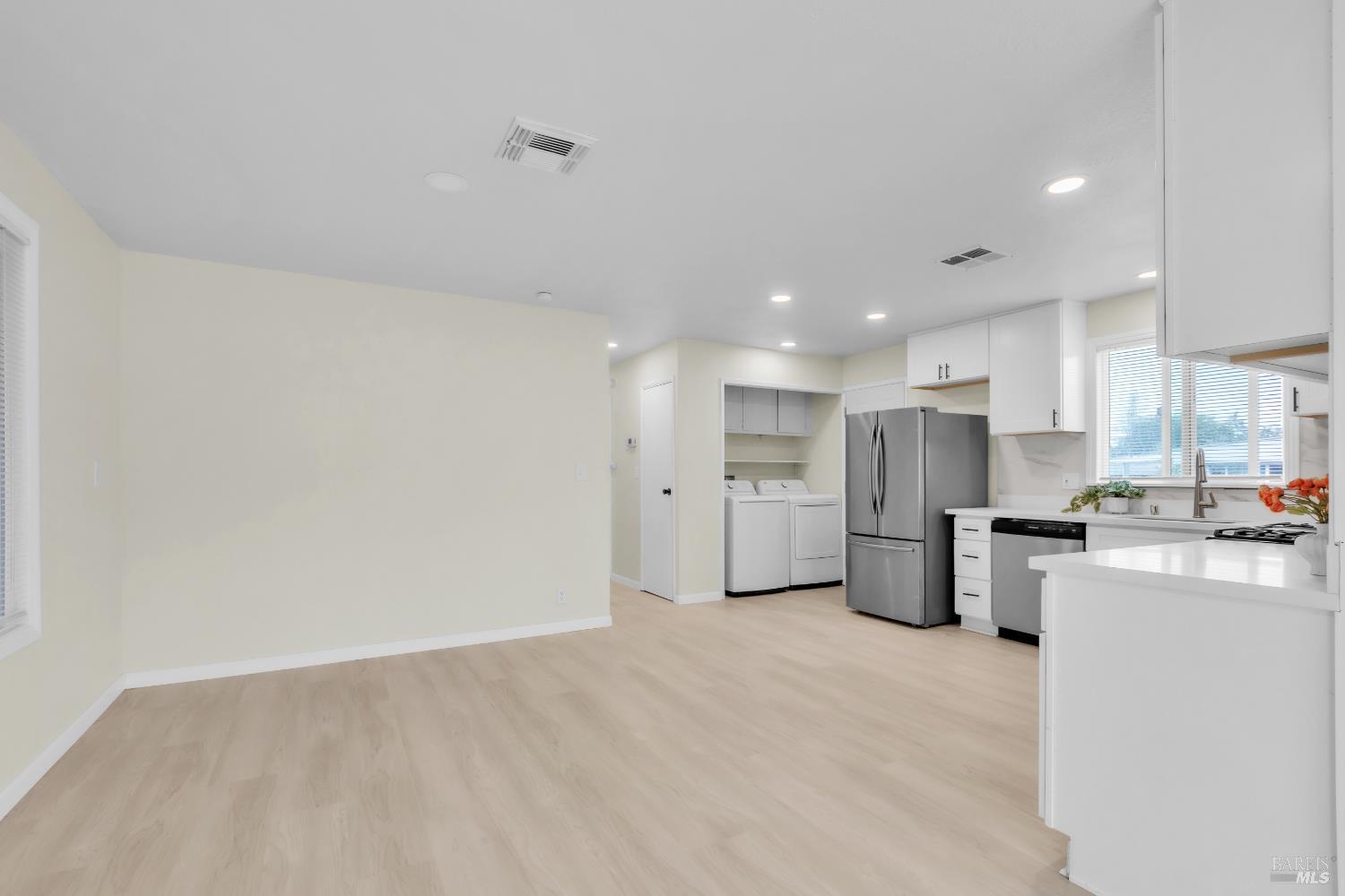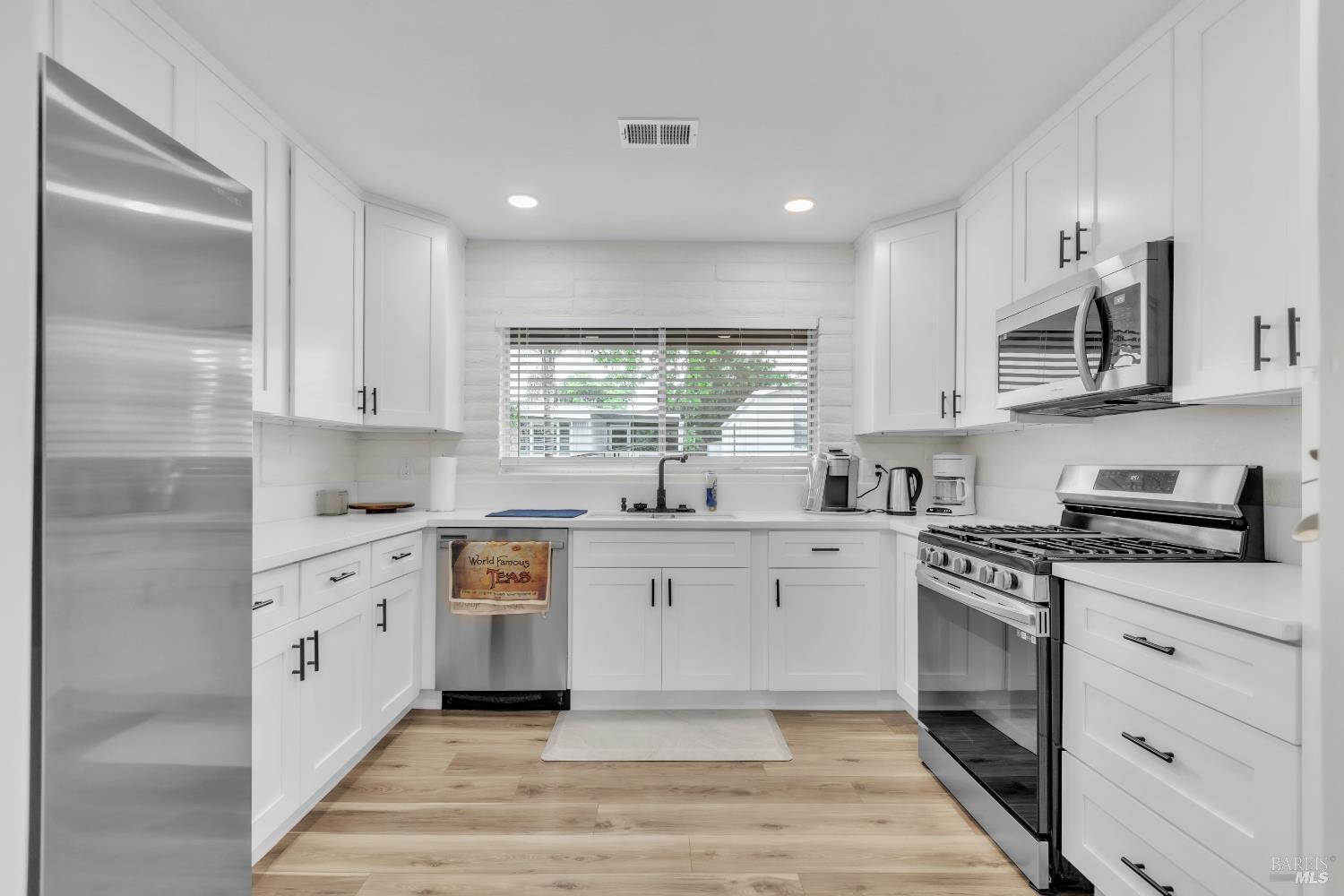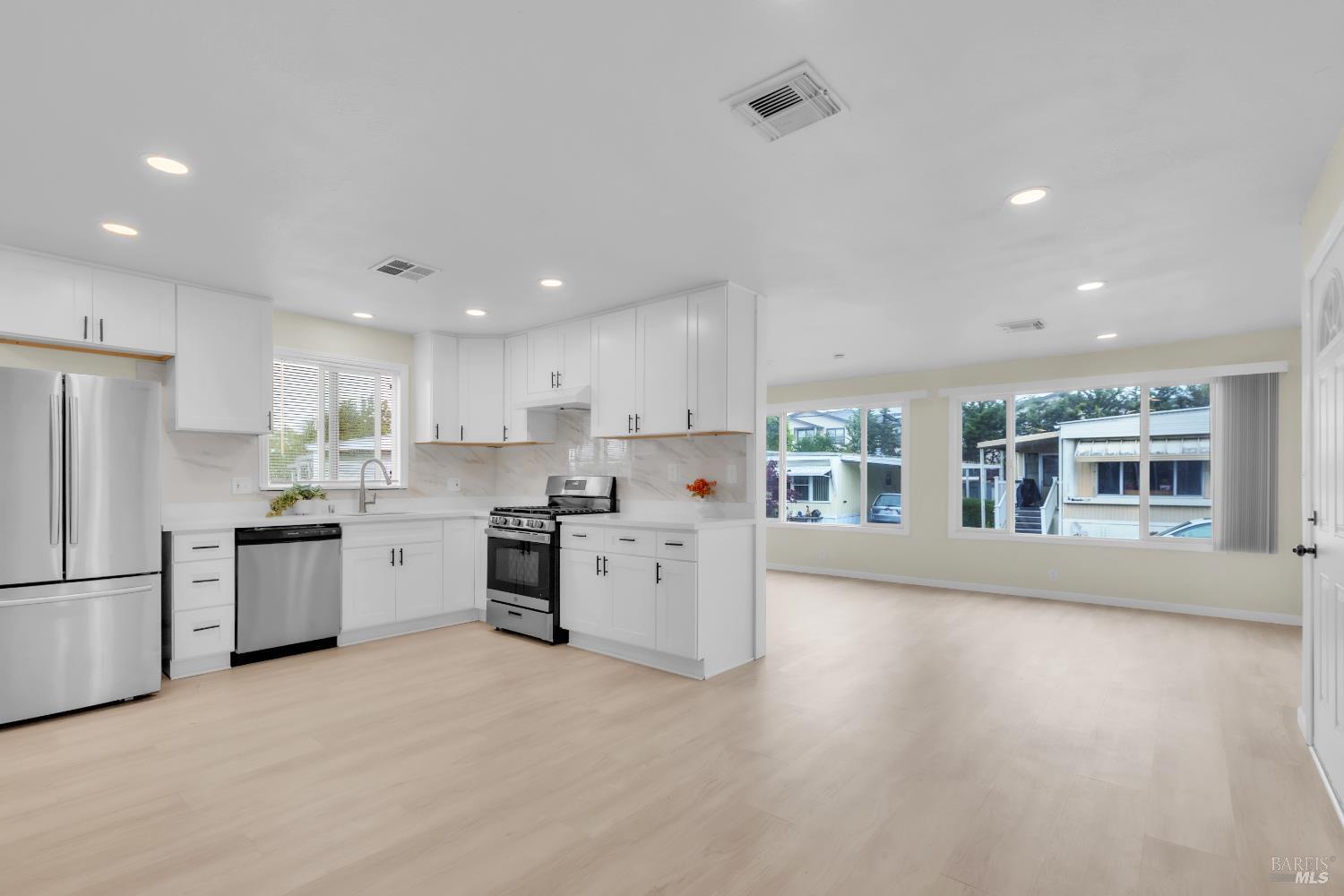 Welcome to 150 Silverado Trail #28, a beautifully remodeled home nestled in the desirable Silverado Pines Mobile Home Park, a vibrant 55+ community in the heart of Napa Valley. This light and bright remodeled home offers a fresh, modern feel with thoughtful upgrades throughout. The stunning kitchen has been completely transformed with crisp white cabinetry, sleek new countertops, soft-close drawers, and a brand new stove and dishwasher. Durable and stylish luxury vinyl plank flooring flows seamlessly throughout the home, complemented by fresh interior paint that creates a light, inviting atmosphere. With two bedrooms and two full bathrooms, the layout is both functional and comfortable. The bathrooms have been tastefully updated with new vanities, offering a clean and contemporary finish. Beyond the home itself, Silverado Pines provides a welcoming lifestyle with amenities that encourage connection and ease. Residents enjoy access to a community pool, bocce court, pet area, and more all within a friendly, well-maintained setting. Ideally located just moments from the charm and beauty of Napa Valley, you'll have convenient access to shopping, dining, and the vibrant downtown scene, while still enjoying a peaceful place to call home. If you've been looking for a move-in ready home that blends modern updates with a relaxed, community-centered lifestyle, this is one you won't want to miss.