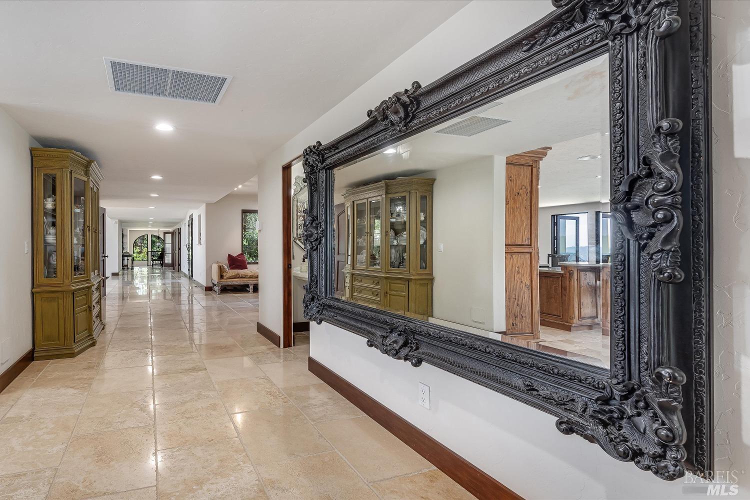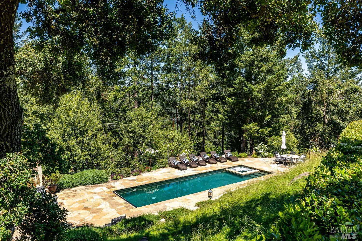 Experience luxurious Napa Valley living in this completely renovated California mission-style estate that seamlessly blends modern sophistication with classic architecture. Set on an expansive 2.5+ acres above St. Helena, this magnificent property offers panoramic views of Lake Hennessey and the mountain vineyards. Spanning approx. 5,700+ sq. ft., the estate boasts 5 bedrooms & 6 bathrooms (4 & 2), providing ample space for a family compound or a grand venue for elegant gatherings. The stunning double-height entry foyer sets the tone, revealing radiant heated floors, five fireplaces, and thoughtfully designed spaces for relaxation and entertainment, including a grand living room, cozy family room, library, office, media room, and game room. The estate's gourmet kitchen is a chef's dream, featuring top-of-the-line appliances, abundant counter space, and a seamless design that facilitates effortless hosting. Additional highlights include multiple flatscreen TVs throughout and a climate-controlled wine cellar. The resort-inspired grounds are equally impressive with various outdoor entertaining areas, a sparkling pool and spa, a cabana housing a gym, a bocce court, and a three-car pavilion that transitions into a patio - complete with an outdoor grill and fireplace terrace.