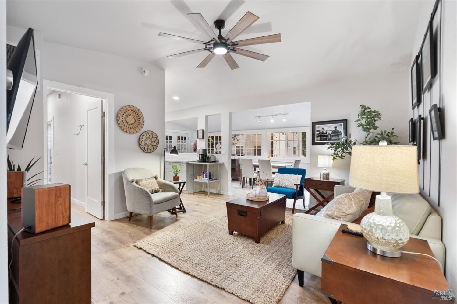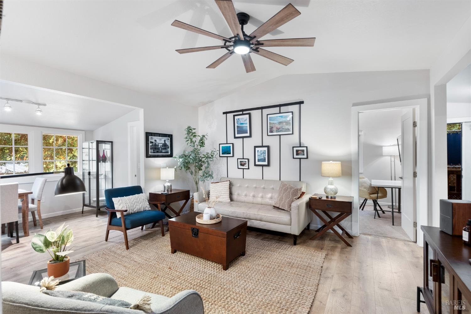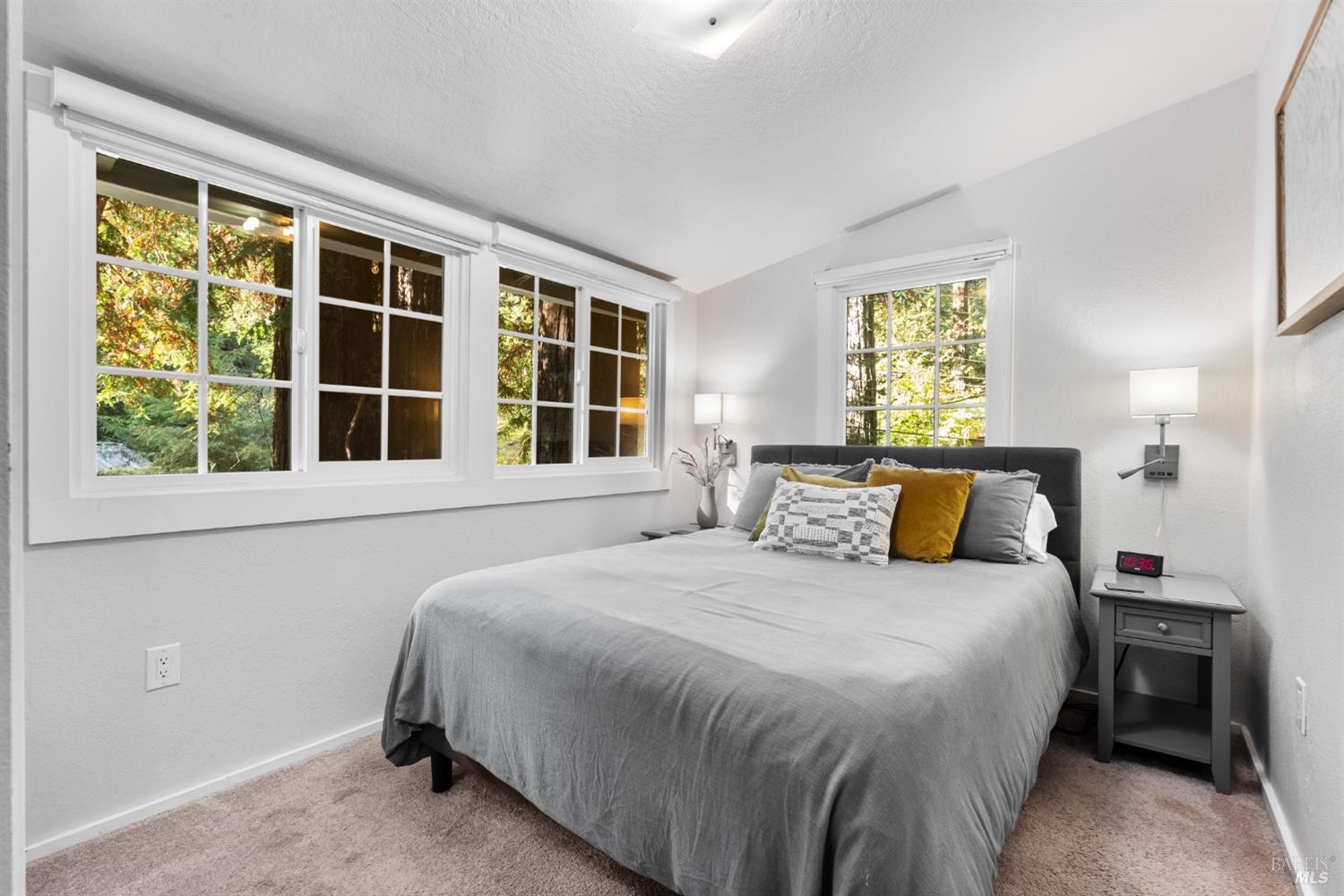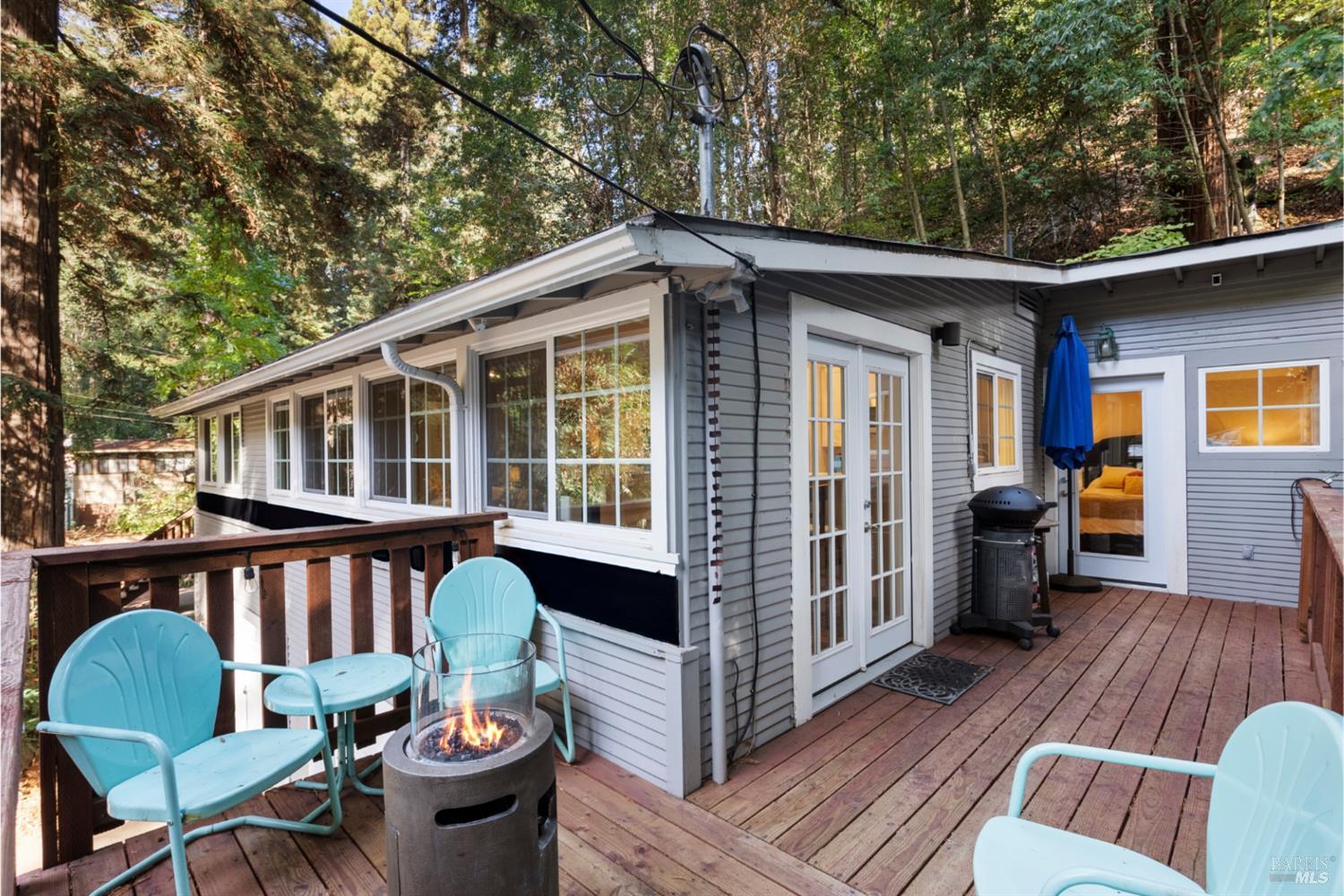 Minutes from downtown Guerneville, this three bedroom, two bath home offers a private, peaceful setting with thoughtful updates throughout. Natural light fills the open concept layout; walk into a remodeled kitchen with quartz countertops and stainless steel appliances. Each bathroom has been refreshed with tasteful touches, and the expansive deck looks out over the surrounding forest, creating an easy space to relax and entertain. Concrete foundation, central heat, public sewer, city water, and a two car garage make River living easy. Whether you're searching for a full time residence, a weekend escape, or an investment, this home offers flexibility in a peaceful and private setting.