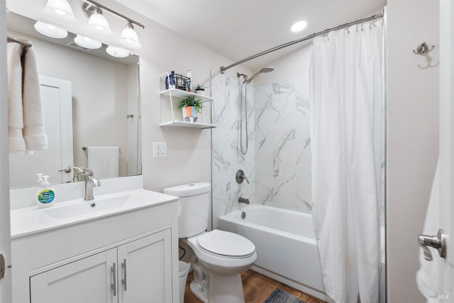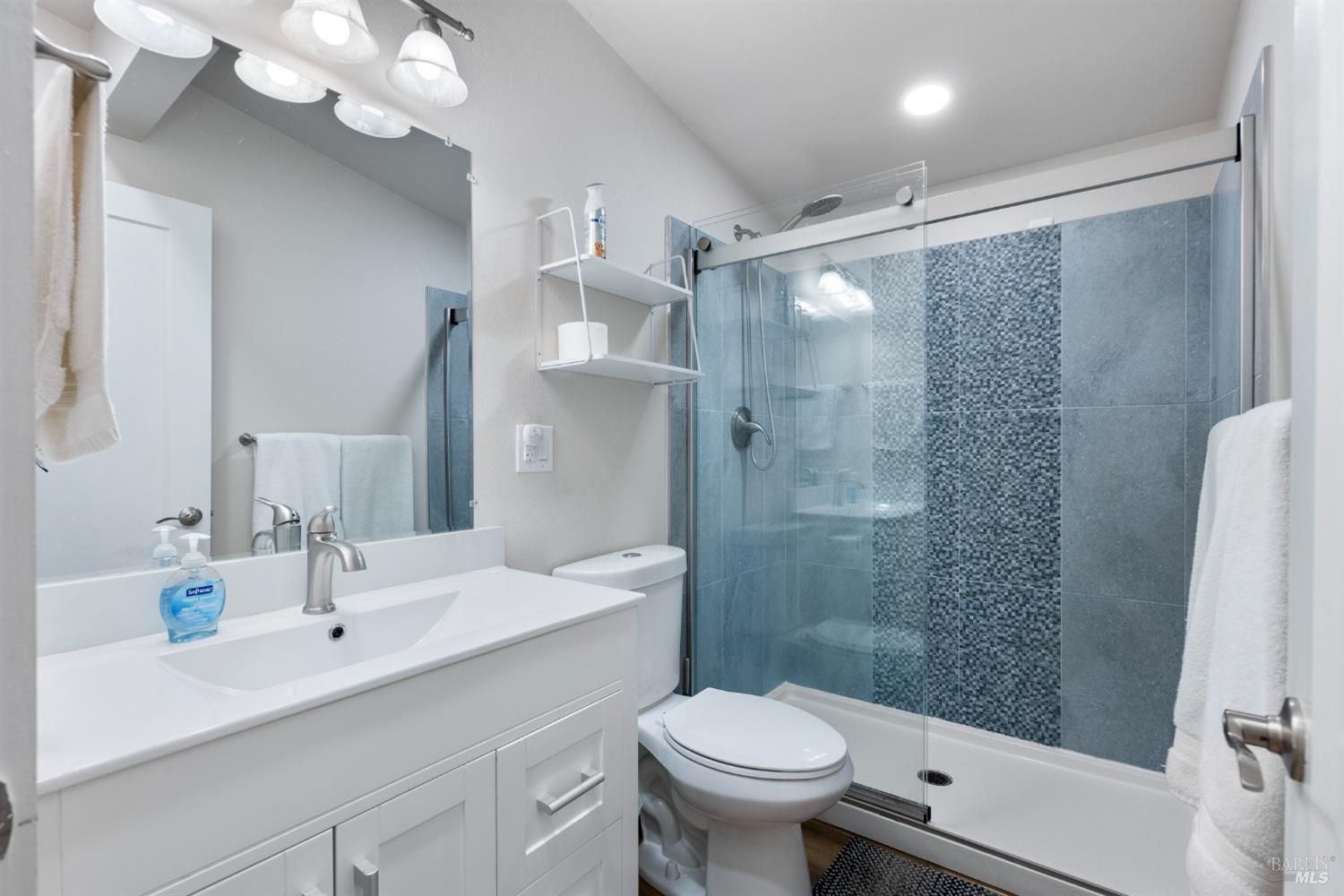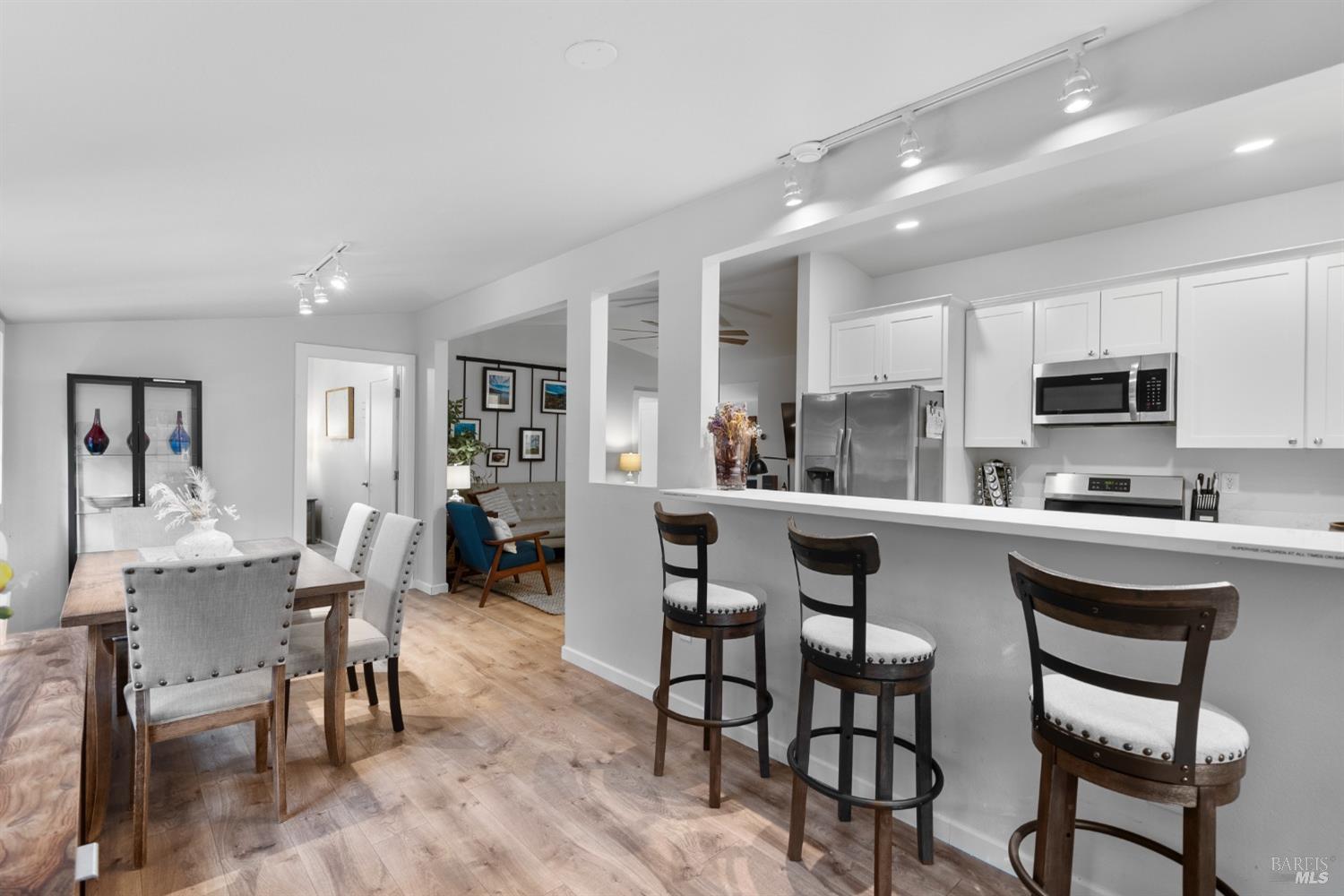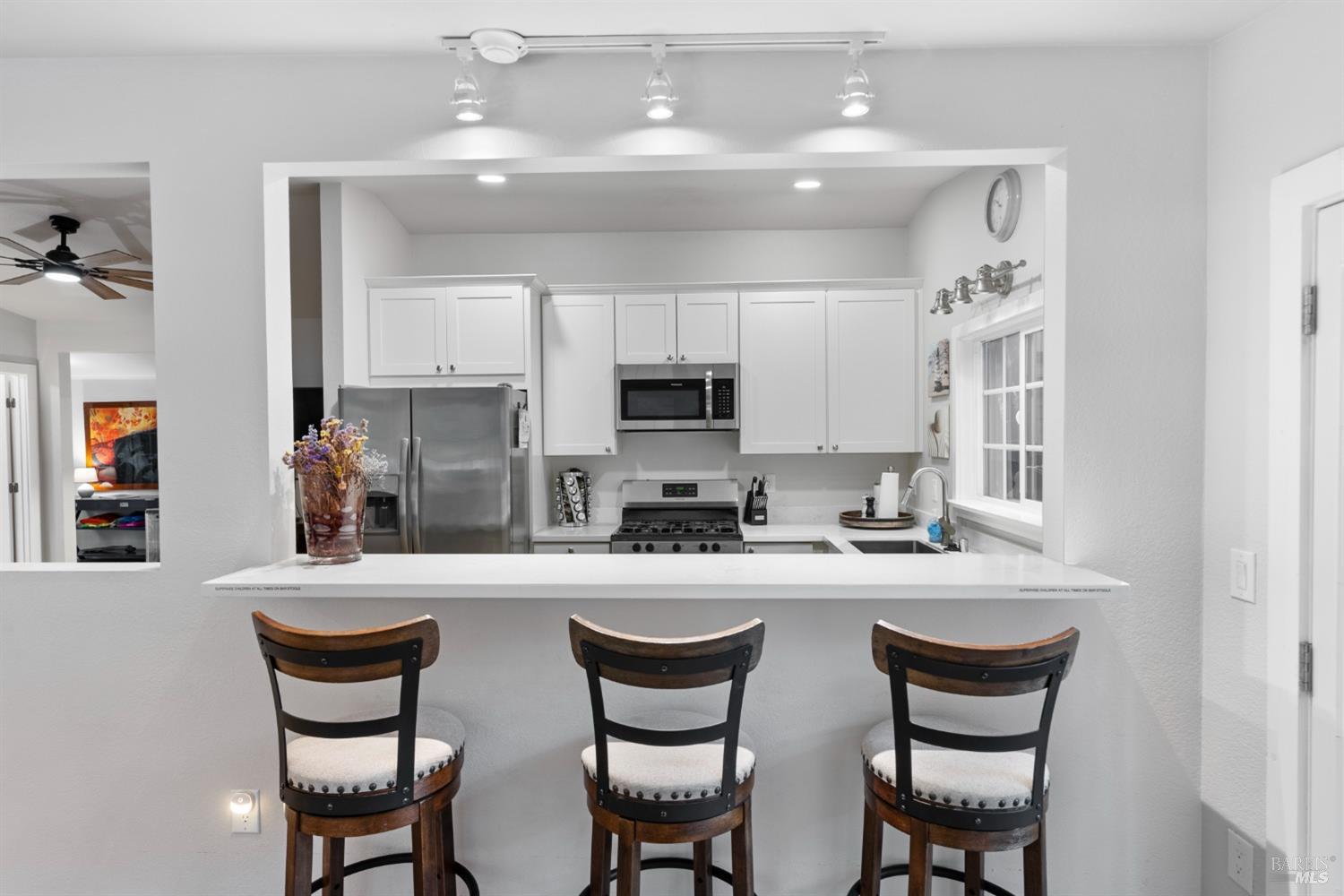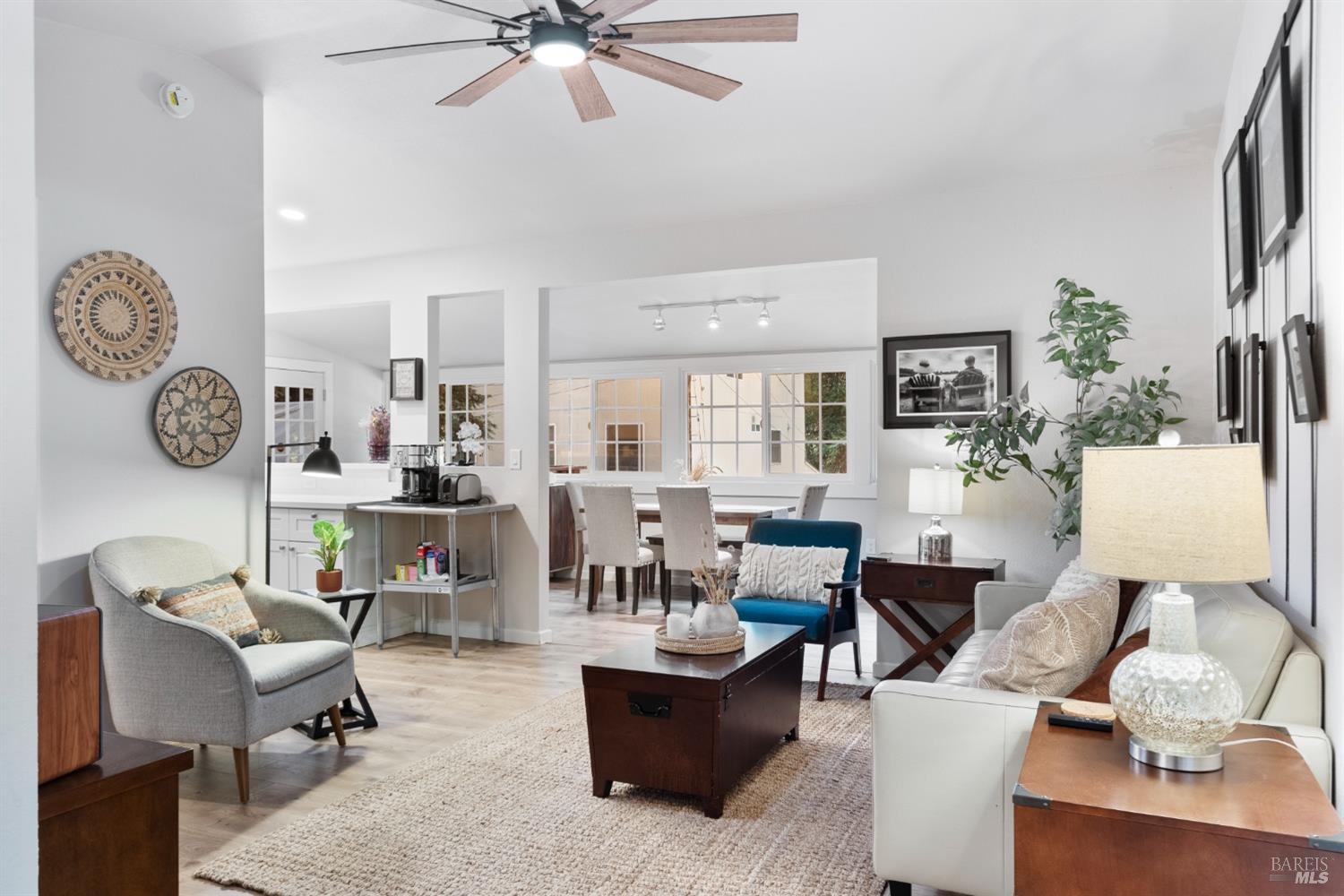 Minutes from downtown Guerneville, this three bedroom, two bath home offers a private, peaceful setting with thoughtful updates throughout. Natural light fills the open concept layout; walk into a remodeled kitchen with quartz countertops and stainless steel appliances. Each bathroom has been refreshed with tasteful touches, and the expansive deck looks out over the surrounding forest, creating an easy space to relax and entertain. Concrete foundation, central heat, public sewer, city water, and a two car garage make River living easy. Whether you're searching for a full time residence, a weekend escape, or an investment, this home offers flexibility in a peaceful and private setting.