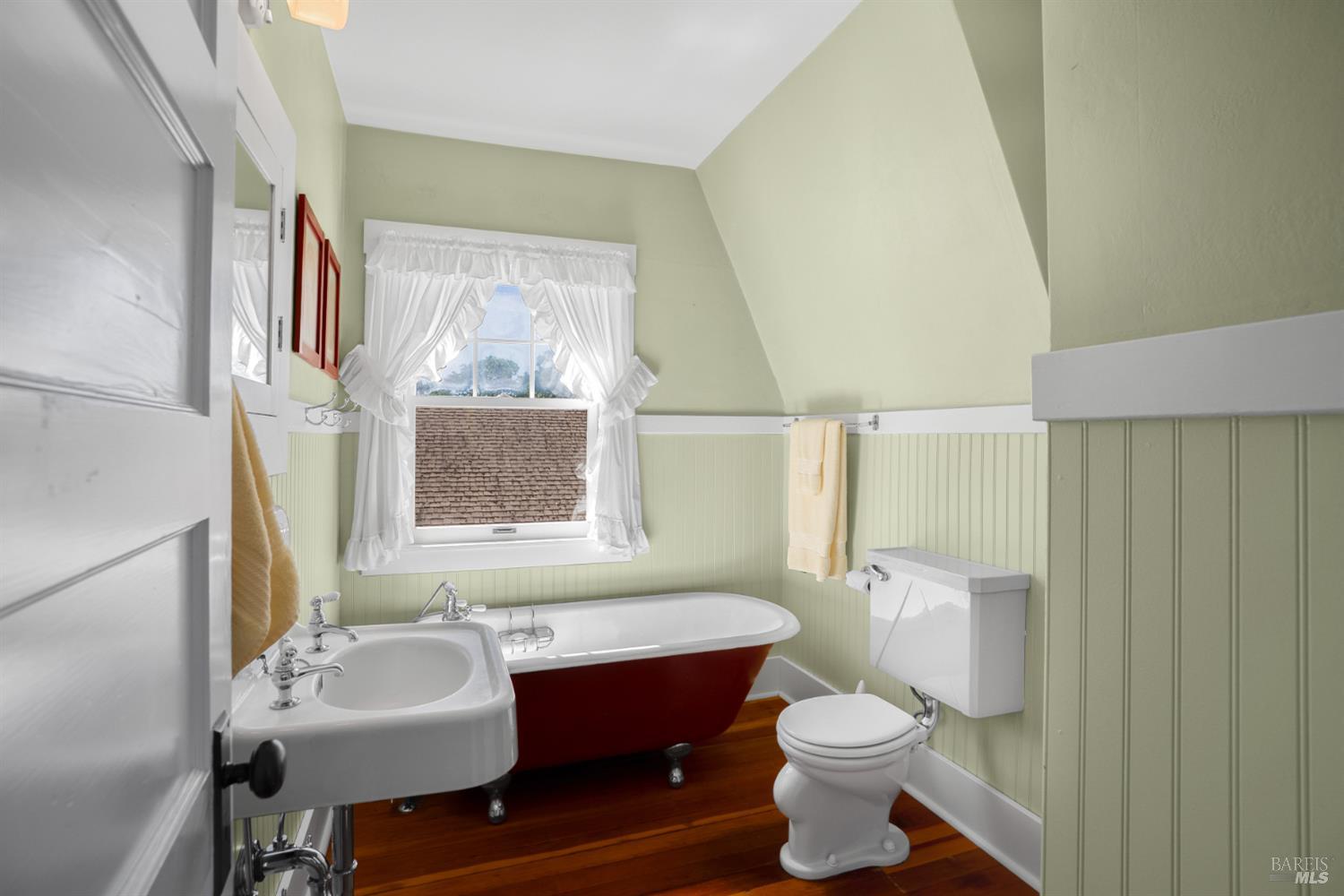 Light-filled and lovingly maintained, this charming Dutch Colonial blends timeless character with everyday comfort. Many period details remain, including hardwood floors, built-in cabinetry, and classic architectural touches. A cozy living room with a gas fireplace welcomes you, while the dining room flows seamlessly into a bright kitchen featuring white cabinetry, quartz countertops, and generous storage. The home offers 3 bedrooms and 2 full baths, including a first-floor primary suite with gas fireplace, a spacious walk-in shower, and large closet. Upstairs, find two additional bedrooms and a full bath with a clawfoot tub plus a small room that has been used in years past as a study, playroom, or extra sleeping space. Owned by the same family for over 75 years, this is a rare opportunity to own a piece of Santa Rosa history. Set on a picturesque street in the sought-after Santa Rosa Junior College neighborhood, known for its historic charm and central location, the home has a beautifully manicured front yard and a sunny backyard with potting shed, multiple seating areas and raised garden beds. Modern conveniences include dual-paned windows and a heat pump downstairs for both heat and air-conditioning. Original 1-car garage mimics the distinctive architecture of the home.