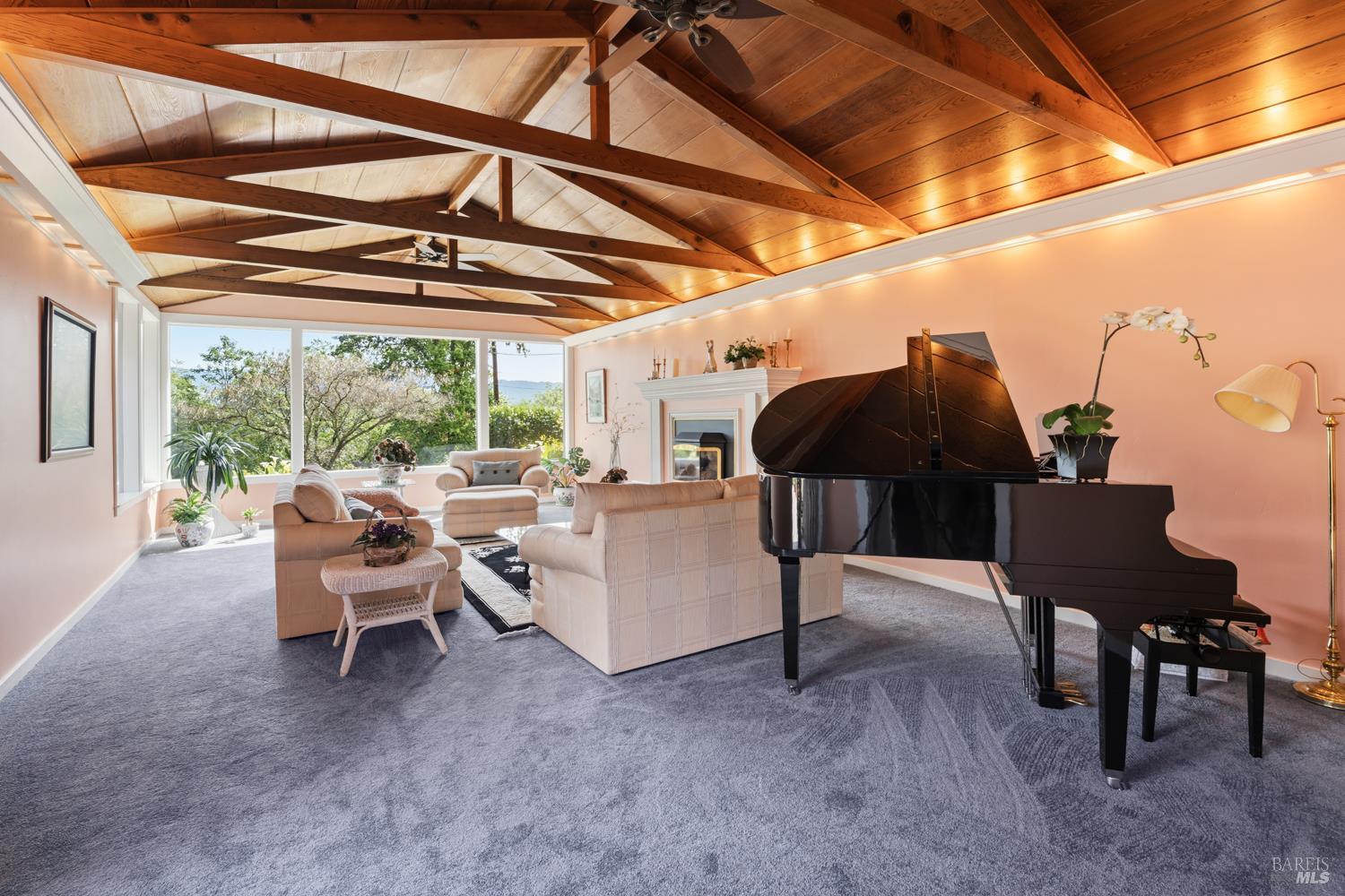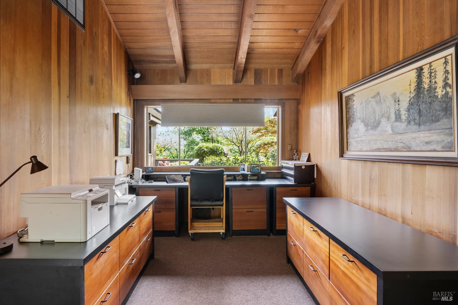 Nestled on approximately 8 private acres in Ukiah's sought after west foothills, this custom-built 3,200 sq. ft. home offers both seclusion and sophistication. A paved circular drive leads to a beautifully designed home featuring a light-filled living room with open beam ceiling and fireplace, formal dining room with gas log fireplace, updated kitchen and an expansive family room with wood stove and office area. Fine clear vertical grain redwood accents enhance the home's warmth and craftsmanship. Energy efficiency is a plus with fully owned solar, helping to keep utility costs down. Designed for indoor-outdoor living, the family room opens to a generous deck ideal for summer entertainment, while a charming courtyard off the kitchen and pantry provides an additional private retreat. Car enthusiasts and hobbyists will appreciate the exceptional amenities, with attached 4-car garage, separate shop with car lift, and additional single-car garage at the barn. All of this is offering the perfect blend of privacy, functionality, and custom craftsmanship.