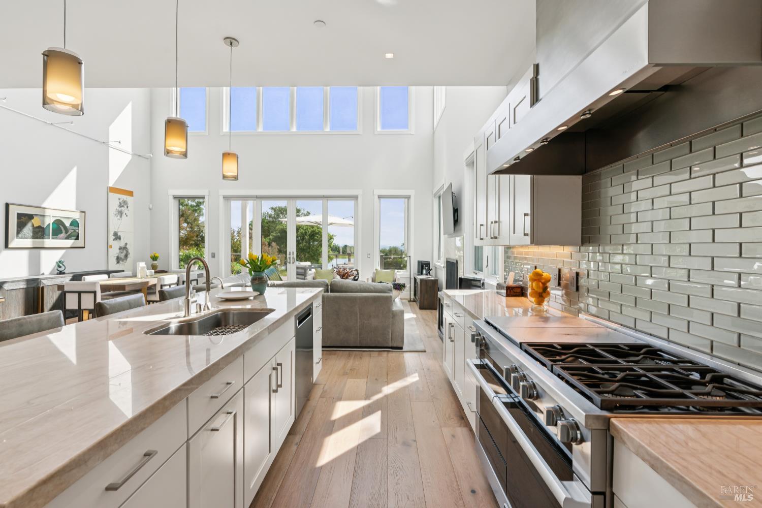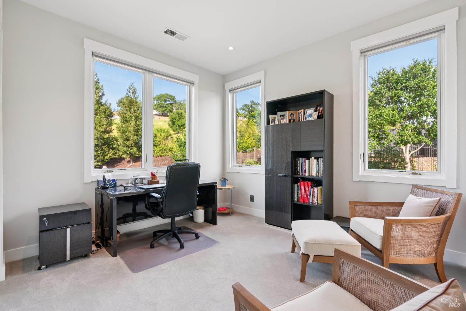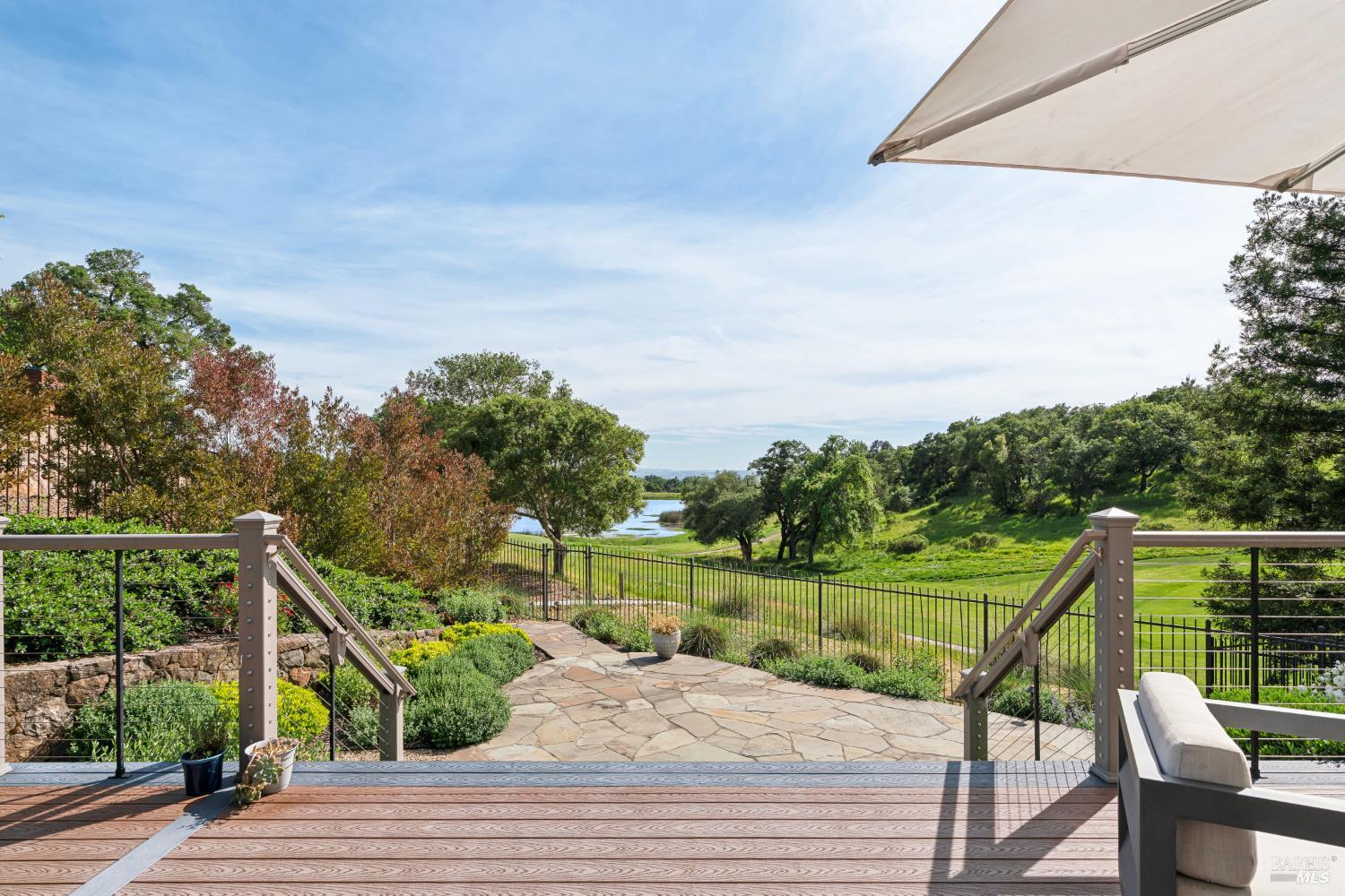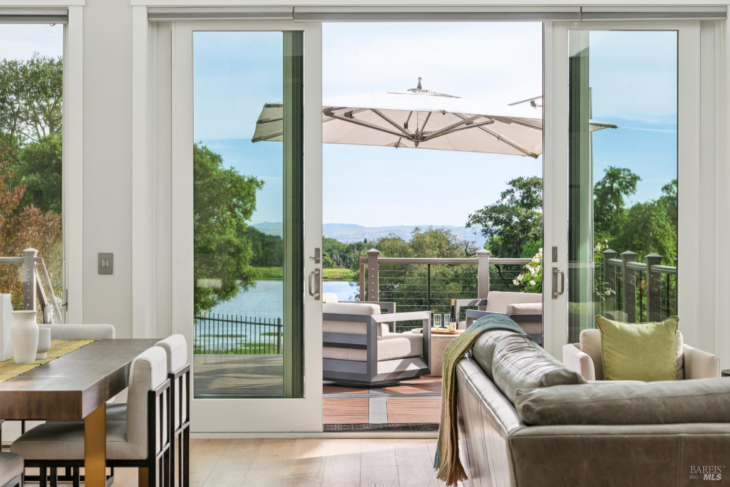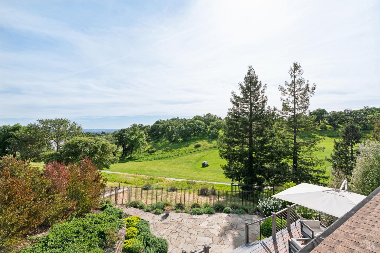 Luxury home with stunning views of the golf course and lake is the one you've been waiting for! Unassumingly tucked at the end of a quiet cul-de-sac, this 3,147 sq ft immaculate residence will surprise you. With 4 bedrooms, plus den, and 3.5 baths, this home is private and luxurious. Cathedral ceilings and tall windows frame idyllic vistas. The open living space and dining area flow seamlessly to the outdoors for effortless entertaining. The chef's kitchen is both functional and refined. Well-appointed with quartz counters and island, pantry closet, Miele range, and a wine fridge ready for your collection. Upgrades including smooth walls, 10-foot ceilings, state-of-the-art remote-controlled blinds, multi-zone HVAC, and fully owned solar with two backup batteries offer efficiency, comfort, and peace of mind without sacrificing design. The primary suite on the main level offers luxury and easy access featuring two walk-in closets, deck access, and a spacious bathroom with soaking tub, stall shower, and dual vanities. Upstairs, three additional bedrooms provide flexibility: two share a bathroom and one en suite bath plus a private deck off that captures elevated views, offering a quiet retreat above it all. Downstairs den, currently an office, could easily be set up as a guest room or creative space. Gorgeous powder room and laundry add everyday conveniences on the main level. The three-car garage includes extra storage and currently functions as a workout area, giving you options for how the space evolves with your needs. Just moments away, the Fountaingrove Club offers golf, tennis, fitness, and dining for those seeking an active lifestyle close to home. With easy access to Highway 101, you're only minutes from daily essentials, 20 minutes to Healdsburg, and about 40 minutes to the coast, making both commuting and weekend plans refreshingly simple. This is a home where design, setting, and livability come together in a way that feels both elevated and entirely comfortable.