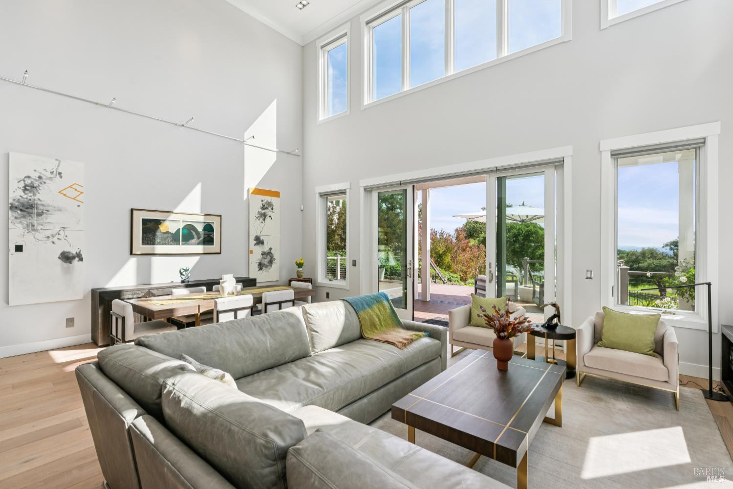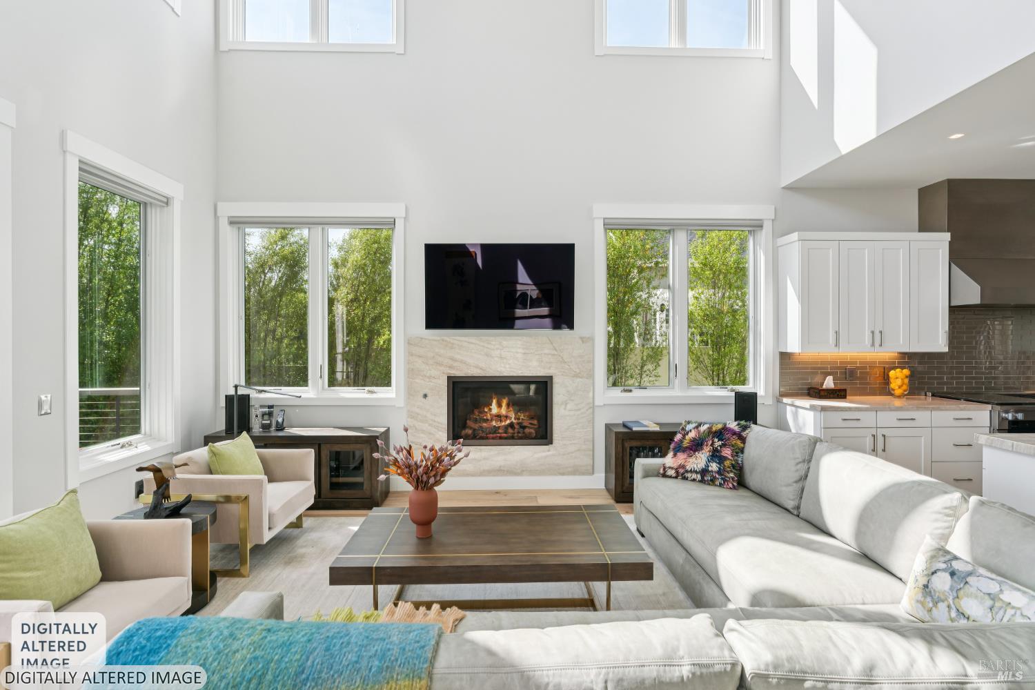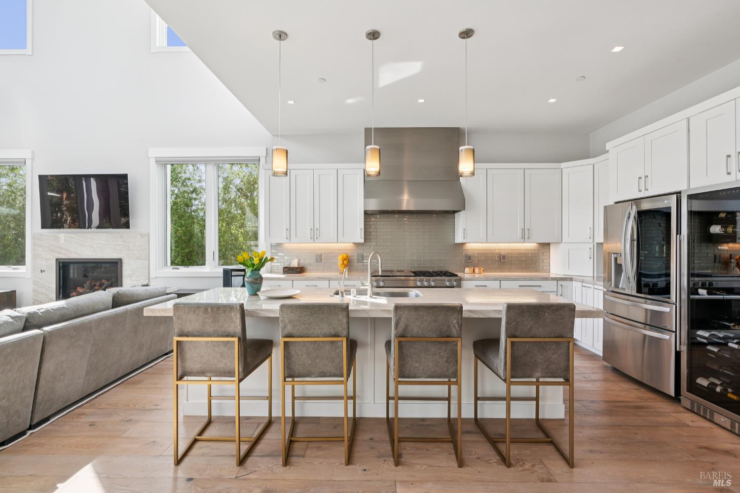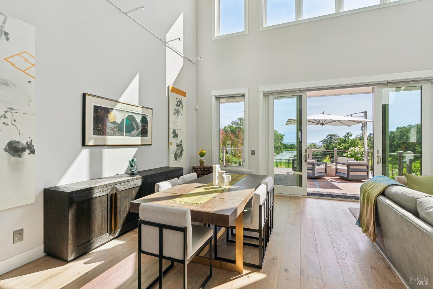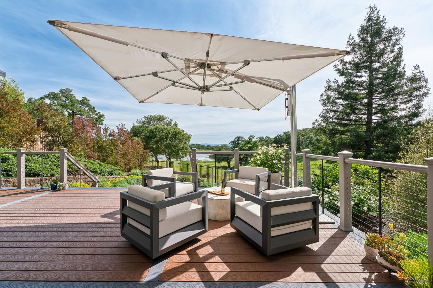 Luxury home with stunning views of the golf course and lake is the one you've been waiting for! Unassumingly tucked at the end of a quiet cul-de-sac, this 3,147 sq ft immaculate residence will surprise you. With 4 bedrooms, plus den, and 3.5 baths, this home is private and luxurious. Cathedral ceilings and tall windows frame idyllic vistas. The open living space and dining area flow seamlessly to the outdoors for effortless entertaining. The chef's kitchen is both functional and refined. Well-appointed with quartz counters and island, pantry closet, Miele range, and a wine fridge ready for your collection. Upgrades including smooth walls, 10-foot ceilings, state-of-the-art remote-controlled blinds, multi-zone HVAC, and fully owned solar with two backup batteries offer efficiency, comfort, and peace of mind without sacrificing design. The primary suite on the main level offers luxury and easy access featuring two walk-in closets, deck access, and a spacious bathroom with soaking tub, stall shower, and dual vanities. Upstairs, three additional bedrooms provide flexibility: two share a bathroom and one en suite bath plus a private deck off that captures elevated views, offering a quiet retreat above it all. Downstairs den, currently an office, could easily be set up as a guest room or creative space. Gorgeous powder room and laundry add everyday conveniences on the main level. The three-car garage includes extra storage and currently functions as a workout area, giving you options for how the space evolves with your needs. Just moments away, the Fountaingrove Club offers golf, tennis, fitness, and dining for those seeking an active lifestyle close to home. With easy access to Highway 101, you're only minutes from daily essentials, 20 minutes to Healdsburg, and about 40 minutes to the coast, making both commuting and weekend plans refreshingly simple. This is a home where design, setting, and livability come together in a way that feels both elevated and entirely comfortable.