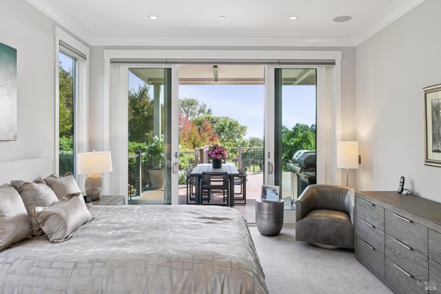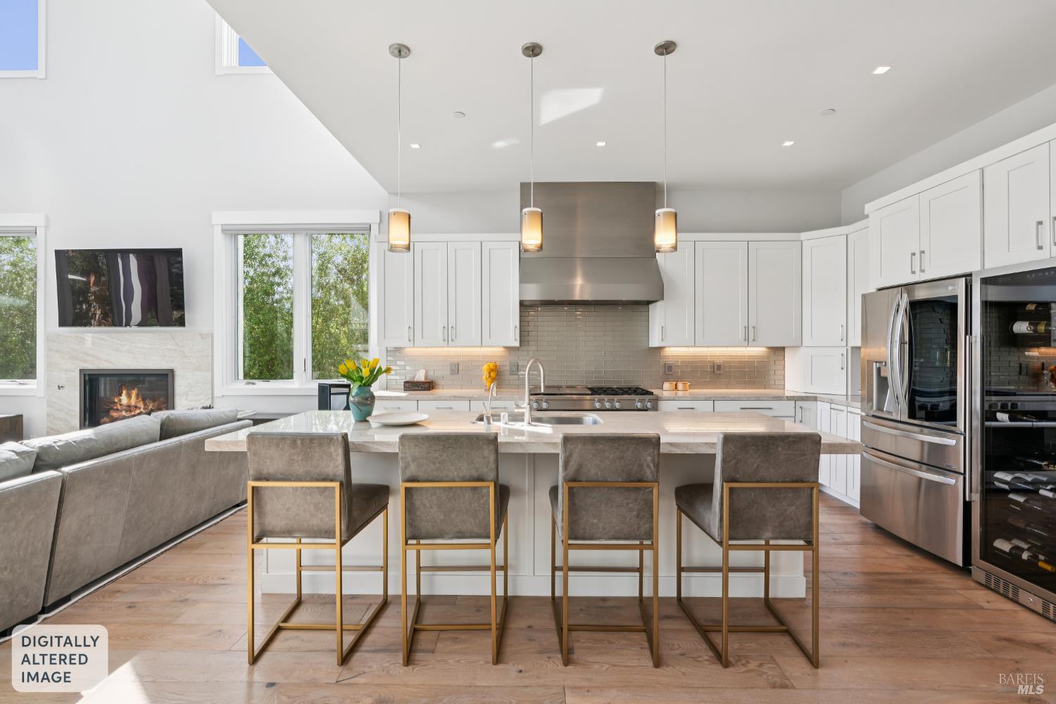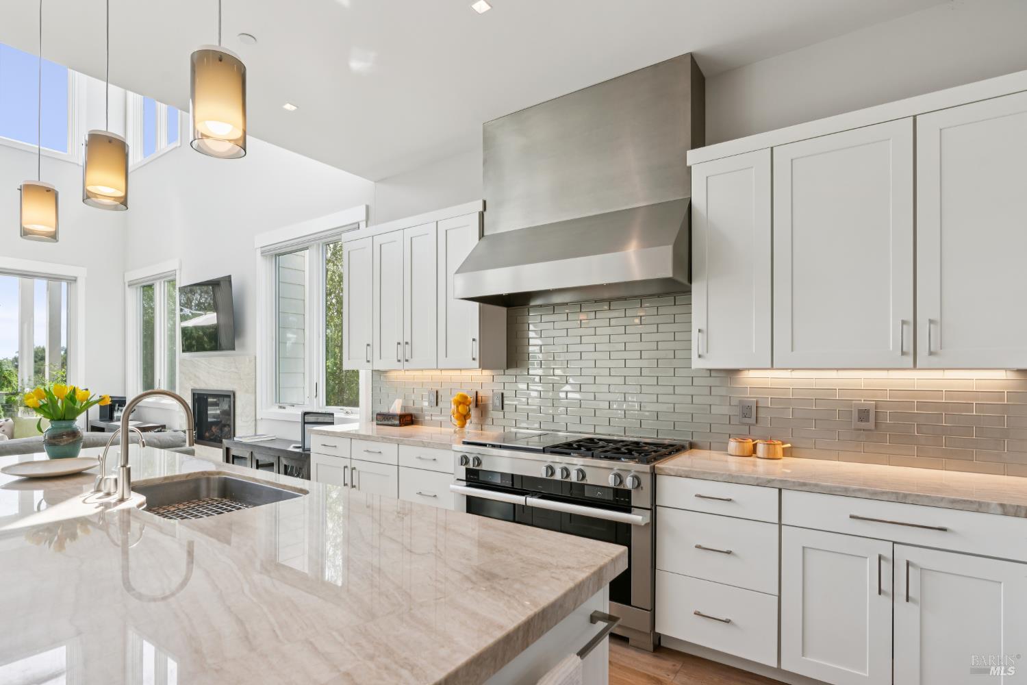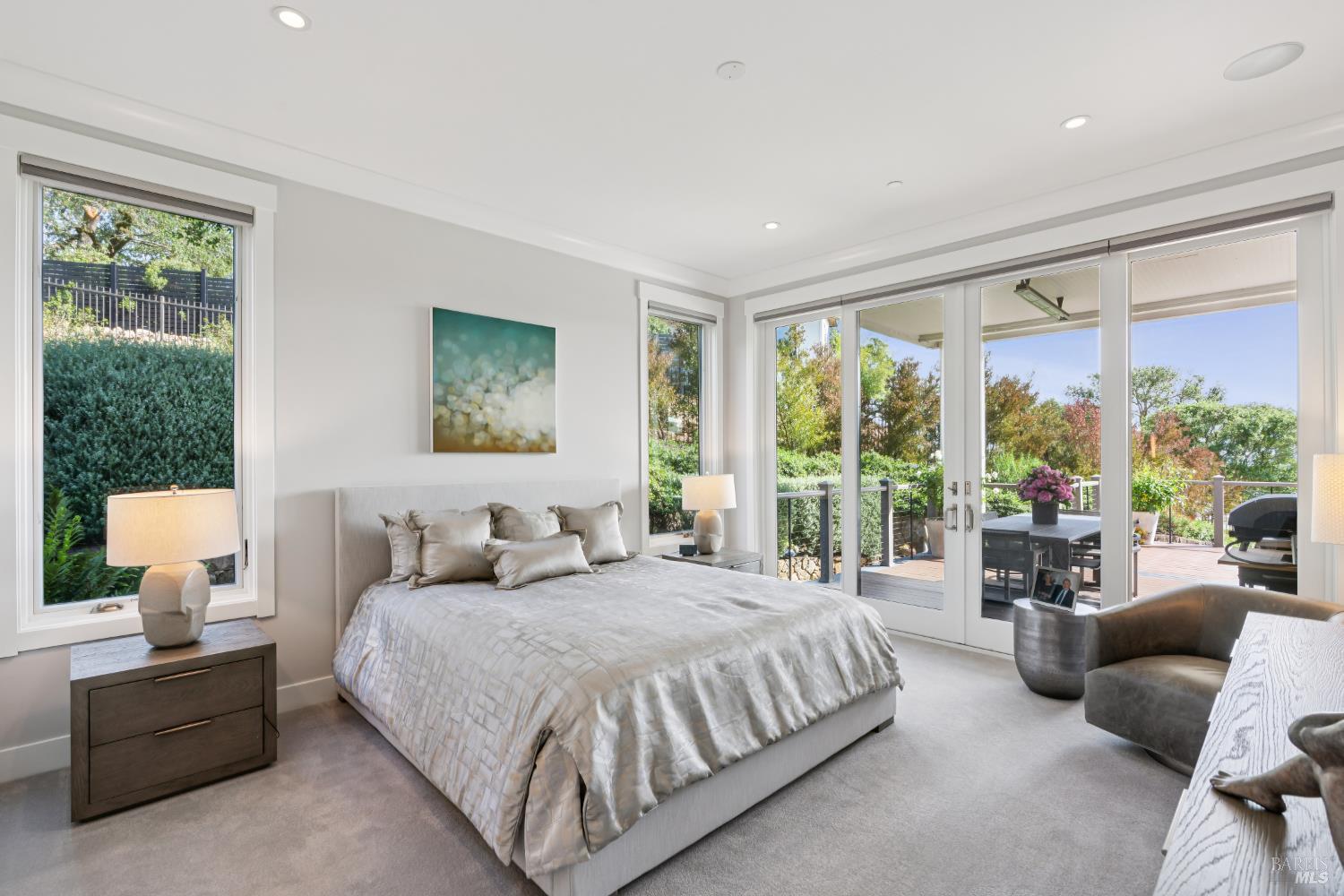 Luxury home with stunning views of the golf course and lake is the one you've been waiting for! Unassumingly tucked at the end of a quiet cul-de-sac, this 3,147 sq ft immaculate residence will surprise you. With 4 bedrooms, plus den, and 3.5 baths, this home is private and luxurious. Cathedral ceilings and tall windows frame idyllic vistas. The open living space and dining area flow seamlessly to the outdoors for effortless entertaining. The chef's kitchen is both functional and refined. Well-appointed with quartz counters and island, pantry closet, Miele range, and a wine fridge ready for your collection. Upgrades including smooth walls, 10-foot ceilings, state-of-the-art remote-controlled blinds, multi-zone HVAC, and fully owned solar with two backup batteries offer efficiency, comfort, and peace of mind without sacrificing design. The primary suite on the main level offers luxury and easy access featuring two walk-in closets, deck access, and a spacious bathroom with soaking tub, stall shower, and dual vanities. Upstairs, three additional bedrooms provide flexibility: two share a bathroom and one en suite bath plus a private deck off that captures elevated views, offering a quiet retreat above it all. Downstairs den, currently an office, could easily be set up as a guest room or creative space. Gorgeous powder room and laundry add everyday conveniences on the main level. The three-car garage includes extra storage and currently functions as a workout area, giving you options for how the space evolves with your needs. Just moments away, the Fountaingrove Club offers golf, tennis, fitness, and dining for those seeking an active lifestyle close to home. With easy access to Highway 101, you're only minutes from daily essentials, 20 minutes to Healdsburg, and about 40 minutes to the coast, making both commuting and weekend plans refreshingly simple. This is a home where design, setting, and livability come together in a way that feels both elevated and entirely comfortable.