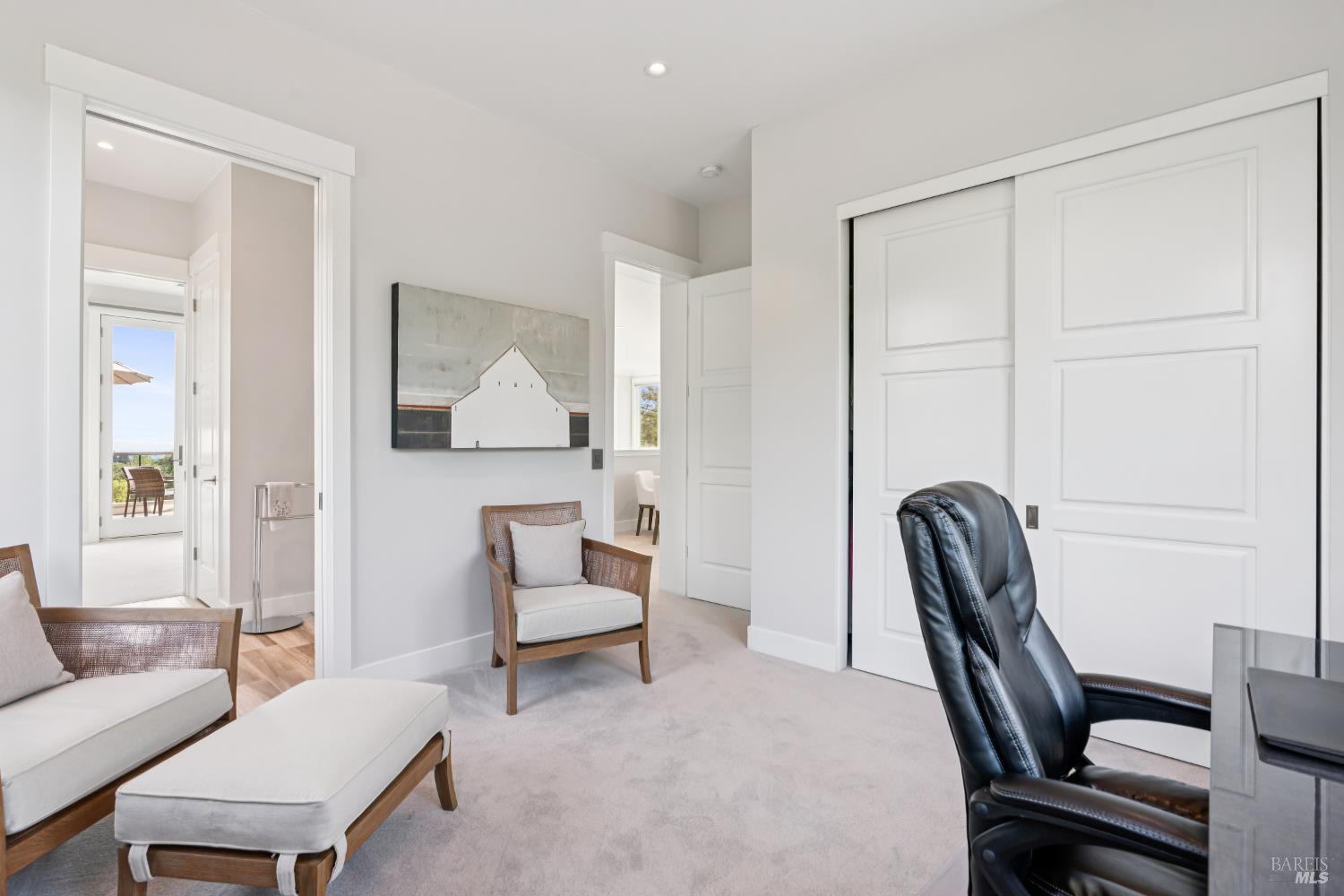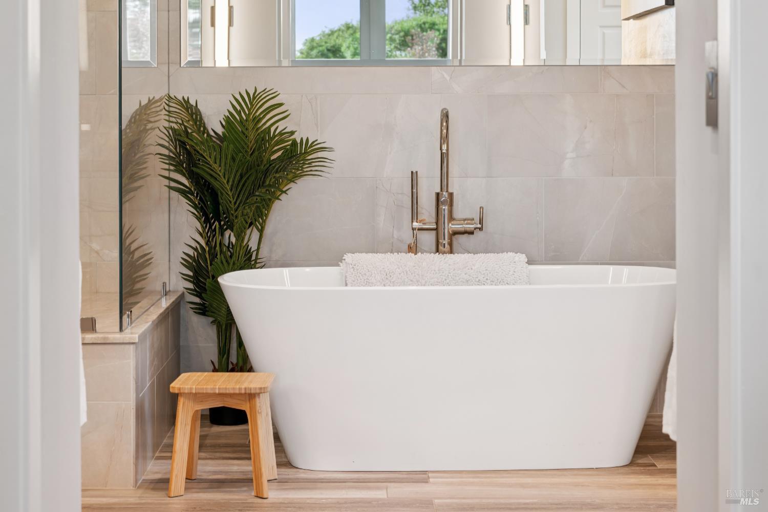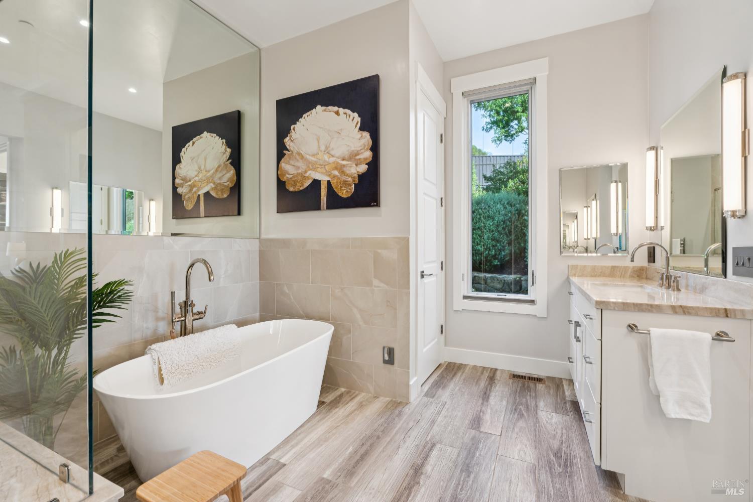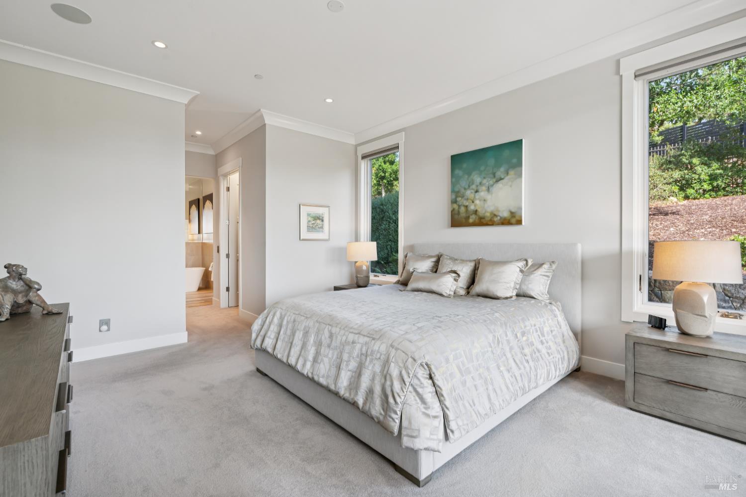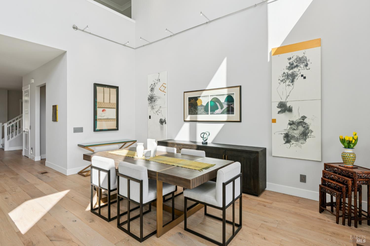Luxury home with stunning views of the golf course and lake is the one you've been waiting for! Unassumingly tucked at the end of a quiet cul-de-sac, this 3,147 sq ft immaculate residence will surprise you. With 4 bedrooms, plus den, and 3.5 baths, this home is private and luxurious. Cathedral ceilings and tall windows frame idyllic vistas. The open living space and dining area flow seamlessly to the outdoors for effortless entertaining. The chef's kitchen is both functional and refined. Well-appointed with quartz counters and island, pantry closet, Miele range, and a wine fridge ready for your collection. Upgrades including smooth walls, 10-foot ceilings, state-of-the-art remote-controlled blinds, multi-zone HVAC, and fully owned solar with two backup batteries offer efficiency, comfort, and peace of mind without sacrificing design. The primary suite on the main level offers luxury and easy access featuring two walk-in closets, deck access, and a spacious bathroom with soaking tub, stall shower, and dual vanities. Upstairs, three additional bedrooms provide flexibility: two share a bathroom and one en suite bath plus a private deck off that captures elevated views, offering a quiet retreat above it all. Downstairs den, currently an office, could easily be set up as a guest room or creative space. Gorgeous powder room and laundry add everyday conveniences on the main level. The three-car garage includes extra storage and currently functions as a workout area, giving you options for how the space evolves with your needs. Just moments away, the Fountaingrove Club offers golf, tennis, fitness, and dining for those seeking an active lifestyle close to home. With easy access to Highway 101, you're only minutes from daily essentials, 20 minutes to Healdsburg, and about 40 minutes to the coast, making both commuting and weekend plans refreshingly simple. This is a home where design, setting, and livability come together in a way that feels both elevated and entirely comfortable.