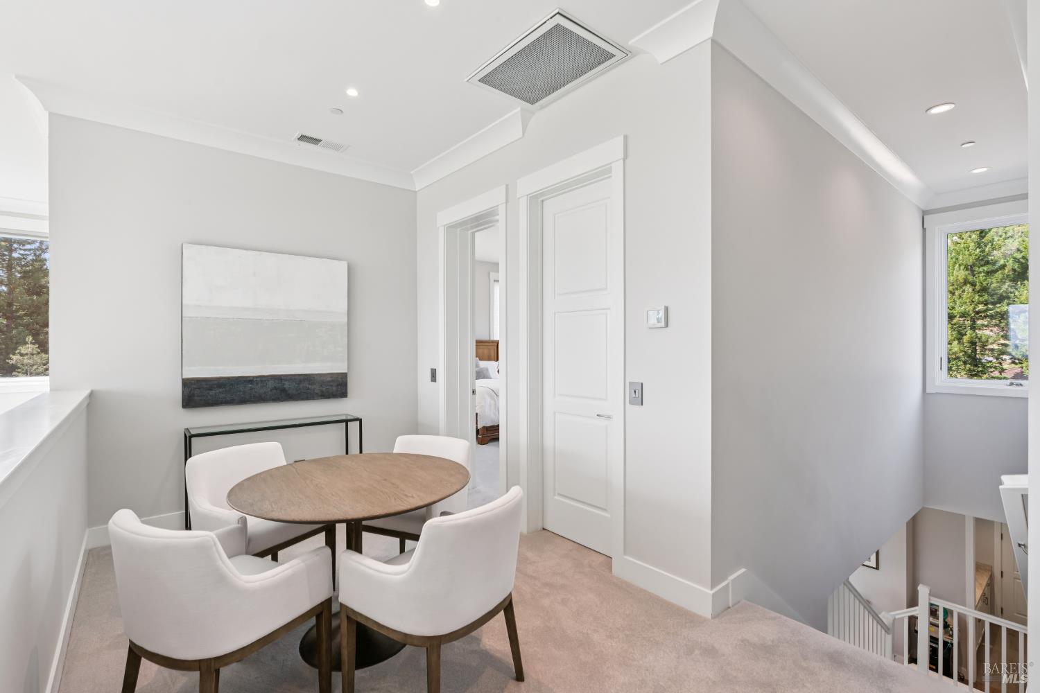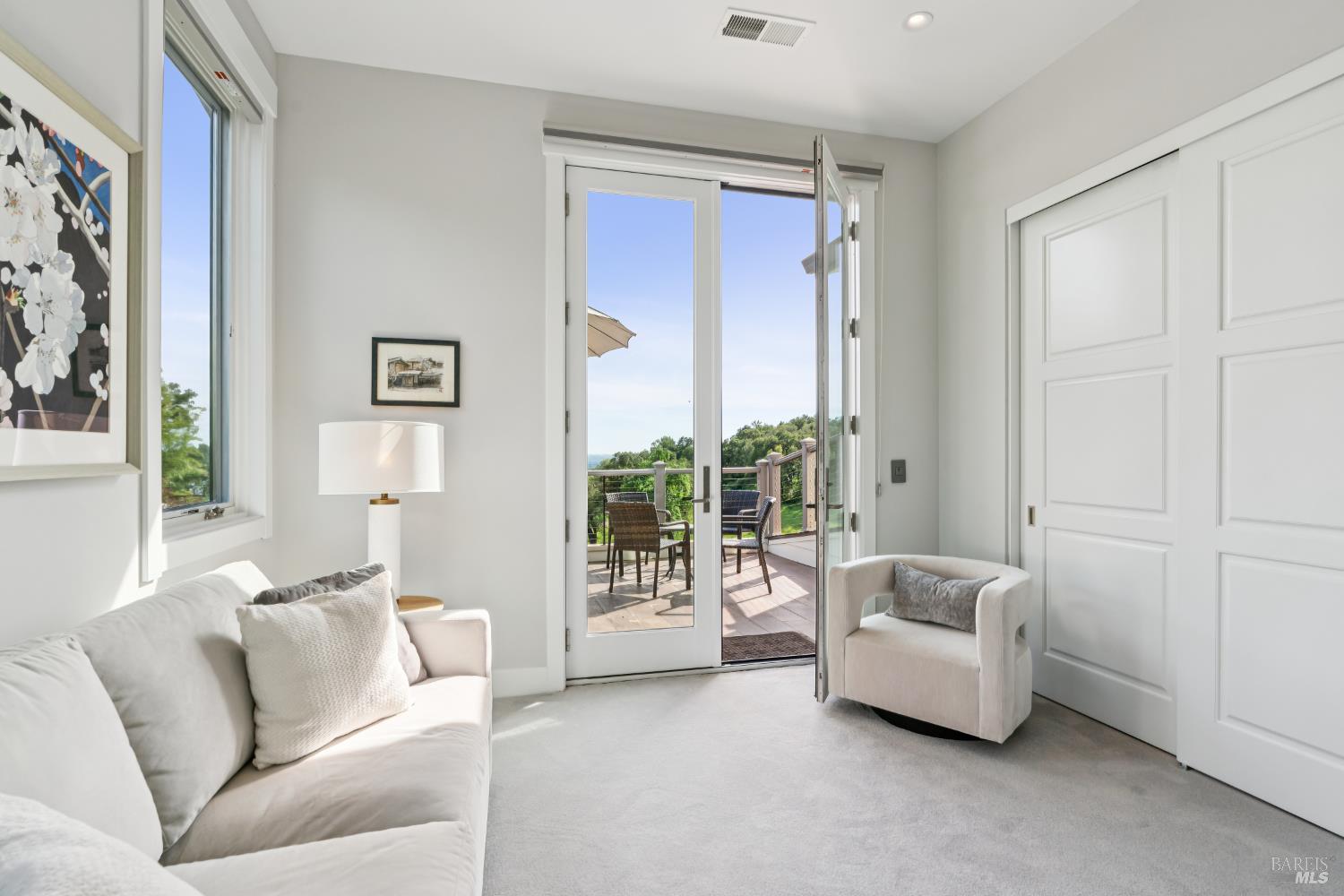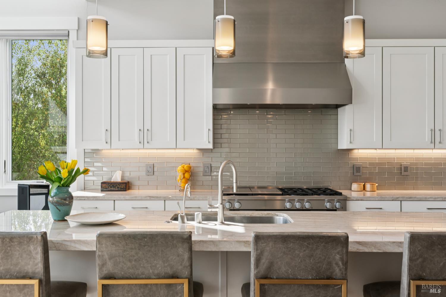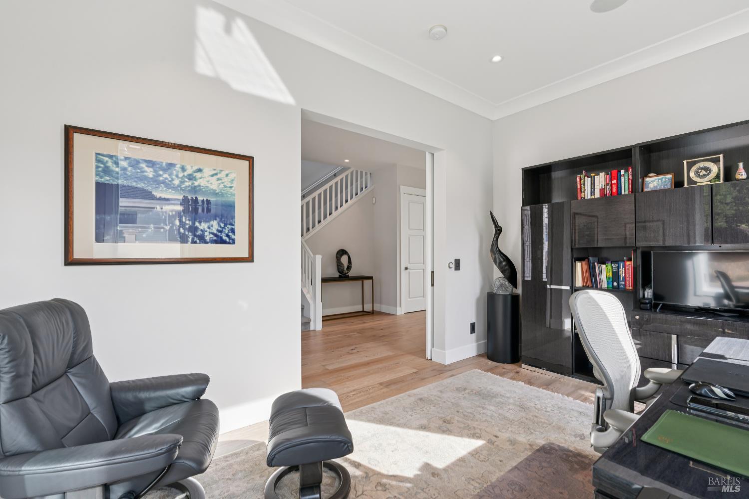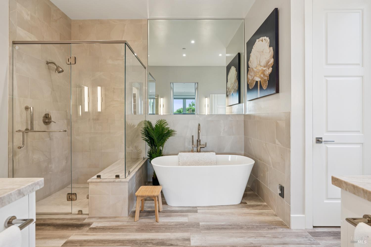 Luxury home with stunning views of the golf course and lake is the one you've been waiting for! Unassumingly tucked at the end of a quiet cul-de-sac, this 3,147 sq ft immaculate residence will surprise you. With 4 bedrooms, plus den, and 3.5 baths, this home is private and luxurious. Cathedral ceilings and tall windows frame idyllic vistas. The open living space and dining area flow seamlessly to the outdoors for effortless entertaining. The chef's kitchen is both functional and refined. Well-appointed with quartz counters and island, pantry closet, Miele range, and a wine fridge ready for your collection. Upgrades including smooth walls, 10-foot ceilings, state-of-the-art remote-controlled blinds, multi-zone HVAC, and fully owned solar with two backup batteries offer efficiency, comfort, and peace of mind without sacrificing design. The primary suite on the main level offers luxury and easy access featuring two walk-in closets, deck access, and a spacious bathroom with soaking tub, stall shower, and dual vanities. Upstairs, three additional bedrooms provide flexibility: two share a bathroom and one en suite bath plus a private deck off that captures elevated views, offering a quiet retreat above it all. Downstairs den, currently an office, could easily be set up as a guest room or creative space. Gorgeous powder room and laundry add everyday conveniences on the main level. The three-car garage includes extra storage and currently functions as a workout area, giving you options for how the space evolves with your needs. Just moments away, the Fountaingrove Club offers golf, tennis, fitness, and dining for those seeking an active lifestyle close to home. With easy access to Highway 101, you're only minutes from daily essentials, 20 minutes to Healdsburg, and about 40 minutes to the coast, making both commuting and weekend plans refreshingly simple. This is a home where design, setting, and livability come together in a way that feels both elevated and entirely comfortable.