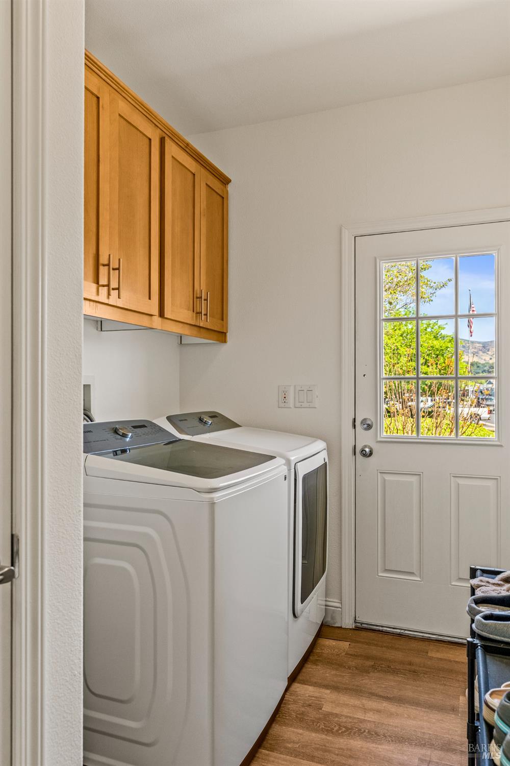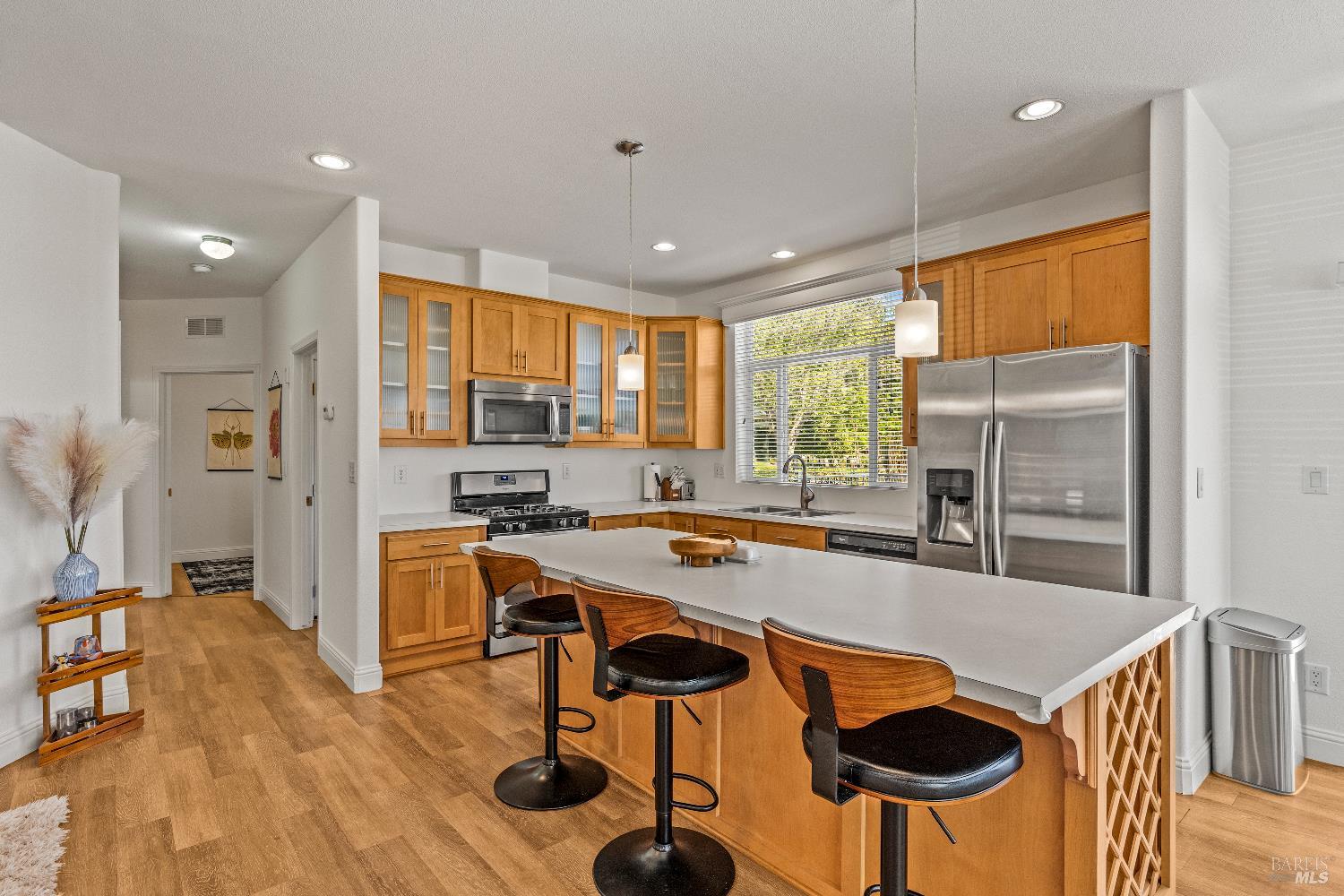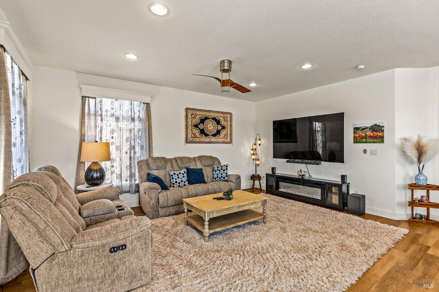 Positioned on a desirable corner within the community, this beautifully maintained residence built just a decade ago offers both privacy and proximity. Ideally located near the community center, pool, and open green spaces, the home also captures serene eastern mountain vistas from its expansive outdoor deck. Inside, a light-filled, open-concept design seamlessly connects the kitchen, living, and dining areas, enhanced by soaring nine-foot ceilings and stylish vinyl flooring throughout. The spacious primary suite provides a peaceful retreat, complete with a walk-in closet and a well-appointed ensuite bath featuring dual vanities. Set within one of Yountville's most sought-after communities, this home offers effortless access to the town's renowned lifestyle just moments from world-class dining, celebrated tasting rooms, and vibrant recreational amenities including pickleball and bocce courts, as well as the community center.