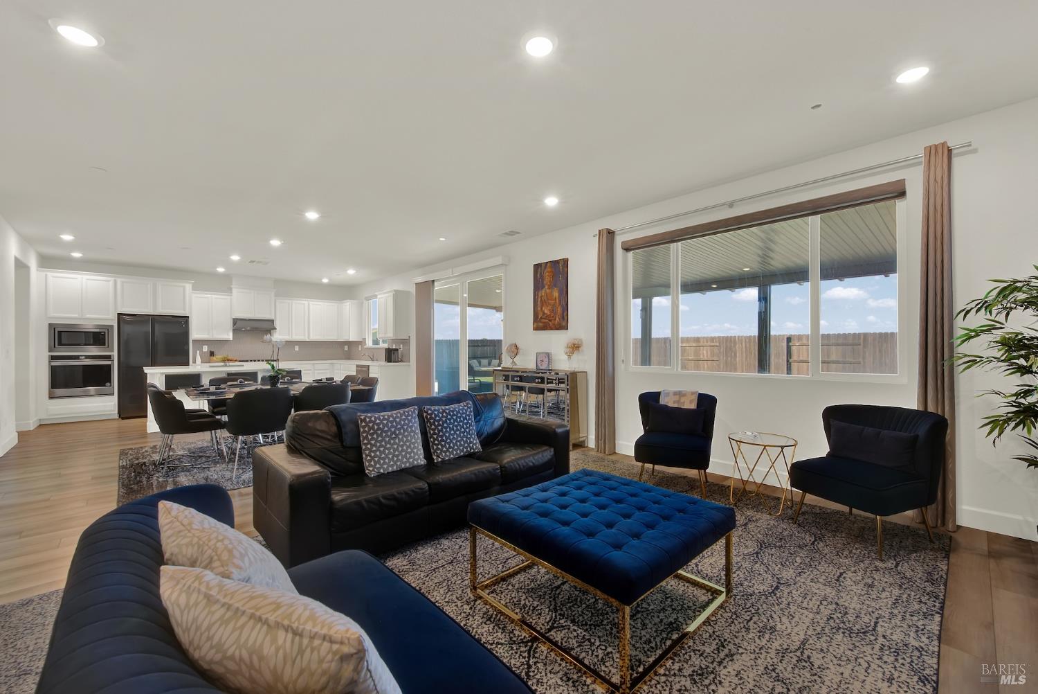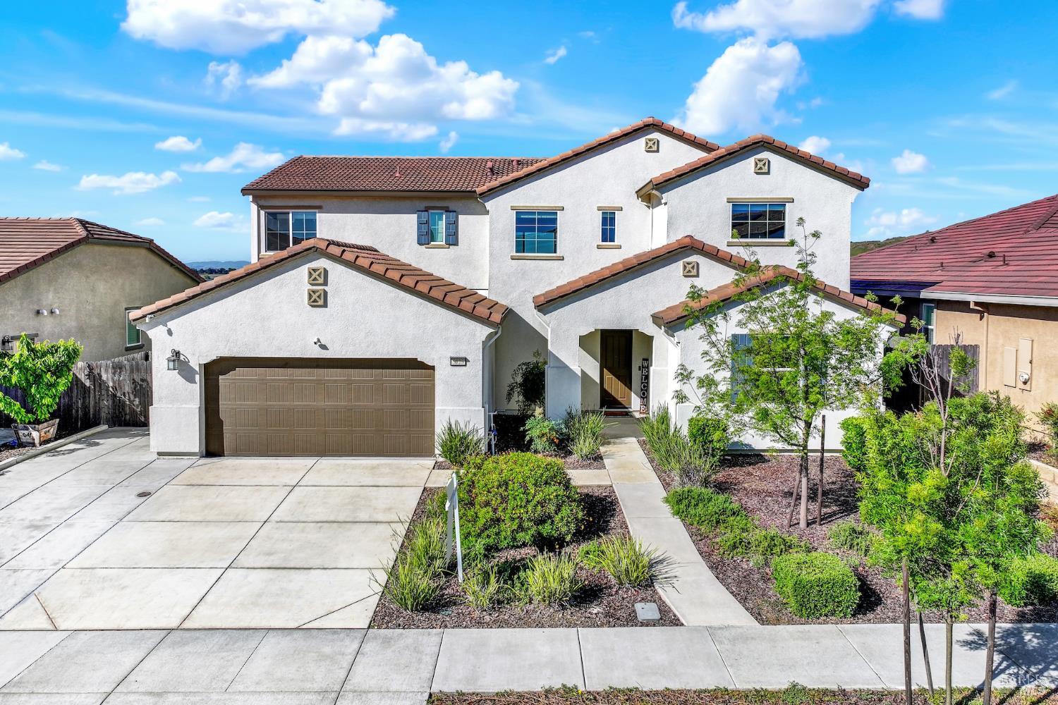Beautiful like-new home offering 4 bedrooms plus loft, including a full bedroom and bath downstairs along with an additional half bath for guests, for a total of 3.5 baths. With approximately 2,787 sq ft of living space, this home features an open concept floor plan ideal for both everyday living and entertaining. The downstairs living area showcases luxury vinyl plank flooring, while the kitchen is equipped with quartz countertops, custom tile backsplash, stainless steel appliances with double oven, a spacious island, and pantry. Adjacent to the family room is a convenient nook area perfect for a home office. Upstairs you'll find a large loft providing additional flexible living space, along with a grand primary suite offering great hill views. The primary bath features tile flooring, a soaking tub, separate shower, double vanity, and a walk-in closet. Situated on a large lot backing to open space with scenic hill views, this home offers privacy and a peaceful setting. The extended driveway provides ample additional parking, and the covered patio creates the perfect outdoor space for gatherings and relaxation. Complete with a spacious 3-car tandem garage, this well maintained and move-in ready home combines modern upgrades with a highly desirable location.
