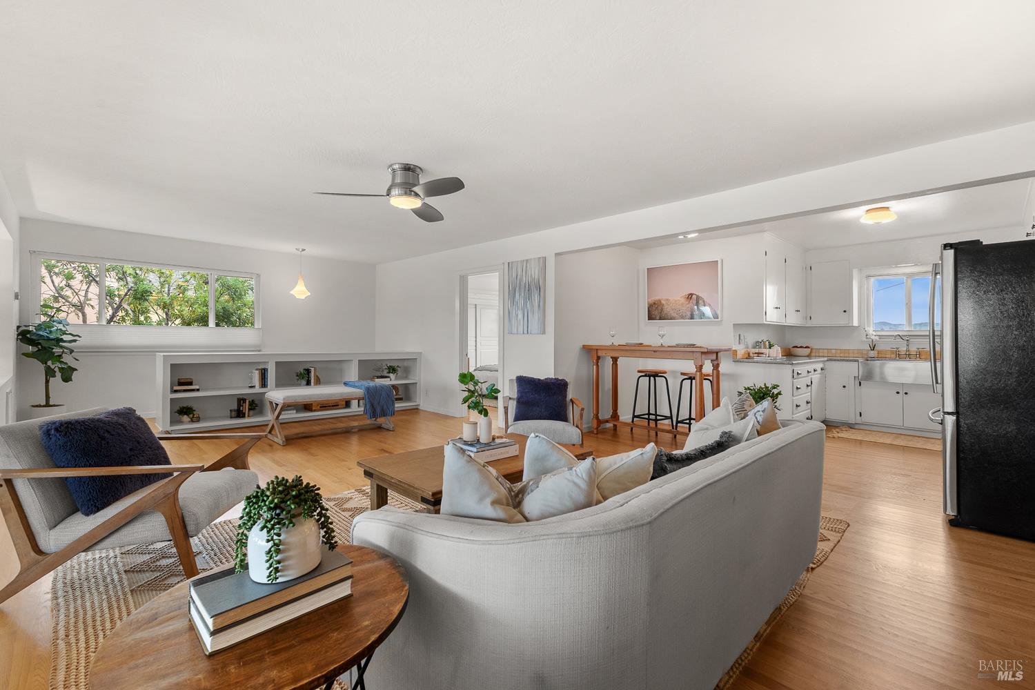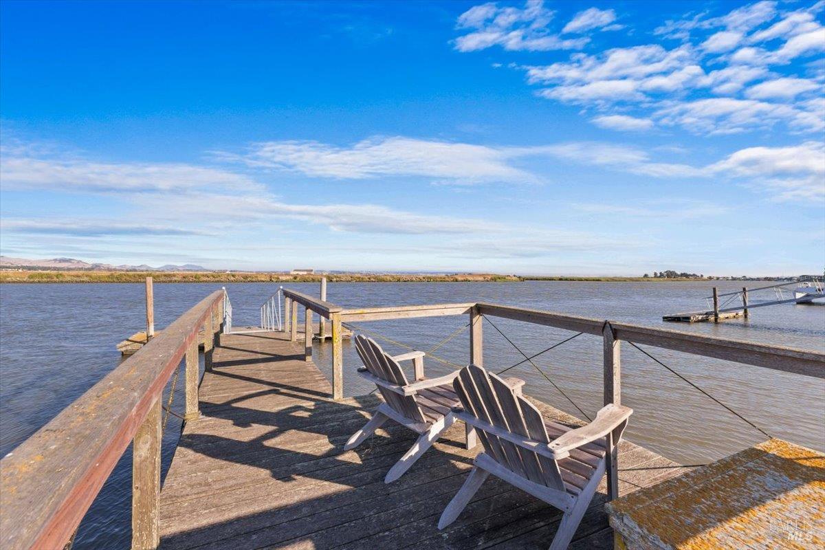 Serenely situated in a unique location along the banks of the Napa River, this bright and airy 3-bedroom, 2-bath home is a rare blend of natural beauty and refined living, perfect for both full-time residence and weekend escape. Approaching the home, you pass vineyards and vast fields with horses and cows. The chef-worthy kitchen, featuring an upscale Italian-imported range, flows seamlessly into an expansive living area where you are treated to panoramic views of the river and surrounding hills. The main-level primary suite provides a peaceful retreat, featuring a separate sitting room or home office, a full bath, and a private balcony overlooking the river delta. Ideal for entertaining, the glass-walled dining room opens to a sprawling rear deck perfect for relaxing, sunbathing, or dining and sipping wine under the stars. The entry level has 2 bedrooms, a full bath, a laundry closet, and a sitting room/office with a large closet. Listen to the calming sounds of birds, aquatic life, the flowing river, and gentle breezes. A private dock set adjacent to natural wetlands allows direct river access, completing the quintessential Napa Valley lifestyle. This home is situated just an hour from the Golden Gate Bridge, yet it feels a world away. Welcome home.