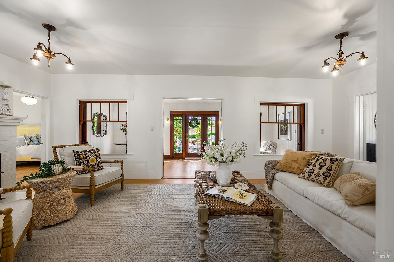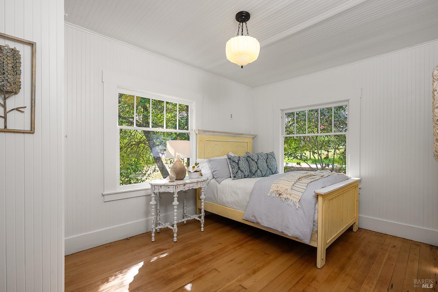 Here is the legacy property you've been waiting for. Set on 1.2 magical acres, this quintessential circa 1916 farmhouse captures the essence of timeless country living, rich with vintage charm and enduring character. Inside, warm fir wood flooring, period milk glass light fixtures, and thoughtfully curated finishes create an inviting and authentic atmosphere. The charming kitchen is beautifully appointed with slab quartz countertops and a classic subway tile backsplash, blending historic appeal with modern convenience. The home offers three ensuite bedrooms, along with a versatile office or flex space to suit a variety of lifestyles. Beyond the main residence, the property continues to impress with detached guest quarters, a rustic barn, a detached two car garage, and a nostalgic water tower, each adding to the story and functionality of this unique offering. Majestic oaks and a fruit orchard frame the grounds, providing a serene and picturesque setting. Ideally located just minutes from the Russian River resort corridor, Forestville Youth Park, acclaimed dining, wineries, and the vibrant seasonal farmers market, this is a rare and exceptional Forestville gem.