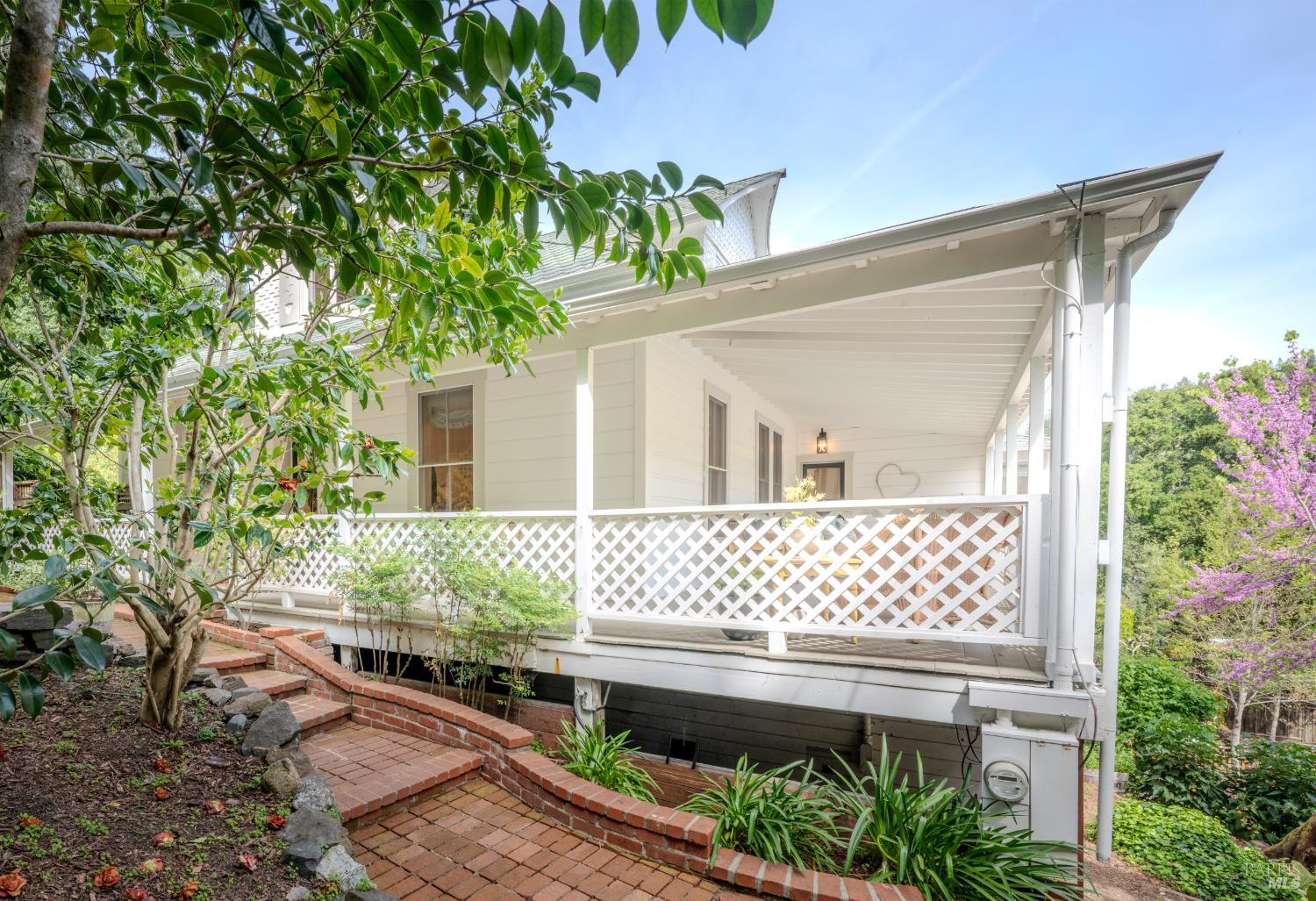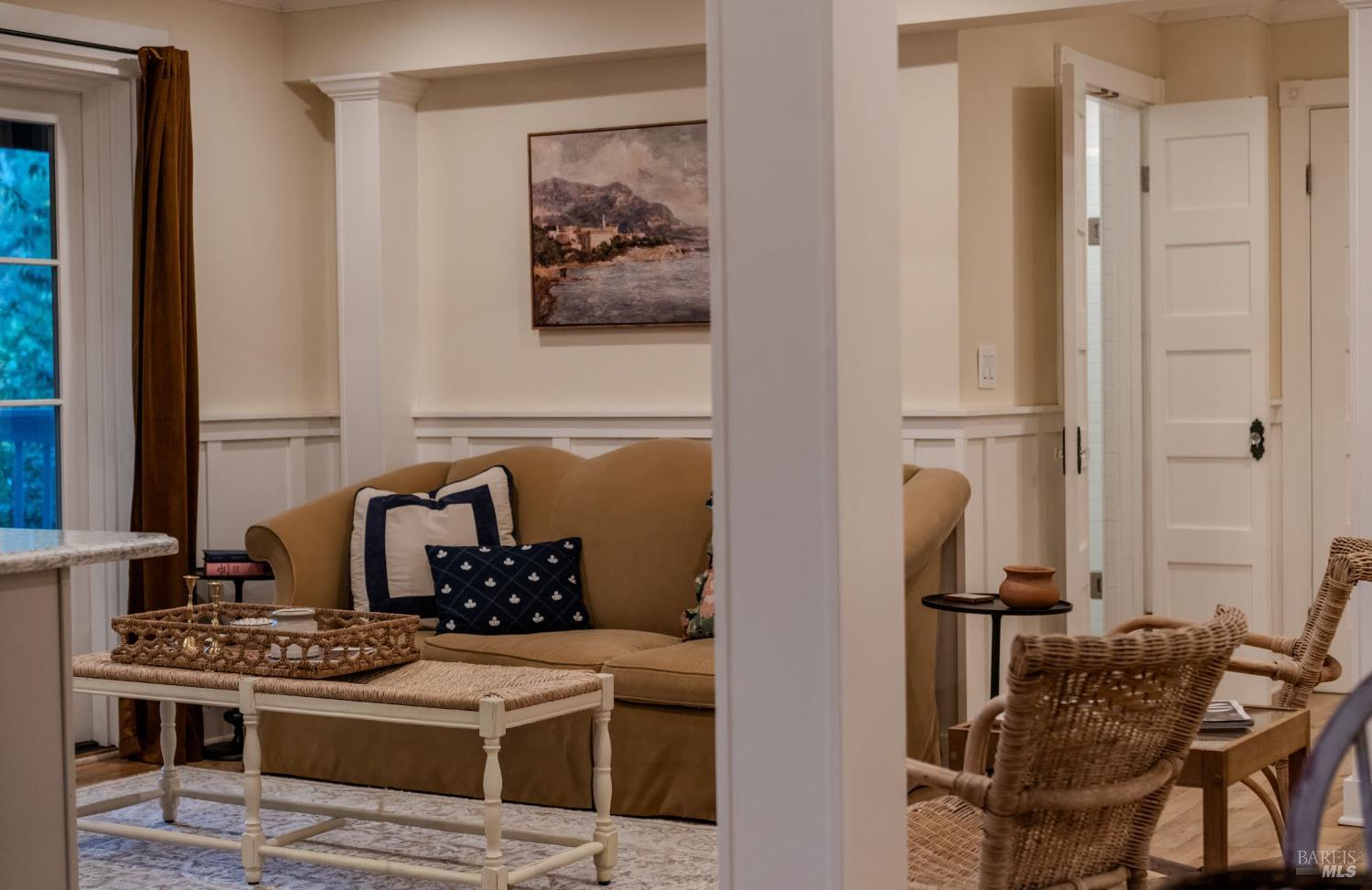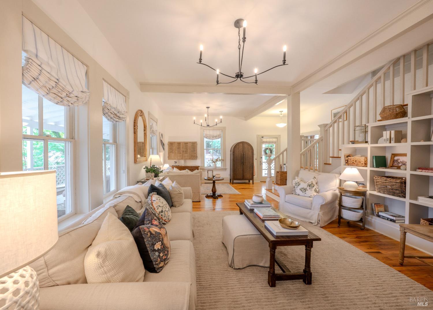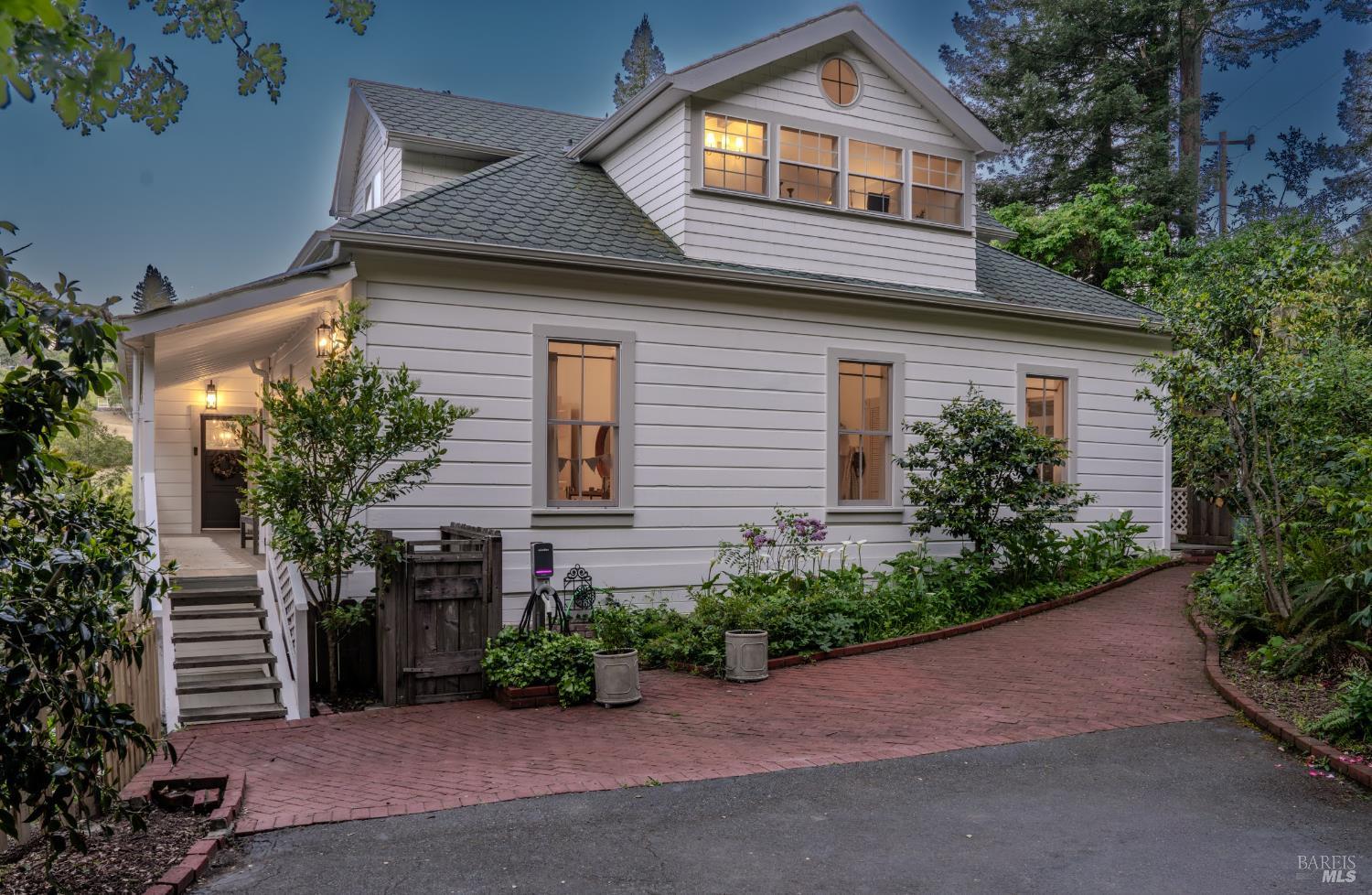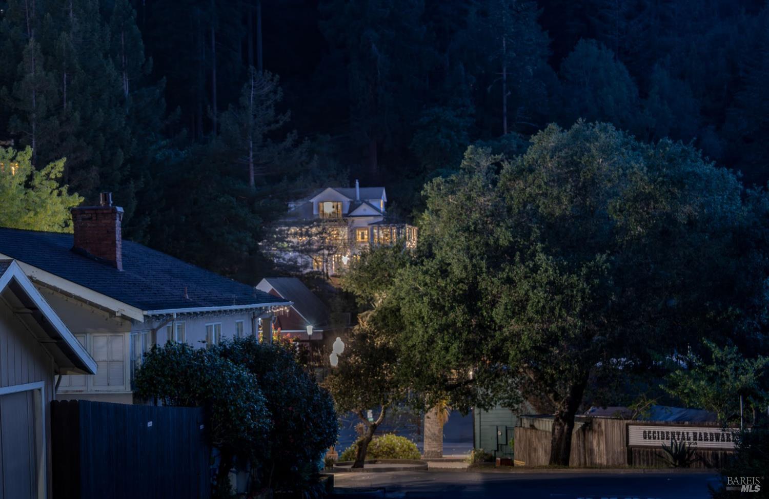 Stately Victorian compound in town on just under an acre in West Sonoma County. The main residence is thoughtfully preserved and enhanced with refined modern updates. The living spaces unfold with ease, centered around a generous, light-filled living room that showcases the timeless architecture and views, creating a truly inviting atmosphere. A classic covered porch embraces the home, seamlessly connecting indoor and outdoor living spaces, inviting opportunities from sunrise to sunset. The thoughtfully designed kitchen is appointed with marble countertops, bar seating, and high-end appliances, and flows naturally into the dining area as an intuitive extension for entertaining. The main level entry includes three bedrooms and a beautifully detailed bath featuring a clawfoot tub and walk-in shower. Upstairs, additional bedrooms capture sweeping views of redwoods and the rolling Sonoma hillside, complemented by a second bath and flexible space well suited for an office or creative use. Additionally, a detached guest cottage offers a private and versatile living opportunity, complete with a refined kitchen, bath, and generous covered deck overlooking a private patio. Above the guest house, a carriage house is framed and ready for future vision, presenting an opportunity for expansion or additional utility. Outdoor living is thoughtfully integrated throughout the property, with a network of pathways, porches, decks, balconies, and patios designed to embrace the surrounding landscape and Sonoma County lifestyle. A private garden gate leads directly into the peaceful town of Occidental, where charming restaurants and local favorites are just a short stroll away, offering the ease of a weekend getaway atmosphere that feels subtly vibrant and deeply rooted in West County charm.