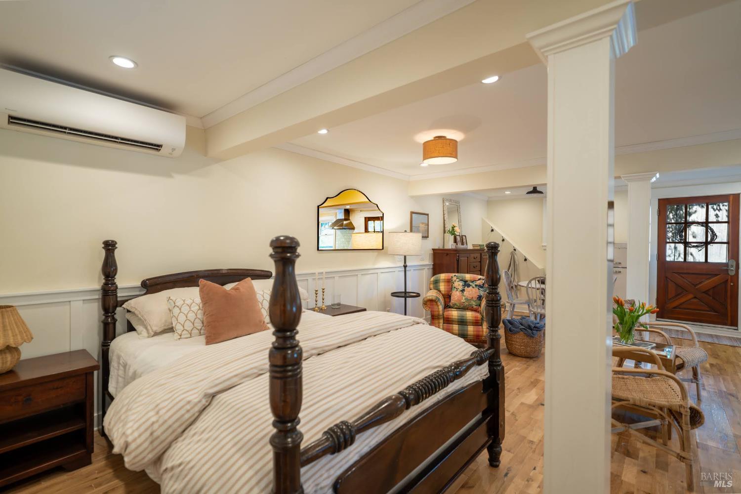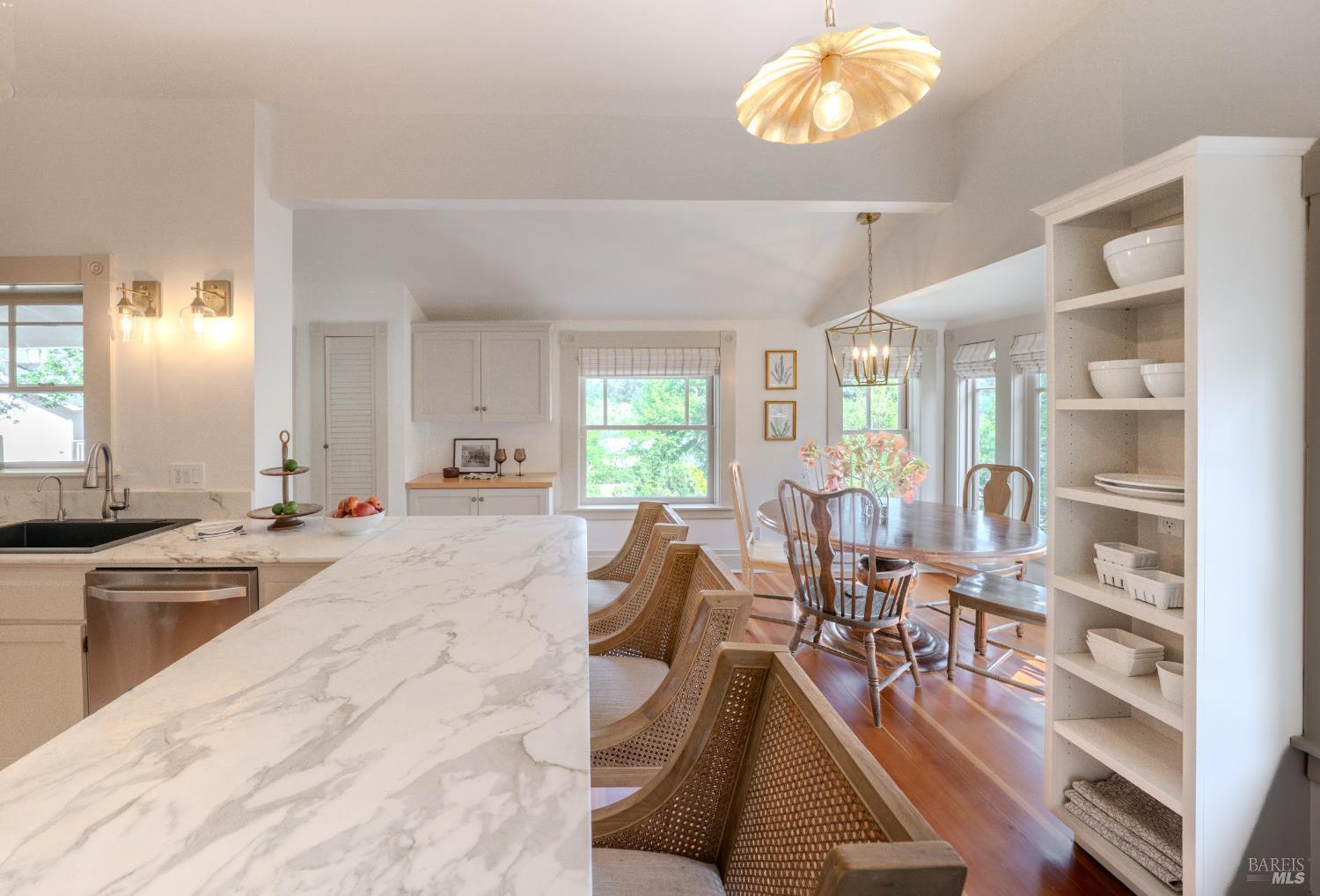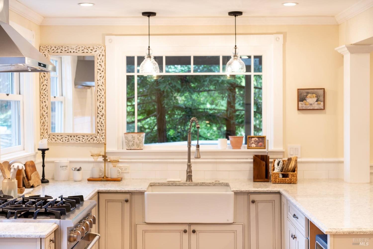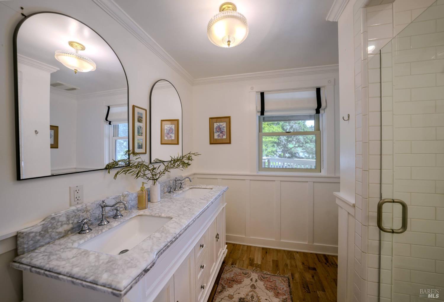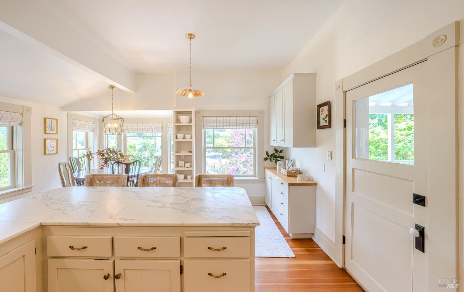 Stately Victorian compound in town on just under an acre in West Sonoma County. The main residence is thoughtfully preserved and enhanced with refined modern updates. The living spaces unfold with ease, centered around a generous, light-filled living room that showcases the timeless architecture and views, creating a truly inviting atmosphere. A classic covered porch embraces the home, seamlessly connecting indoor and outdoor living spaces, inviting opportunities from sunrise to sunset. The thoughtfully designed kitchen is appointed with marble countertops, bar seating, and high-end appliances, and flows naturally into the dining area as an intuitive extension for entertaining. The main level entry includes three bedrooms and a beautifully detailed bath featuring a clawfoot tub and walk-in shower. Upstairs, additional bedrooms capture sweeping views of redwoods and the rolling Sonoma hillside, complemented by a second bath and flexible space well suited for an office or creative use. Additionally, a detached guest cottage offers a private and versatile living opportunity, complete with a refined kitchen, bath, and generous covered deck overlooking a private patio. Above the guest house, a carriage house is framed and ready for future vision, presenting an opportunity for expansion or additional utility. Outdoor living is thoughtfully integrated throughout the property, with a network of pathways, porches, decks, balconies, and patios designed to embrace the surrounding landscape and Sonoma County lifestyle. A private garden gate leads directly into the peaceful town of Occidental, where charming restaurants and local favorites are just a short stroll away, offering the ease of a weekend getaway atmosphere that feels subtly vibrant and deeply rooted in West County charm.