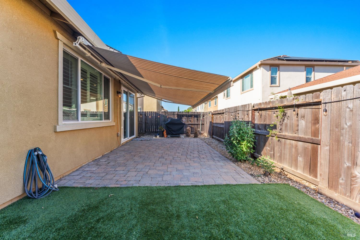Welcome to 355 Marigold Drive, a practically new, single-story 3-bedroom, 2-bath home that is fully turnkey and ready for immediate enjoyment. This residence is designed for comfort and convenience, featuring a flexible floor plan that flows easily from room to room. Natural light floods the interior, creating a warm, airy atmosphere. The eat-in kitchen connects seamlessly to the main living space, making it perfect for hosting family and friends. Retreat to the secluded primary bedroom, which includes a spacious walk-in closet. Enjoy significant savings with a fully paid-off and owned solar system. Additional amenities include beautiful custom white shutters on all windows and convenient storage shelves in the garage. Charge your electric vehicles with the Ford charger in the garage. The low-maintenance backyard is perfect for shaded days in Vacaville, thanks to a retractable Sun setter awning. The location offers convenient access to local shopping, dining, parks, and schools, as well as easy commuter access via I-80 to Sacramento and the Bay Area. Schedule a tour today to see this beautiful home!