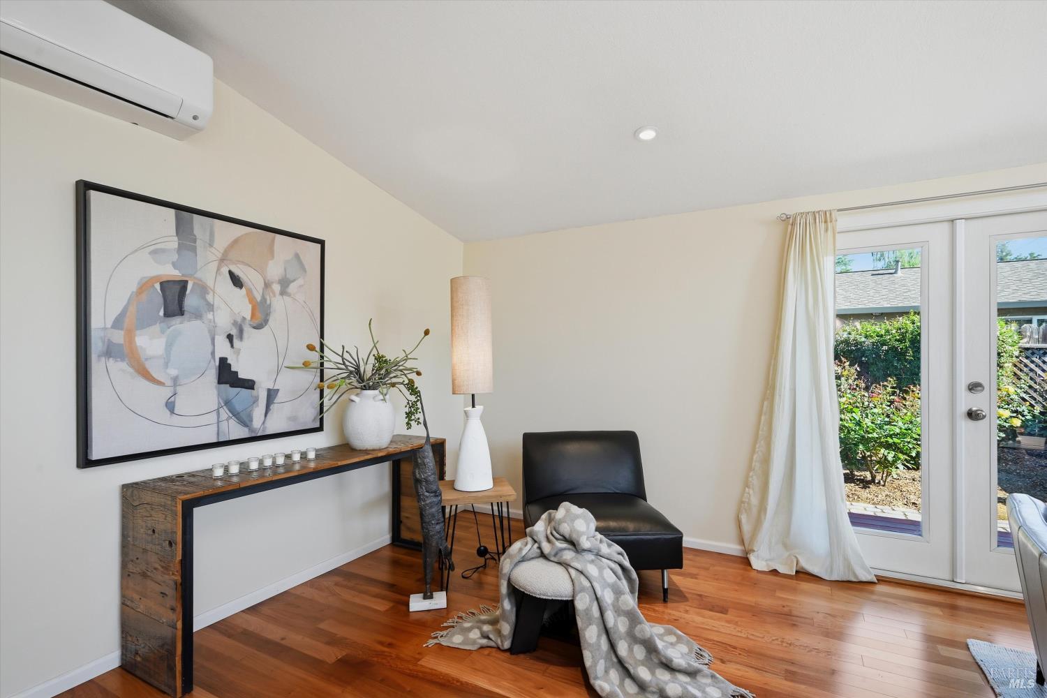 Tucked into a peaceful creekside setting on the far west end of Browns Valley, this thoughtfully updated mid-century home offers a rare blend of character, natural beauty, and everyday comfort on an expansive .39-acre parcel. Inside, rich Brazilian oak floors bring warmth and depth throughout, complemented by vaulted ceilings and an open flow between the living room and the kitchen. Walls of windows bring in soft natural light, while the fireplace adds a sense of warmth and comfort. The kitchen has been carefully upgraded with rich wood cabinetry, granite counters, stainless steel appliances, a wine refrigerator, and a generous bar island with pendant lighting and ample seating, ideal for casual dining or gathering. Both bedrooms feel open and inviting with vaulted ceilings and ceiling fans, offering comfortable, light-filled spaces. Outdoors, the property truly shines. The beautifully maintained grounds unfold to a creekside lawn, a large rose garden, and a covered patio where evenings are best spent unwinding as the sun sets. A detached two-car garage and a separate single-car garage provide flexibility for storage, hobbies, or workspace, along with abundant additional parking. All of this in a setting that feels tucked away, yet remains close to shopping, dining, and the everyday conveniences of Napa Valley. A property that has been genuinely cared for and thoughtfully improved, ready to be enjoyed as it is or taken even further.